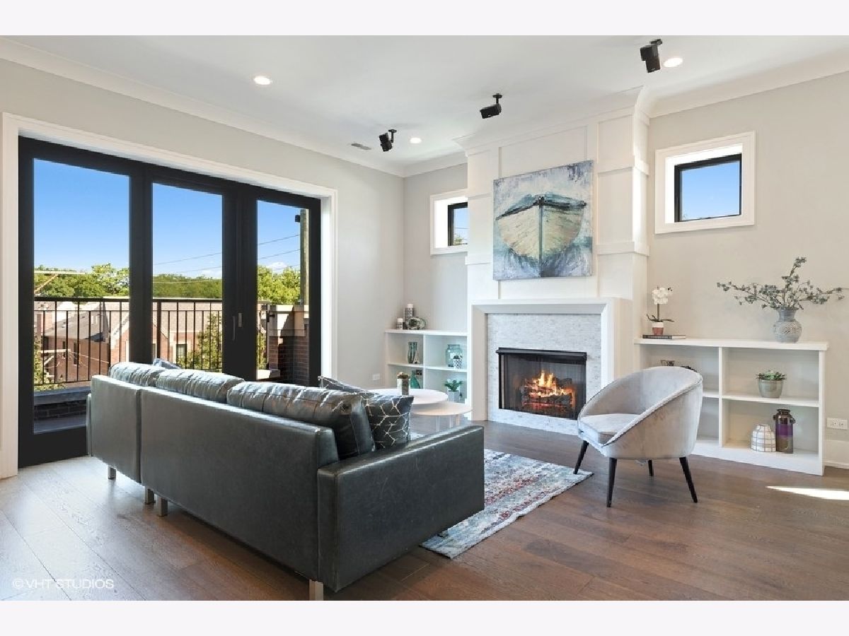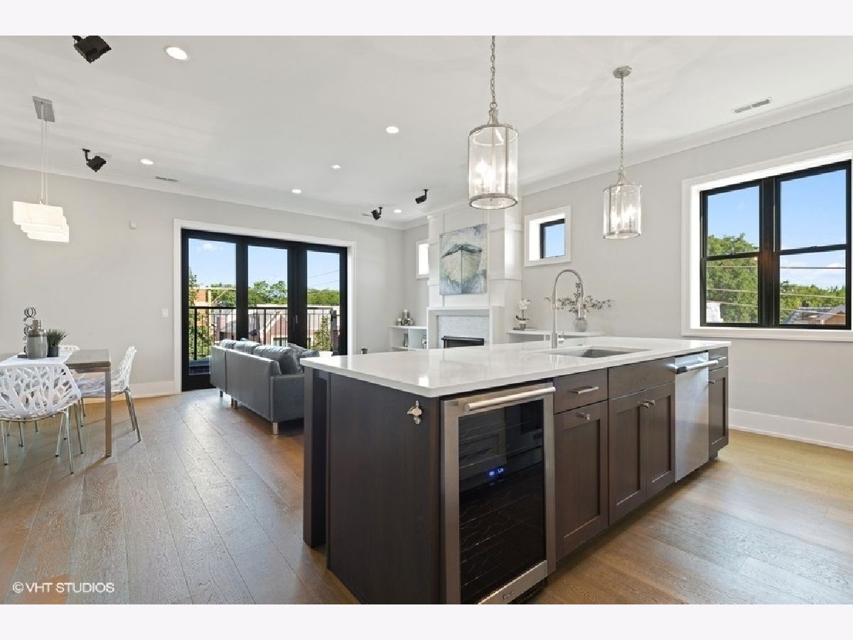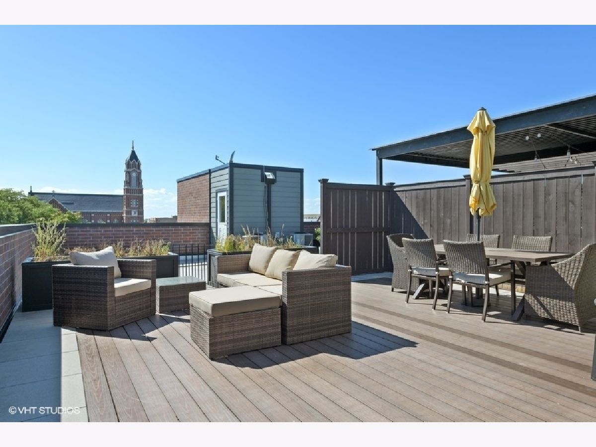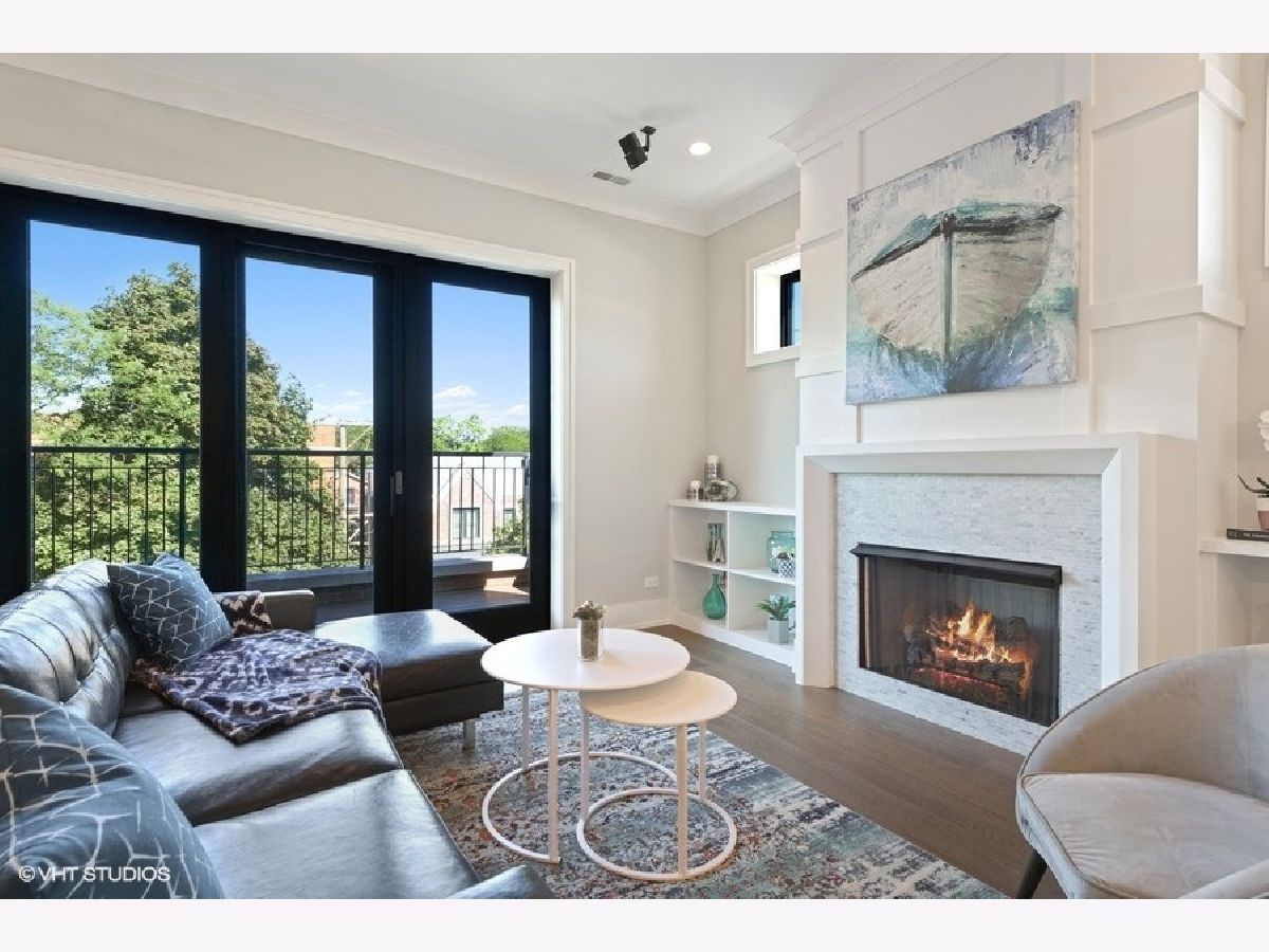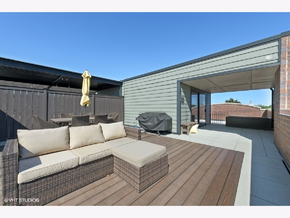 PROPERTY SOLD BEFORE PRINT | Impressive and sun-filled newer construction (2015) 3 bedroom, 2 bath PENTHOUSE with 2 outdoor spaces, including 600 square foot PRIVATE ROOFTOP DECK featuring UNOBSTRUCTED skyline and Wrigley Field views, and garage parking in fantastic North Center neighborhood in Level 1+ Bell School District. Open floor plan features beautiful living/dining room with gas fireplace, built-ins and private balcony open to gorgeous white kitchen with custom cabinetry, Thermador appliances, stunning backsplash, quartz counters and large island with breakfast bar. The spacious and serene master suite has walk-in closet and spa-like en-suite with heated floors, dual vanity, separate water closet and stunning stone shower with steam shower and body sprays. 2 additional generous bedrooms, full bath and laundry/mud room complete the main level. The second level has enclosed den with wine refrigerator and private rooftop deck access; perfect for summer entertaining! One garage parking space included. Whole house water filtration system. Superb location near train and bus routes, easy access to expressway, and all that North Center/Roscoe Village have to offer, including shops, restaurants and parks. Pet friendly!