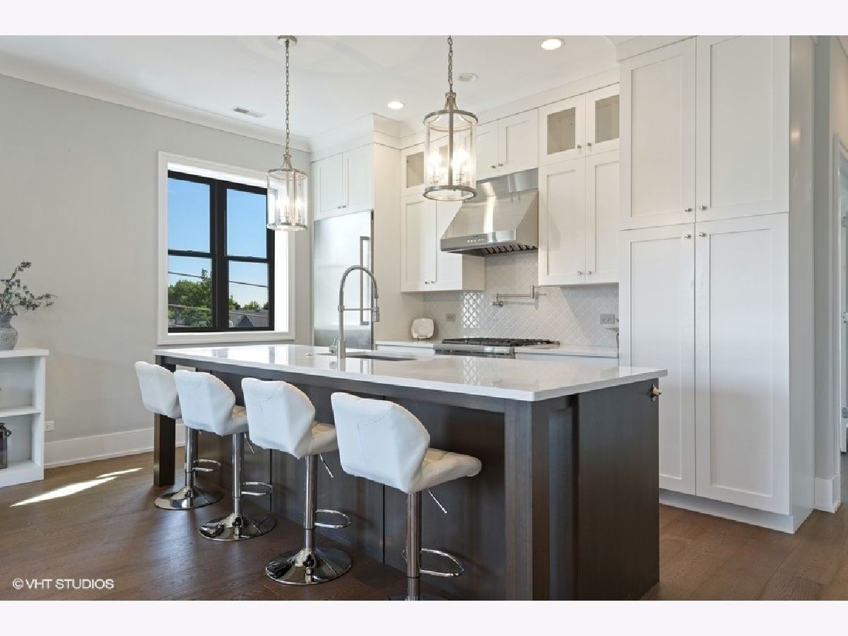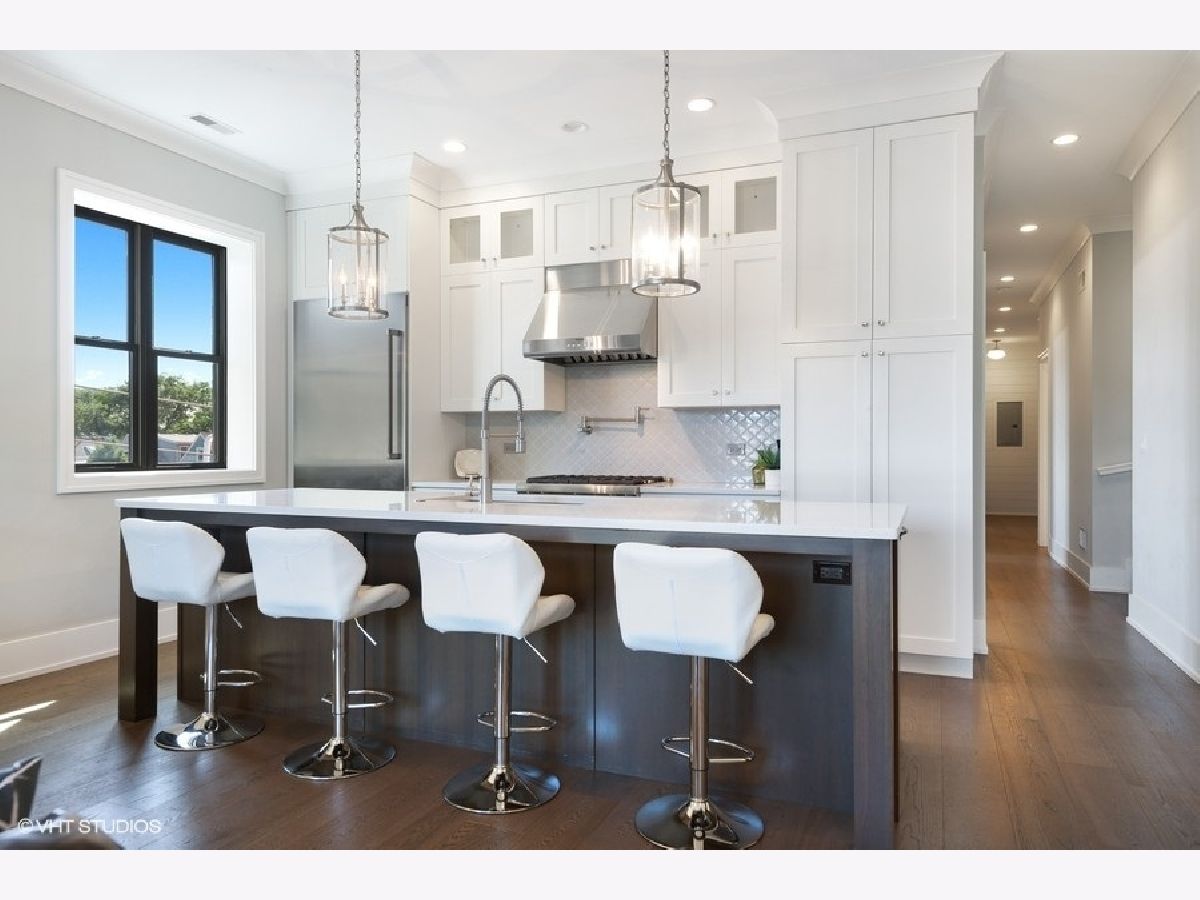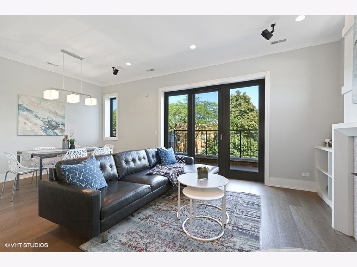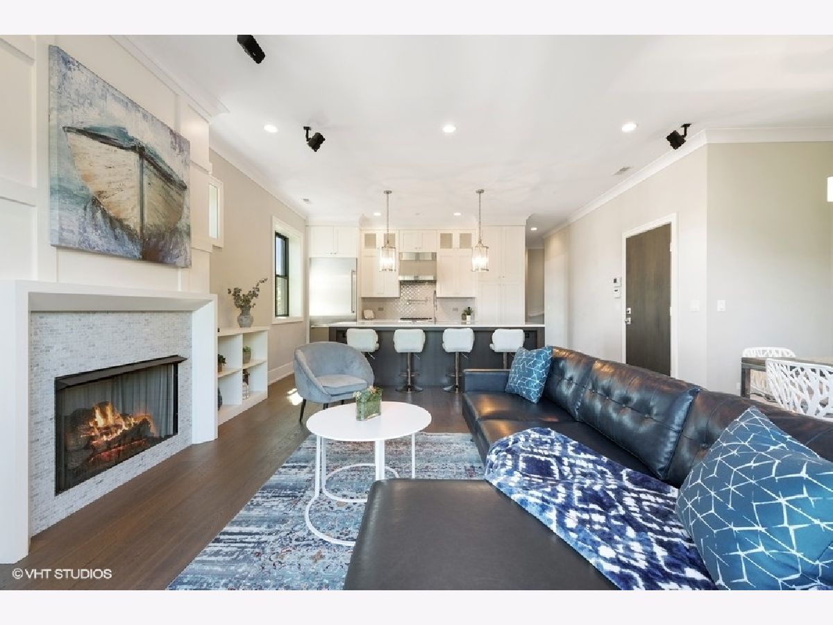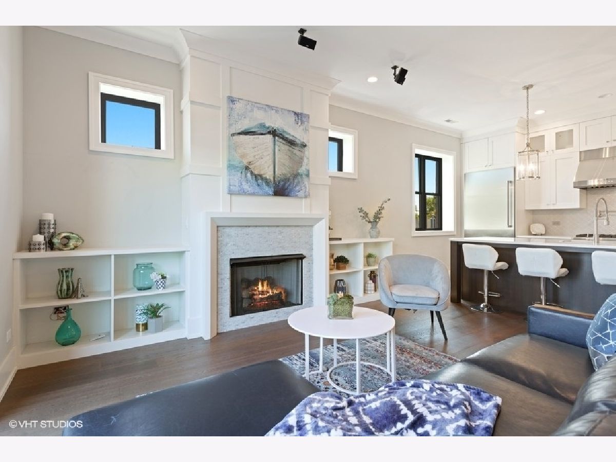 PROPERTY SOLD BEFORE PRINT | Impressive and sun-filled newer construction (2015) 3 bedroom, 2 bath PENTHOUSE with 2 outdoor spaces, including 600 square foot PRIVATE ROOFTOP DECK featuring UNOBSTRUCTED skyline and Wrigley Field views, and garage parking in fantastic North Center neighborhood in Level 1+ Bell School District. Open floor plan features beautiful living/dining room with gas fireplace, built-ins and private balcony open to gorgeous white kitchen with custom cabinetry, Thermador appliances, stunning backsplash, quartz counters and large island with breakfast bar. The spacious and serene master suite has walk-in closet and spa-like en-suite with heated floors, dual vanity, separate water closet and stunning stone shower with steam shower and body sprays. 2 additional generous bedrooms, full bath and laundry/mud room complete the main level. The second level has enclosed den with wine refrigerator and private rooftop deck access; perfect for summer entertaining! One garage parking space included. Whole house water filtration system. Superb location near train and bus routes, easy access to expressway, and all that North Center/Roscoe Village have to offer, including shops, restaurants and parks. Pet friendly!