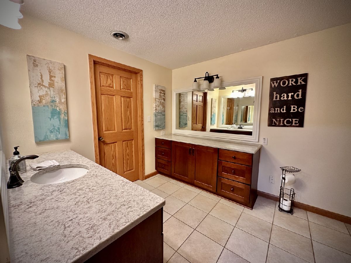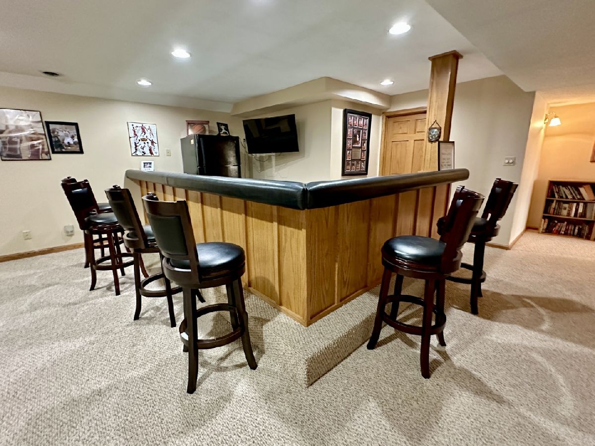 Stunning expansive ranch with huge designer kitchen, main-floor laundry, vaulted ceiling living room, fireplace and extra-large master bedroom with large walk-in closet. Huge master bath with soaker tub, custom shower, private water closet, custom double vanity and with exit to deck. Walk-out basement includes large family room, huge recreation room with bar, two bedrooms, bathroom and utility room. In-ground pool built in 2013 with electric pool cover; roof 2013; TREX deck 2013; new garage doors 2022. Home enjoys lake access.