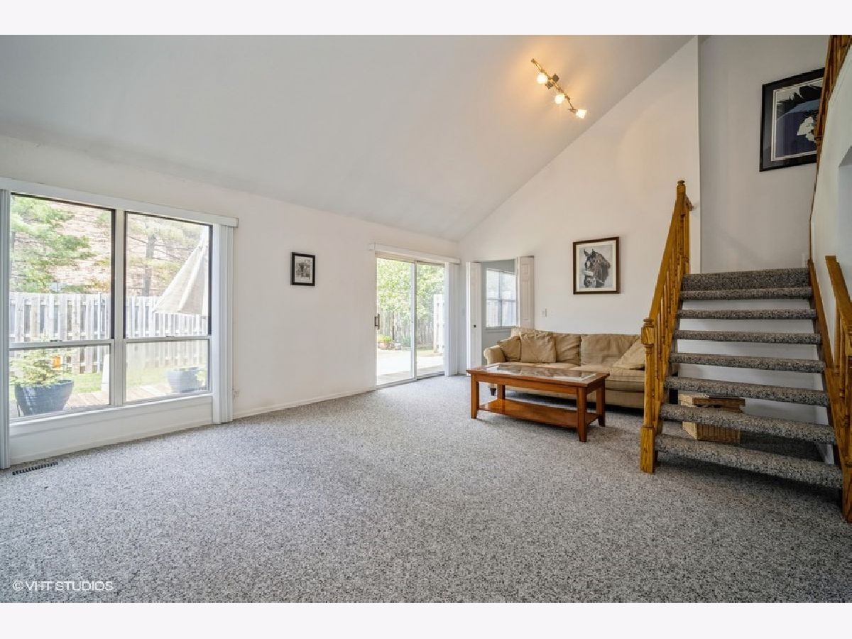 Nestled in the highly sought after Newport Square neighborhood sits this 2 bedroom, 1.5 bath townhome with vaulted ceilings and a first floor den/office that could easily become your 3rd bedroom/guest room! Just off the family room is a lovely deck area with plenty of space to relax along with a large grass area for pets. The upper level hosts the primary and 2nd bedroom sharing a "jack n jill" bath with double sinks, tub and shower. Close to shopping, schools, forest preserve and highway! Great location and priced to allow for updates and to sell quickly. Great starter/downsizing home .