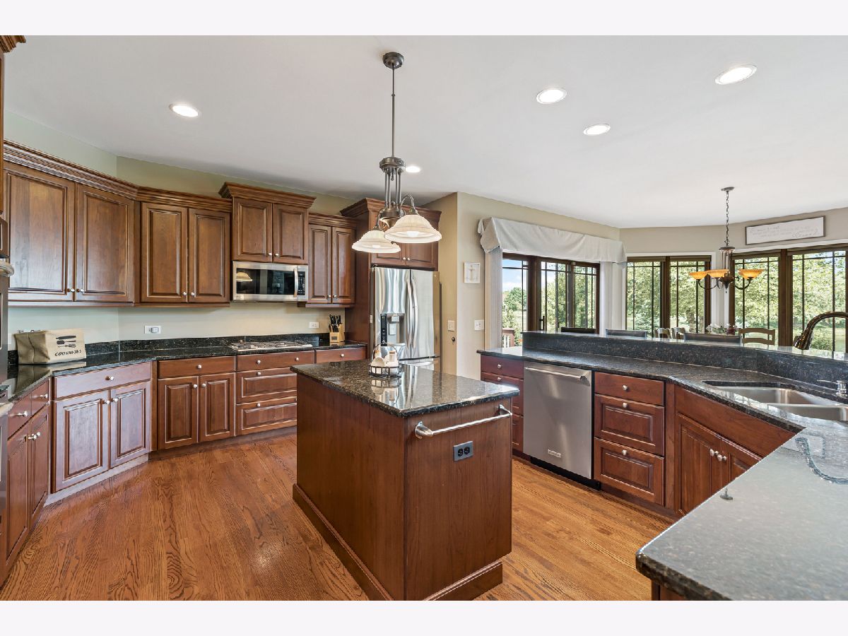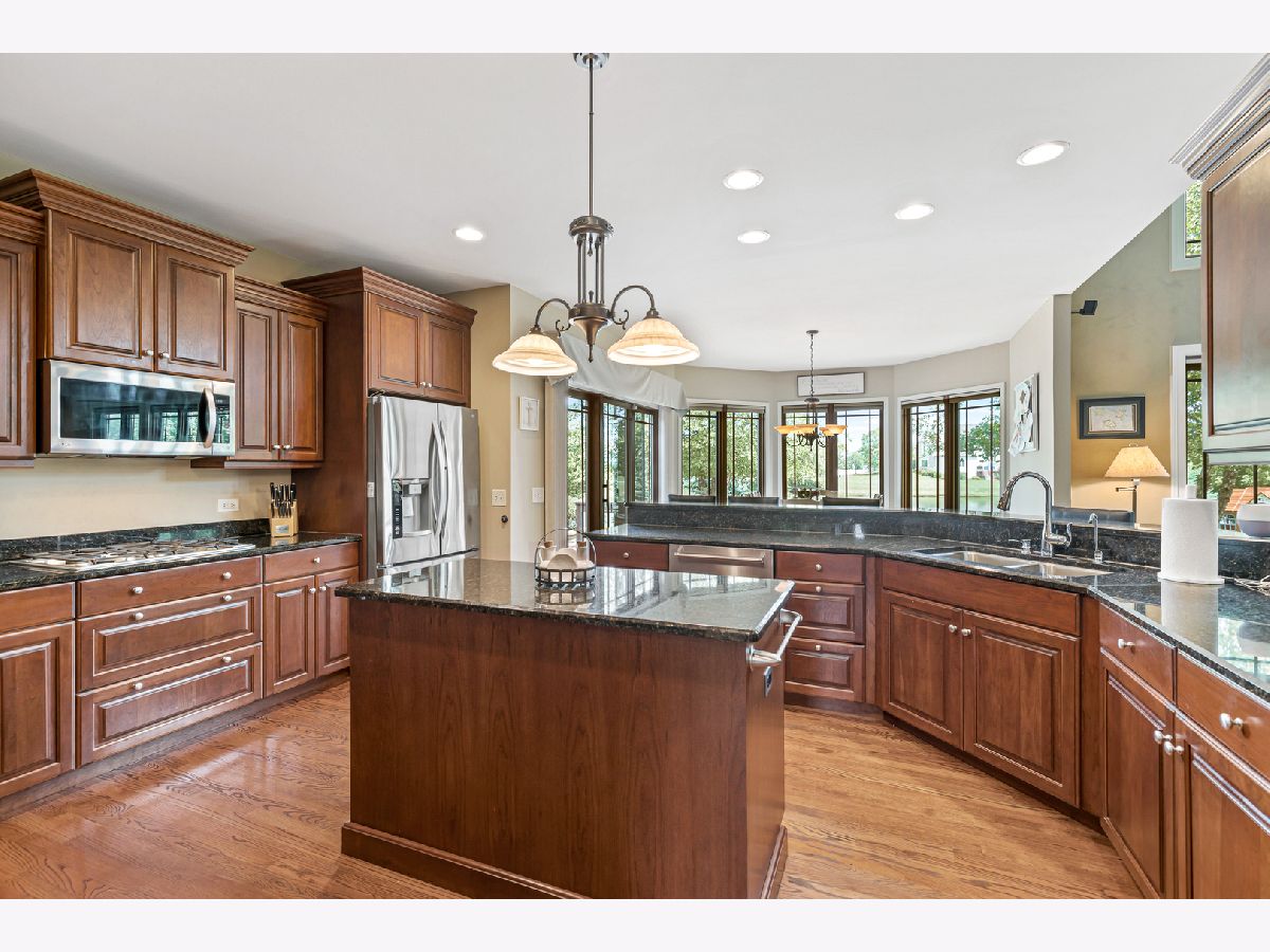 A remarkably well maintained John Henry custom home with stunning pond views for your most discerning clients!. Granting you privacy and yet convenient to walking trails along the fox river and St. Charles North high school and easy access to downtown St. Charles. This home has elaborate custom millwork and stunning wood floors with grand picturesque views out the entire back of the home. Gourmet kitchen with stainless appliances and granite counter tops and panoramic views of the pond. Featuring a huge family room with floor to ceiling stone fireplace, owners suite with a lovely sitting area to enjoy the peaceful tranquility of the fountain with large master bath and walk in closet. Bedrooms 2-4 are generous sized one with an en suite and the others with a Jack & jill bath. Finished basement with full bar and 5th bedroom, with a rec room. Professional landscaping, sprinkler system, professional exterior deck and paved patio. With added dramatic exterior lighting to highlight this home's elegance 24 hours a day. This home is in pristine condition inside and out. All you need to do is move in.