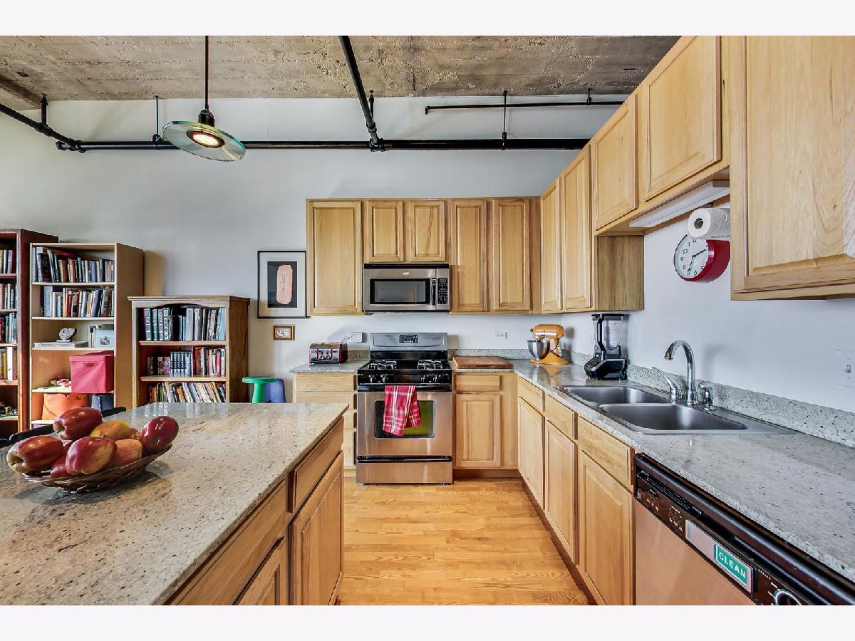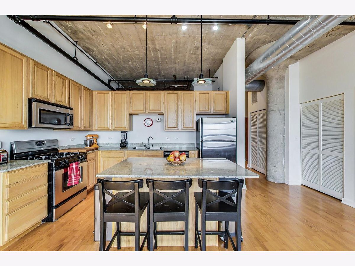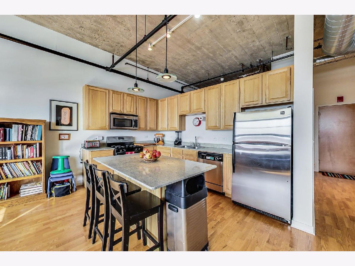 Welcome home to the historic Shoemaker Lofts located in Avondale! This two bedroom, one bath has 11-foot ceilings, and is west facing with 9-foot windows. Beautiful sunsets every night in your home. Exposed brick through out the home. Open concept living with plenty of room for a home office. Kitchen offers an island with granite countertops, stainless steel appliances and a vast amount of cabinets. In unit washer and dryer replaced in 2020. Unit features fully enclosed primary bedroom with large walk-in closet and an oversized bathroom with dual vanities and a soaking tub. The building has a gym and brand new rooftop deck. Deeded garage parking additional $ 20,000. 2 pet minimum. Close to 94 and the Belmont blue line.