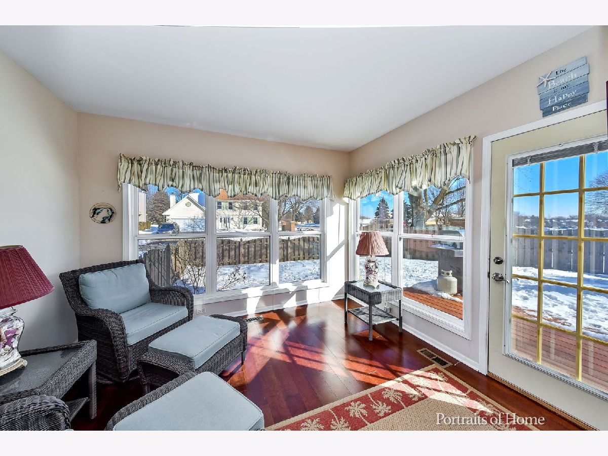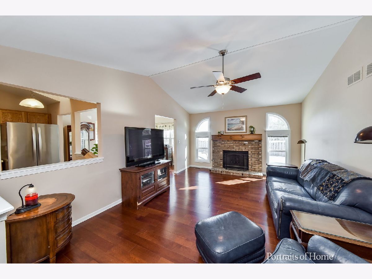Light and bright! Fantastic Oakhurst ranch with soaring vaulted ceilings, white trim and doors and new gleaming hardwood floors! Enjoy the huge living room with brick fireplace overlooking the new deck and fenced in back yard. The kitchen boasts vaulted ceiling, skylight, newer stainless appliances, pantry and plenty of counter space. The kitchen wall has been opened up to the living room for even greater light throughout the home. You will love spending time in the cozy sunroom, it is filled with natural light! The wonderful master suite is vaulted, neutrally painted and has new carpet and a great walk in closet. The master bath has just been updated with luxury vinyl flooring, new lighting, new faucets and refinished vanity top and shower basin. The beautiful hardwood flooring extends into the 2 guest bedrooms. The guest bath has been updated with new luxury vinyl flooring and a new vanity top. The huge full basement is ready for your finishing ideas! So Many Updates!!! 2021- Freshly painted kitchen, family room, entry, hall. Updated bathrooms. 2020- New carpet in master bedroom, new deck, new hardwood in guest bedrooms, freshly painted front and garage doors. 2019 - New roof, new landscape. 2018 - All new stainless kitchen appliances, utility tub, ceiling fans, sump pump, new front brick walkway and front step, New water purification system. 2016 - removed part of kitchen wall into family room, New engineered hardwood floors in hall, family room, dining room, sunroom. 2010- New windows. 2007- New siding. You will love the location of this home, walk to Steck Elementary, The Oakhurst Forest Preserve, and Waubonsie Lake.