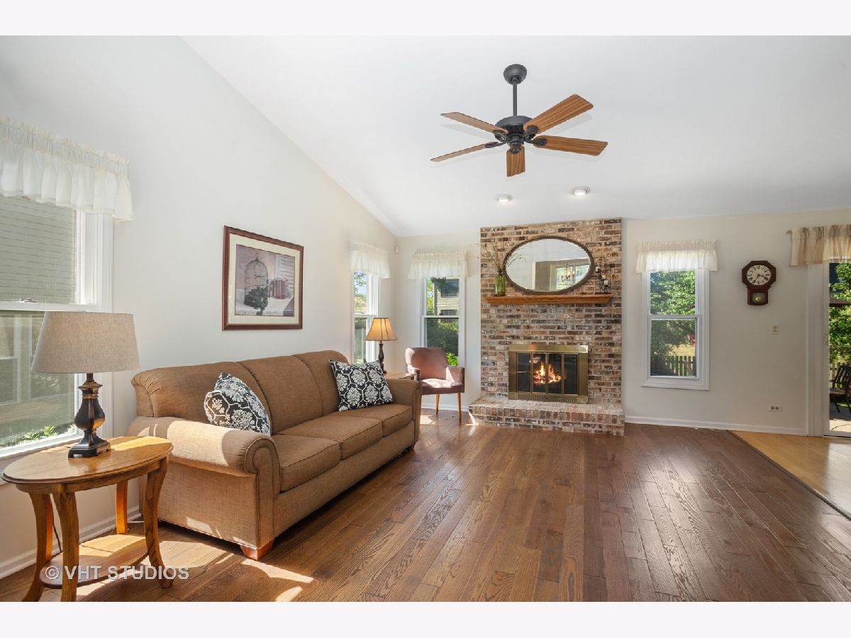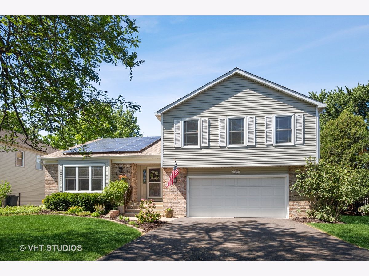 Prepare yourself to be WOWed! Stunning 4 bedroom! Freshly painted throughout, hardwood floors, vaulted ceilings and custom lighting! Vaulted living room has tons of natural lighting. Separate dining room with vaulted celling, hardwood and custom chandelier. Up-to-date kitchen features white cabinets, NEW quartz countertops with tile backsplash, NEW SS appliances and spacious eating area with sliding door to fabulous patio/outdoor space. Family room, adjacent to the kitchen, offers gorgeous brick fireplace. Lower level sitting room features overhead fan, recessed lighting and beautiful brick fireplace with raised hearth, flanked by windows PLUS additional wall of windows! Large powder room and laundry room with sink completed the main living area. Upstairs is the Master which has hardwood floor and private deluxe bath. 3 additional bedrooms are upstairs and feature large closets, neutral paint and access to hall bath. You will love the outdoor space with large patio and brick accent walls with professional landscaping. So many other amenities including security system, smart lights, SUNRUN solar panels (summer electrical bill is just $16/mo!), plus-sized 2-car garage and unfinished basement. Don't miss this one!