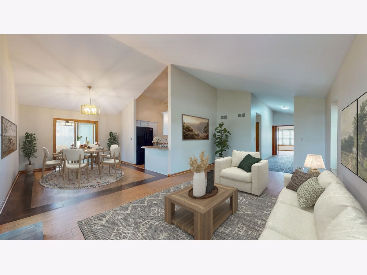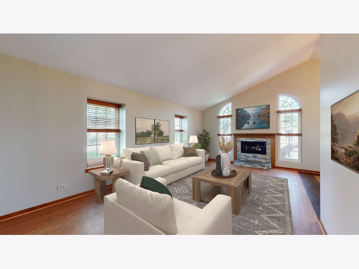 Welcome home! A rarely available ranch townhome with a full finished basement awaits! This end-unit with a private entrance is located on the 13th hole of the golf course and is move-in ready. Vaulted ceilings and spacious rooms are light and bright. The living room has a fireplace and is open to the dining room and kitchen. A sliding door provides access to the sunroom and big patio - great for BBQ's, entertaining or just relaxing! The private master bedroom has a large walk-in closet and private bath. The second bedroom is great for family, guests, or a home office with an adjacent full bath. Convenient main floor laundry, plenty of closets, access to the two-car garage and the basement. Downstairs the finished basement includes a family room, exercise area, a bedroom, full bath and storage. New carpet, paint, light fixtures in 2025. Close to biking, golf, Metra, parks, schools, shopping, trails & more!