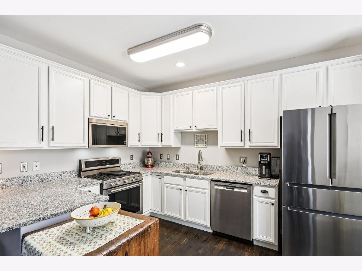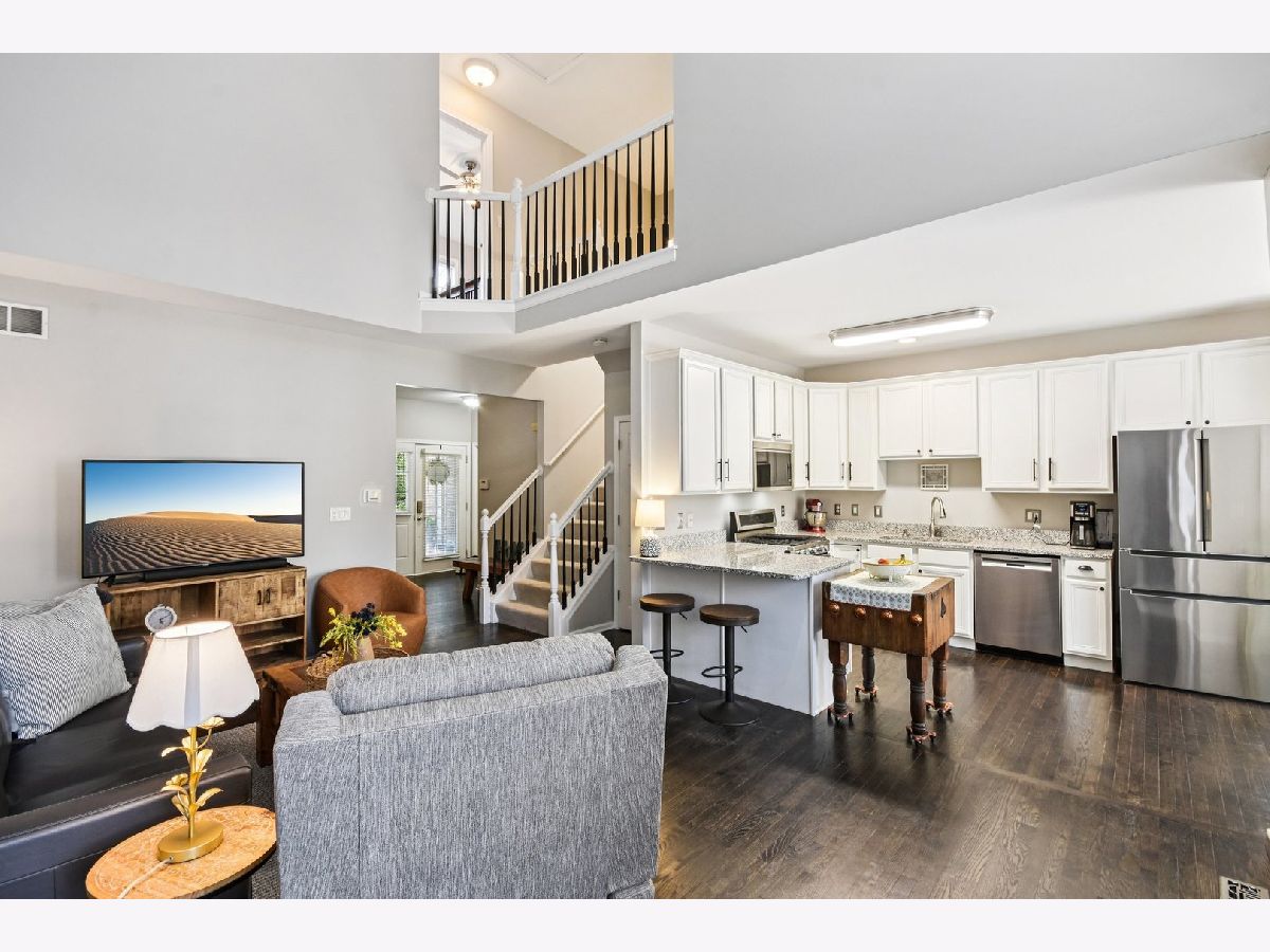 Step into easy living with this beautifully updated Mill Creek Townhome, offering a perfect blend of style, comfort, and convenience. Nestled in a sought-after community, this 2-bedroom, 2.5-bath home is filled with natural light and modern finishes throughout. The open-concept layout welcomes you with hardwood flooring on the main level and a spacious family room featuring vaulted ceilings and a striking cast concrete fireplace. The kitchen is both functional and stylish, offering 42" white cabinetry, granite countertops, a breakfast bar, and newer stainless steel appliances. Upstairs, the serene primary suite features an updated en suite bath and a custom walk-in closet with built-ins for easy organization. A generously sized second bedroom also includes its own private bath-perfect for guests or family. The partially finished basement adds versatile living space, ideal for a rec room, office, workout area, and includes additional storage. Enjoy warm days on the covered front porch or entertain on the stamped concrete patio, complete with a retractable awning over the sliding door for shade and comfort. Other highlights include main-level laundry, an attached 2-car garage, and major system updates: newer appliances, roof, furnace, A/C, and water heater. Located near top-rated schools, shopping, La Fox train station, Delnor Hospital, and Mill Creek Golf Course, this low-maintenance home is move-in ready and perfectly situated for everyday enjoyment.