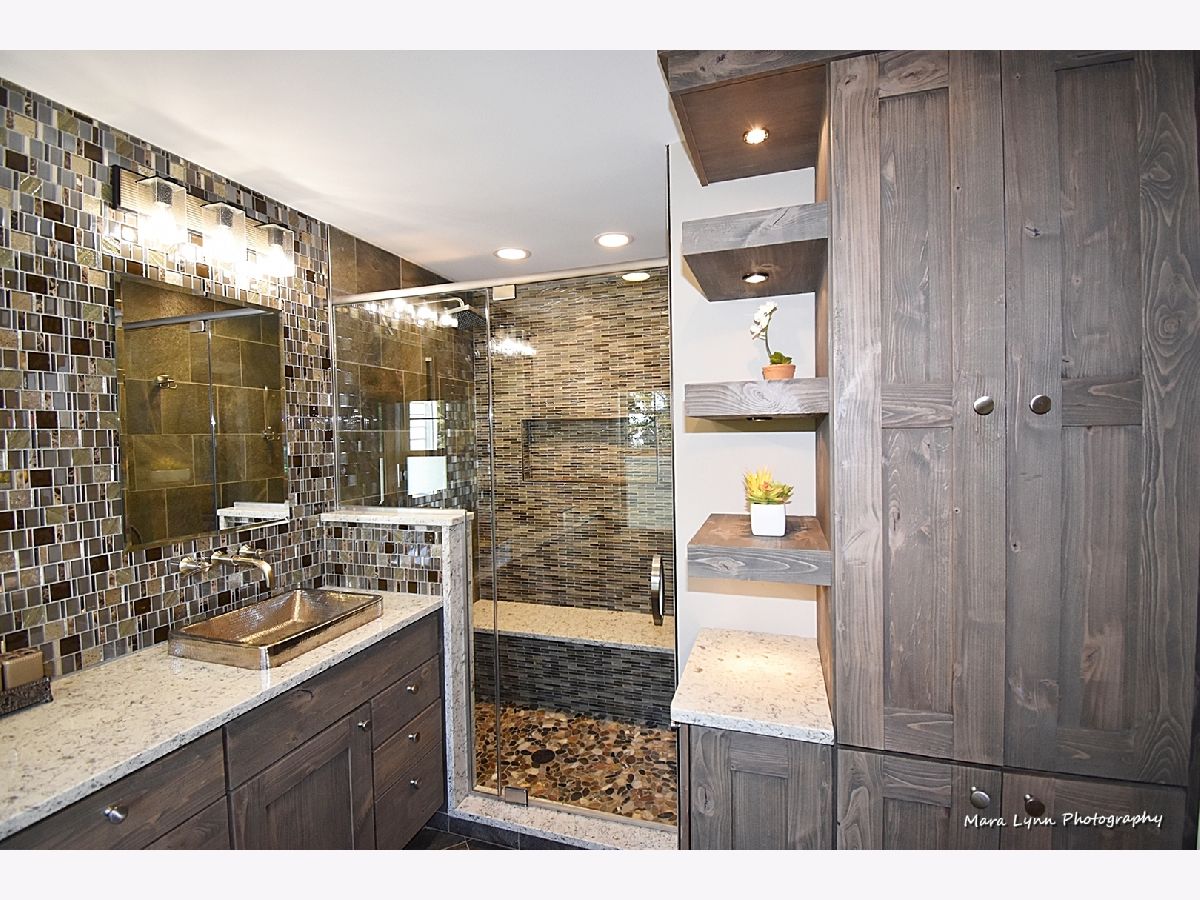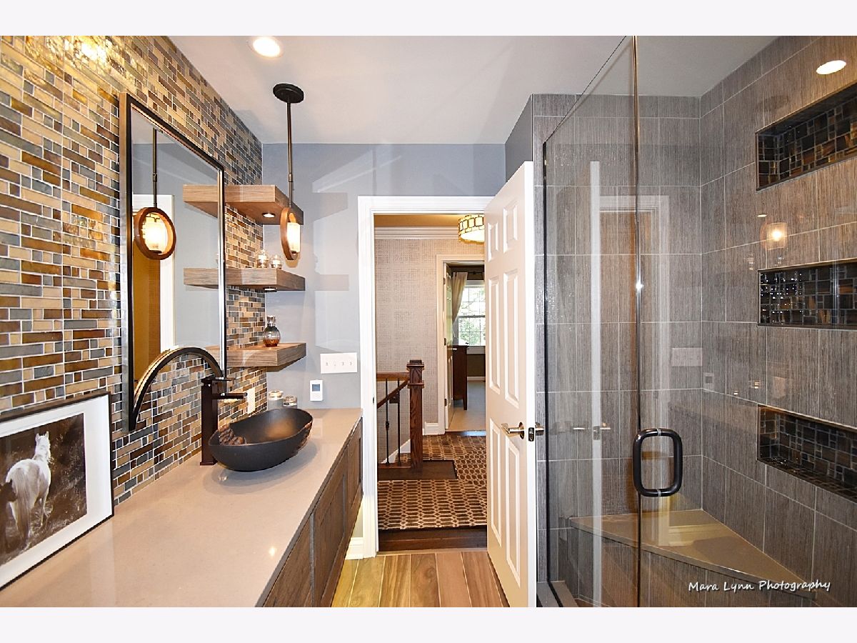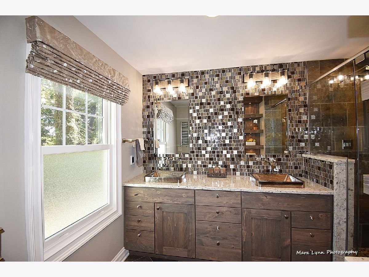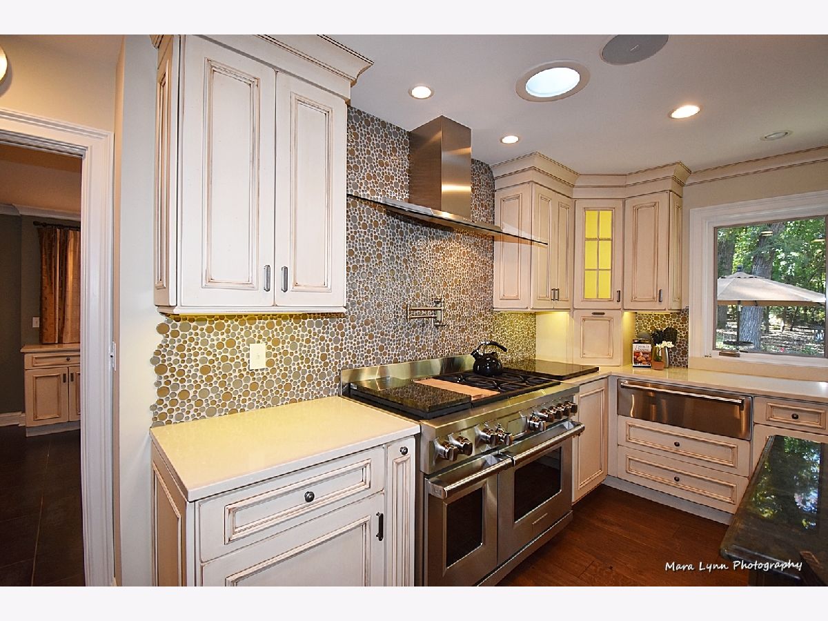 This home is nothing short of magnificent at every turn and has been thoughtfully updated with the finest of finishes throughout! Blue stone walkway leads to the inviting front porch! The beautiful entry with DuChateau hardwoods leads into the open floor plan that is perfect for entertaining or everyday living! This one of a kind Chef's kitchen offers top of the line appliances (including a warming drawer & pot filler), custom glazed cabinetry, Cesarstone countertops, big center island/breakfast bar with granite and glass top and an extraordinary custom backsplash! Large dining room with twin light fixtures, recessed lighting, built-in display shelf and it opens right up to the kitchen of your dreams! Spacious family room with beamed ceiling, masonry fireplace framed by built-ins, recessed TV niche and triple atrium door leading out to expansive Trex deck, gazebo and the most beautiful private yard - it is gorgeous! Private 2nd floor office with separate staircase has dormered ceiling. Master bedroom suite with big walk-in closet and state of the art luxury bath through custom sliding door with radiant heat floor, dual vanities with gorgeous glass tile wall above, floating display shelves and a big walk-in shower with bench and storage nook! Three big secondary bedrooms all with generous closet space. Renovated full hall bath with radiant heat floor that has custom inlay design, floating vanity with down lighting, twin vessel sinks with glass tiled wall above and an oversized shower with bench and triple glass tiled niches. Exceptional finished basement with crown molding, recessed lighting, built-in media center, wet bar with beverage cooler, temperature controlled wine cellar, bedroom five and additional full bath! The yard is simply stunning with river stone walking path, multi-level paver brick patio with retaining walls, spa, built-in grill, bar & fire pit and large 2-level Trex deck that leads to a gazebo...you will have to see to believe!!