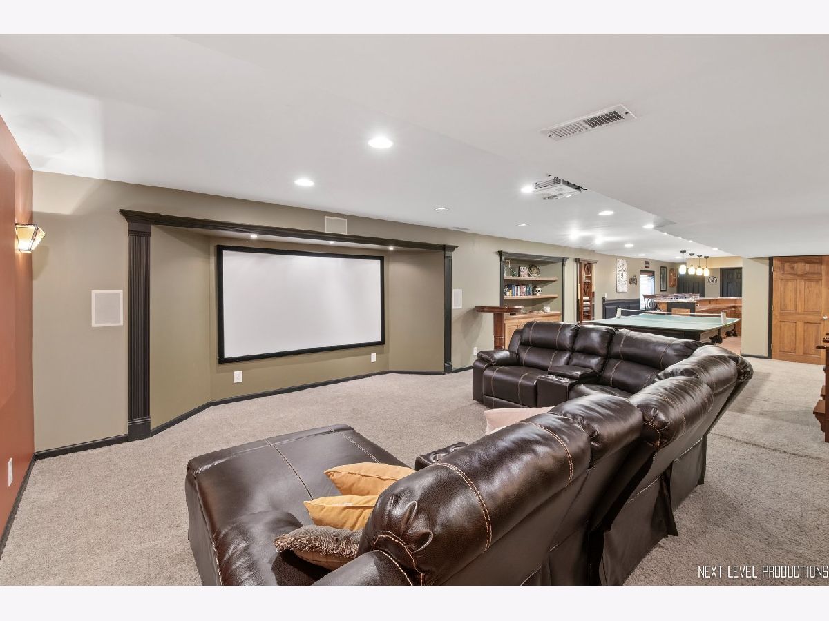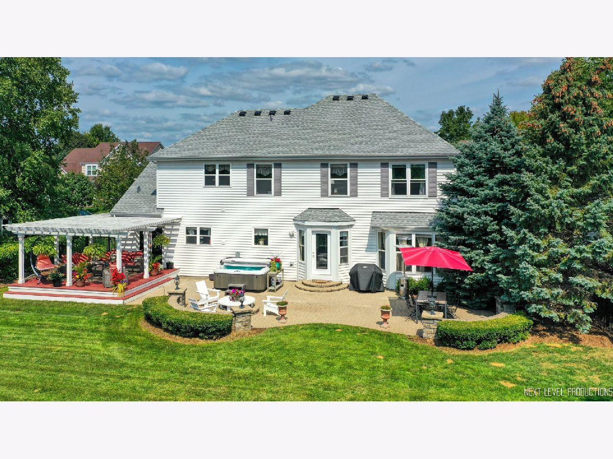 This stunning Mill Creek home located on a quiet cul de sac with a private fenced back yard backs to the 7th tee. A large paver patio with fire pit, 6-8 person hot tub and a deck with pergola and mature landscaping make this your private back yard oasis. The beautiful front stone and cedar facade, brick walks and new front yard landscaping give this home extraordinary curb appeal! The first floor has all natural high end hardwood flooring, upgraded trim, crown molding and wainscoting throughout. There are two fireplaces, electric in the formal sitting room and gas in the family room. The kitchen is a gourmet chef's dream with double stack convection ovens, cherry cabinets, granite counters and all high end SS appliances. New dishwasher (2020), new microwave (2021), new refrigerator (2020), a built in trash compactor, a wine cooler and a large eat-in area that opens to your family room and patio. The private office off the kitchen with built-in book shelves and desk has sliding door access to the deck and pergola. Upstairs there are 4 bedrooms with upgraded trim and wainscoting, hall bath with double sink, new carpet in the hallway and master bedroom. Large master bath with two vanities and a walk-in closet. The fully finished basement has a 5th bedroom and full bath. Entertain at your 17 x11 ft full service bar that opens to your rec room with pool table, darts and ping pong. Then enter the 110 inch theater room with built in surround sound and lighting. There is still plenty of room for storage. New furnace with dehumidifier with Ecobee smart thermostat (2021), new air conditioner (2021) vents cleaned (2021), double sump pump with battery backup (2017). Separate laundry room off kitchen with newer washer and dryer, full sink and storage. The three car garage has a gas heater, extra full size refrigerator, and extra cabinets. New roof (2018), new siding (2018) new back yard fence (2021), full yard irrigation system, electric dog fence in both front and back yards. Fiber optic internet to the house (1G up/down). This home is freshly painted! You must see this remarkable home with all of it's upgrades!