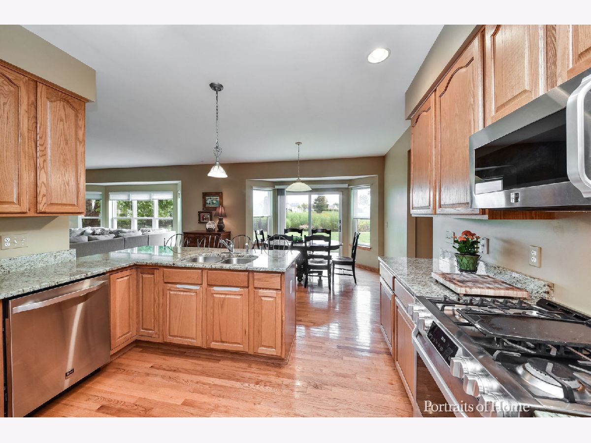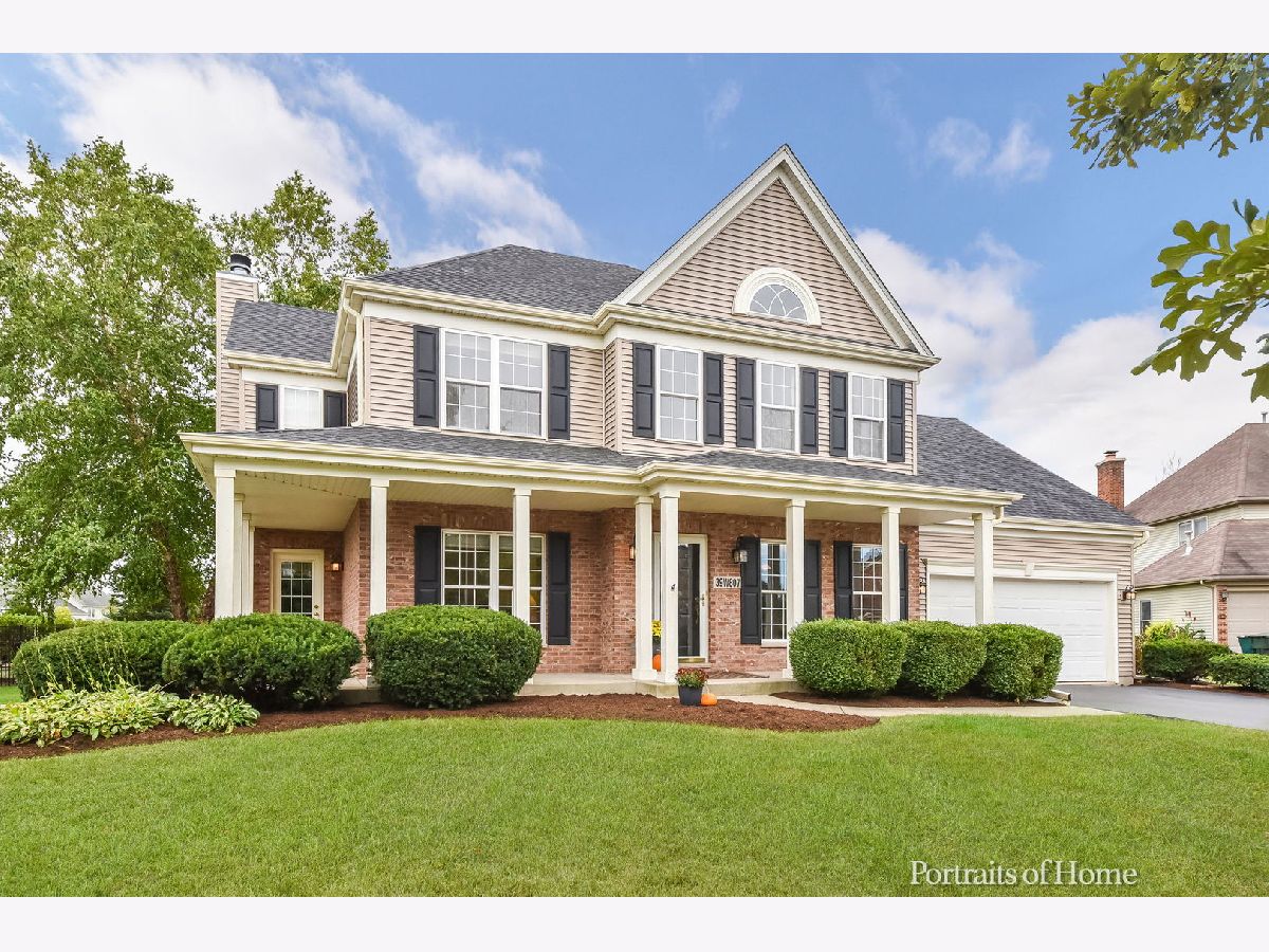 This wonderful four bedroom Mill Creek home enjoys both a cul-de-sac location and a premium golf course lot. This home has fantastic curb appeal which is enhanced by the large front porch. Step into the foyer and appreciate the bright and open floor plan, along with the separate living and dining rooms. The open concept kitchen has newer stainless appliances, granite and a large walk in pantry. The eat in kitchen features a slider allowing access to the outdoor living space. The spacious family room features a wood burning fireplace and views to your private backyard. The large primary bedroom has a tray ceiling and an attached bath with double sinks, a large soaking tub, separate shower and walk in closet. Three additional bedrooms and bath complete the second floor. The large backyard is very private with the natural landscape providing privacy between the yard and golf course. The oversized brick paver patio has space for grilling, outdoor dining and sunning/stargazing. Additional features include new roof and siding (2019), hardwood floors and first floor laundry. The 2.5 car garage has extra space for bikes and toys. The unfinished basement is ready for your imagination. Mill Creek offers two golf courses, walking paths and one of two Geneva Park District pools, plus Mill Creek Elementary. Geneva and Mill Creek have it all - Metra, award winning schools, charming 3rd Street, restaurants and shopping, and easy access to 88 and 90. This home is a Must See!