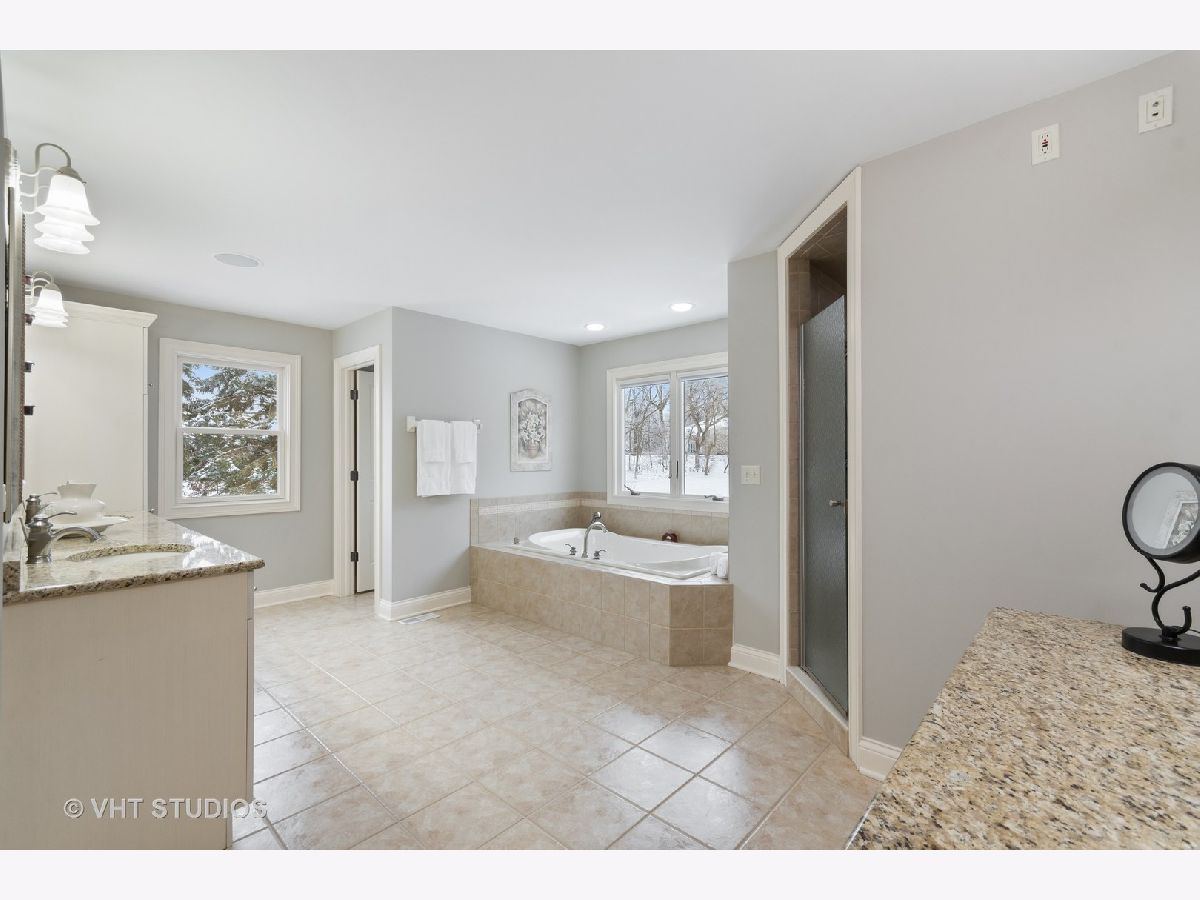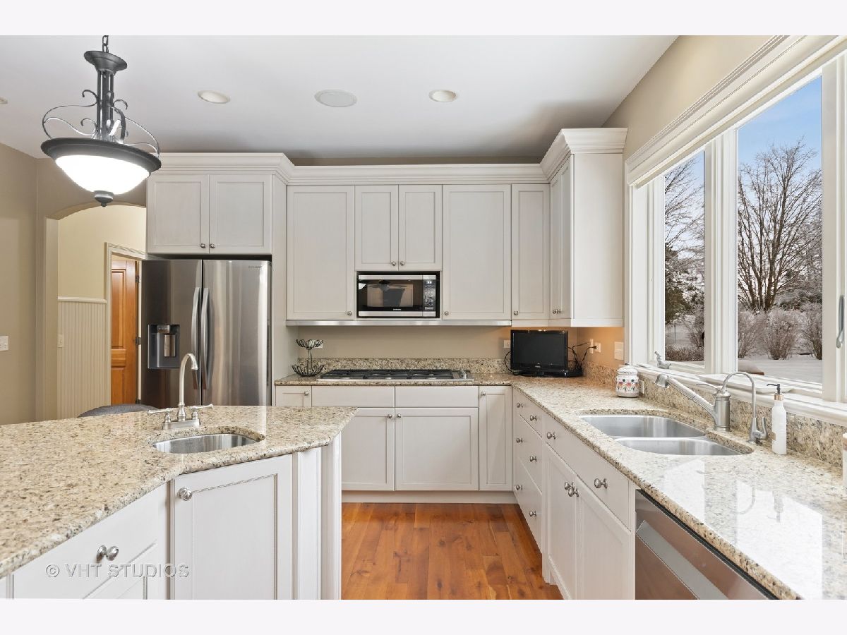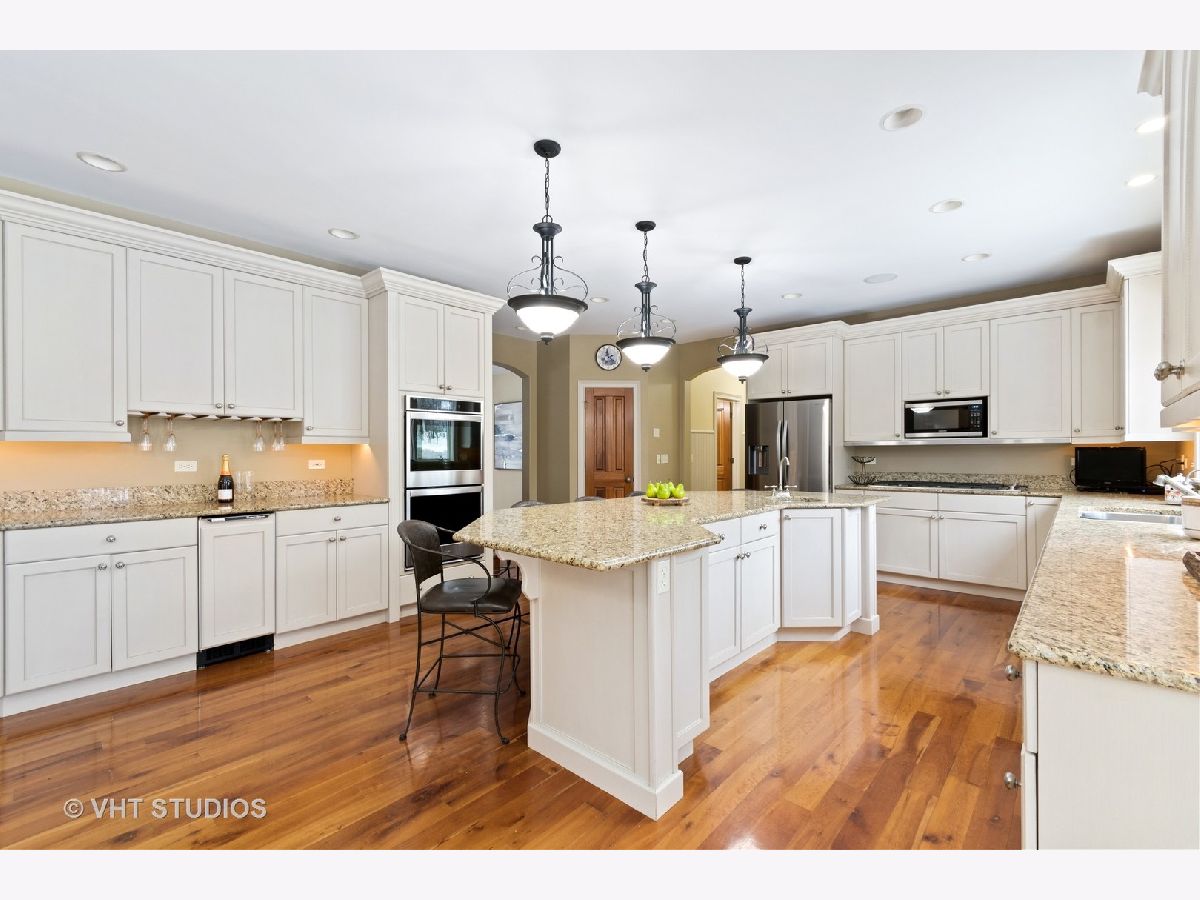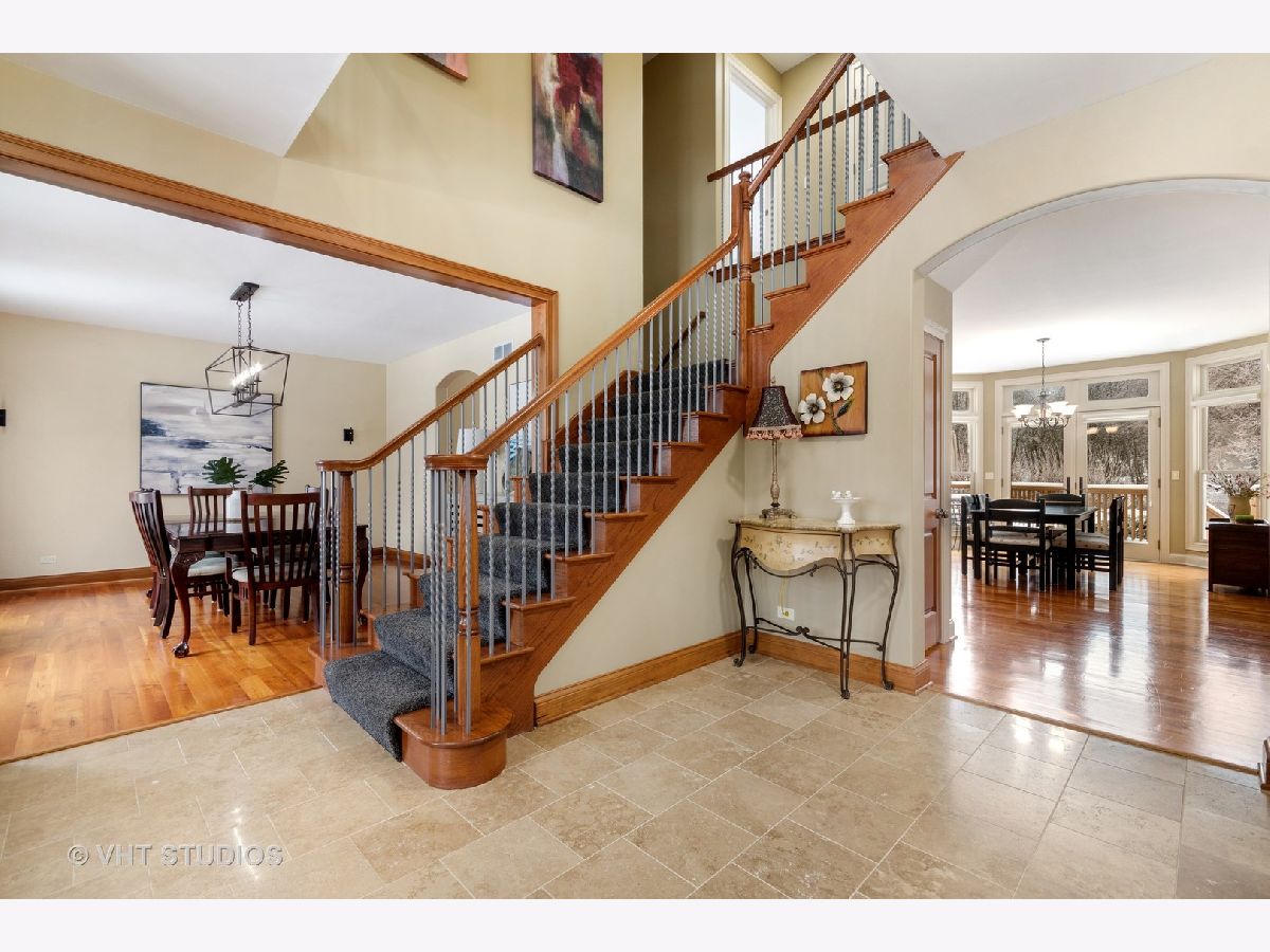 Looking for almost 6000 square feet of luxurious living with a cul-de-sac location on 1.3 acres backing to woods on one of the highest elevated lots in Kane County offering ST. CHARLES SCHOOLS and an inground pool? Gourmet eat-in kitchen has granite countertops, 5" cherry wood plank flooring, huge center island/breakfast bar with sink, wine bar and fridge--BRAND NEW STAINLESS STEEL appliances (Dec 2020), Dacor 6-burner cook top, double-oven, reverse osmosis system, and walk-in pantry. The 2-sty foyer w/iron spindles and stone tile, the 9' ceilings, and the open airy floor plan are just a few of the "Must Have" amenities. Sought after first floor guest/in-law arrangement with an en-suite full bath (home office or E-learning) is very versatile. A powder room, built-in cabinetry with coat hooks, laundry room with tons of cabinets and clothes chute will add to your everyday convenience. The family room has fabulous built-in shelving, wired for surround sound and a raised hearth brick fireplace to warm you on chilly nights! The master bedroom has a huge walk-in closet, deluxe private bath offering double-bowl vanity, linen closet, whirlpool tub and rainfall shower. Bedrooms 2 & 3 are connected by a Jack & Jill bath with lots of storage, vanity and tub/shower. Bedroom 4 offers en-suite bath and walk-in-closet--(rear facing bedrooms have room darkening shades--all bedrooms have ceiling fans and all showers are tiled to the ceiling.) You will love the full finished/deep pour/walkout basement with recreation room, kitchenette with spectator-height bar, bonus/exercise room wired for surround sound, a theater with Dolby Atmos 9.2 Surround Sound System and 90" screen, plus the 5th full bath & additional washer and dryer! There is radiant heat underneath the flooring by door to pool & bathroom, unfinished enclosed storage area with custom wood shelving. Zoned heating, Boston Acoustics 3 zone surround sound system throughout, 2 instant water heaters, Ethernet, whole house charcoal water filtration system, recently stained deck with gas line for grill, patio, extra electrical panel wired for backup generator. The sideloading 3 car garage has hot and cold water spigots and a 220 line to CHARGE an ELECTRIC CAR (Bring your Tesla)...Enjoy the gorgeous inground pool with newer cleaner, filter, liner and heater, plus flagstone fire pit! The perfect, private location with resort-style living--no more hotels--you will never leave!