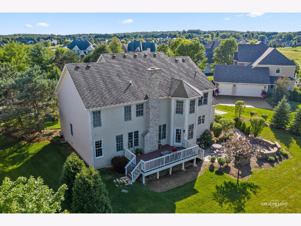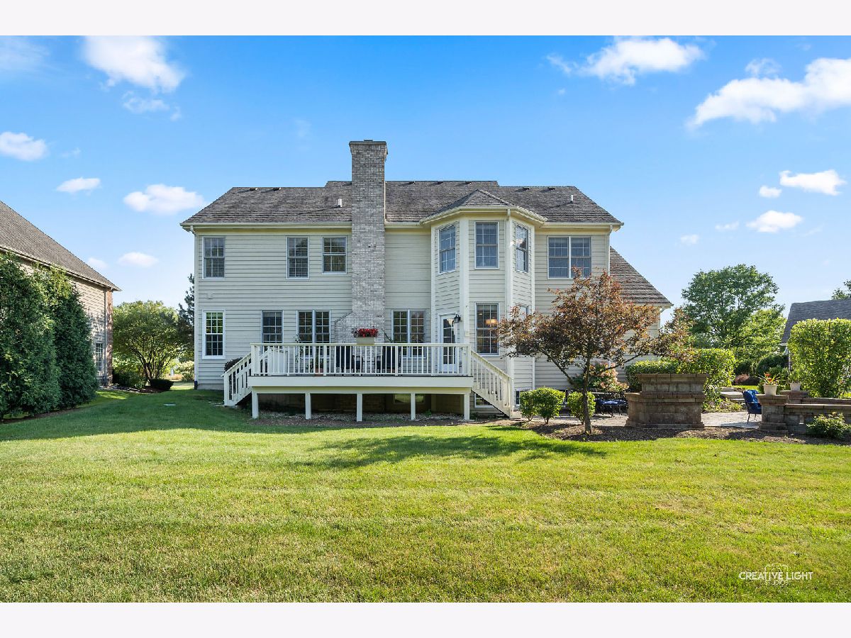 This is one of the prettiest homes you will see with the most exquisite white trim work throughout. The second floor is unique with FIVE bedrooms and two jack & jill bathrooms!! This premium location is on a quiet cul-de-sac overlooking a serene pond with a fountain and a gazebo with park space. The open floor plan, two-story grand foyer, double staircase and top quality doors and hardware throughout set the stage. The elaborate quality craftsmanship and architectural trim work including wainscoting, thick moldings and deep crown moldings literally are over every inch of this house. The family room has stunning coffered ceiling, recessed lighting and stone fireplace with extensive trim detail. The kitchen is huge with 42" cherry cabinets, granite countertops, backsplash, stainless appliances and the radius eat-in area overlooks the yard. There is an abundance of cabinet and countertop space which is more than you will find in any other kitchen! Glass French doors open to the first floor office with wainscoting walls and crown molding. Moving upstairs you will find the massive master suite with sitting area which could also be utilized as a nursery space or office. The suite also has His & Her walk-in closets, luxury bath with high double sink vanity, whirlpool tub and private commode room. There are four additional large bedrooms with two jack & jill bathrooms and all bedrooms have walk-in closets. Plan to enjoy being outside with the gorgeous large paver patio with wall fireplace-like firepit, remodeled deck and patio in 2020 with plenty of shade, playset and plenty of yard space with open space offering acres of park adjacent to this home. There is a deep pour English basement too! New hot water heaters in 2018! Security system and sprinkler system! The highly rated District 303 St Charles schools including #1 rated Bell Graham Elementary School and popular SwingSet Preschool both located within the subdivision! Miles of paved walking/biking trail, clubhouse and pool for resident use and social events makes this a wonderful place to raise your family! Minutes to the Metra commuter train with ample parking and downtown St Charles and Geneva for endless shopping and restaurant options.