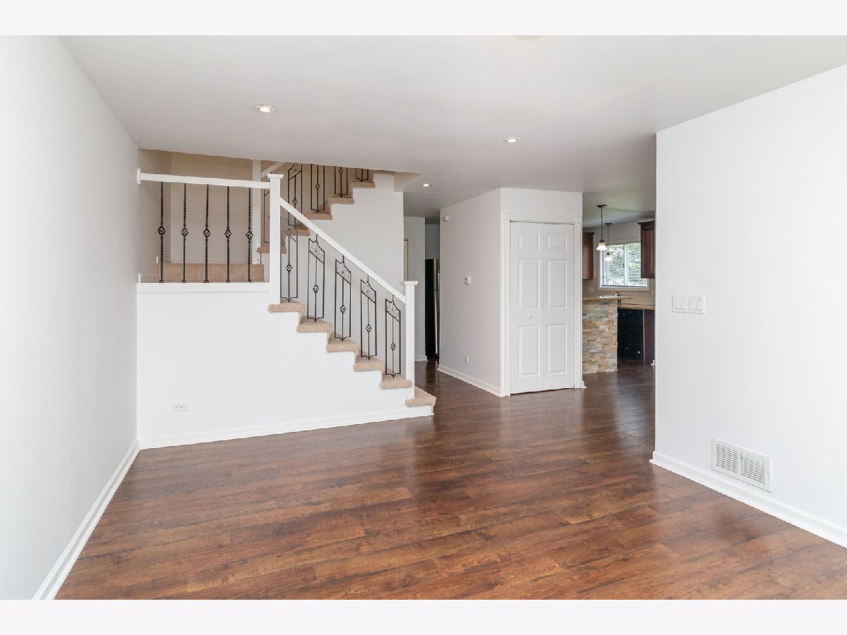In the heart of Bolingbrook, this pristine townhouse is waiting for its new owners! When you arrive, there is plenty of parking for you and your guests: two reserved spaces and plenty of street parking. Enter through the gate into your private courtyard patio; just one of two private outdoor spaces ready for your summer living. Step inside to your open-concept living space with newer gleaming wood laminate flooring throughout the main level. Spacious living room with large window lets in lots of natural light, dining area with new lighting upgrades, and a beautiful kitchen with newer stainless steel appliances, plenty of storage with 42" cabinets and additional counter space. On the main level is also a powder room and in-unit laundry. Upstairs has been updated with brand new plush carpeting throughout the hallway and bedrooms. Enjoy your spacious primary bedroom complete with private balcony. There is also a second bedroom perfect for guests or kids, and a third room perfect for a home office. You'll also find your full bathroom at the end of the hall. Don't miss out on this perfect townhouse!