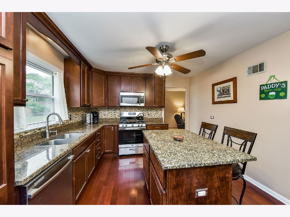 Beautiful spacious split level home set in the heart of Valley View subdivision, conveniently located next to shopping and short commute to expressways for commuters, ideal location! Nature lovers will love the proximity of the acclaimed Morton Arboretum and the schools are all award winning! Features include a gorgeous newer kitchen with Brazillian cherry wood plank flooring, cherry 42 inch cabinets with built in pantry and pull out drawers, glass mosaic backsplash, granite counters, center island with breakfast bar, stainless steel appliances including a brand new refrigerator and brand new oven/range, ceiling fan with light, double bowl stainless steel sink with gooseneck faucet and window above the sink to provide views of the lovely backyard. Also on the first floor is the living room and formal dining room with broad plank wood flooring, the living room has a bay window with window seat, perfect for plants, and the dining room has a sliding glass door that leads out to patio, deck and fenced backyard. The lower level features a large Family room with ample room for all of your furniture, a full bath and a laundry room with washer and dryer (washer is just 2 years old), also a laundry tub for your convenience.There is a 2nd refrigerator that will also stay and there is access to a spacious concrete crawl space. There are 3 bedrooms on the 2nd floor, including the Master Bedroom, all bedrooms have hardwood floors, ample closets, and ceiling fans with lights. There is also a full bath on the 2nd floor. The backyard is private and is all fenced in with a gate access and has a detached 2 car garage, a storage shed, and a combination patio/deck area, perfect for entertaining. Lots of updates throughout the years include all new windows in 2006, new siding in 2010 approx, new furnace and air conditioner and 50 gallon hot water heater in 2013, roof in 2007, and more! The home has been lovingly maintained throughout the years. The longtime homeowner states that the home has always been nice and dry with no water penetration. This lovely home in ideal location won't last long, so hurry!
