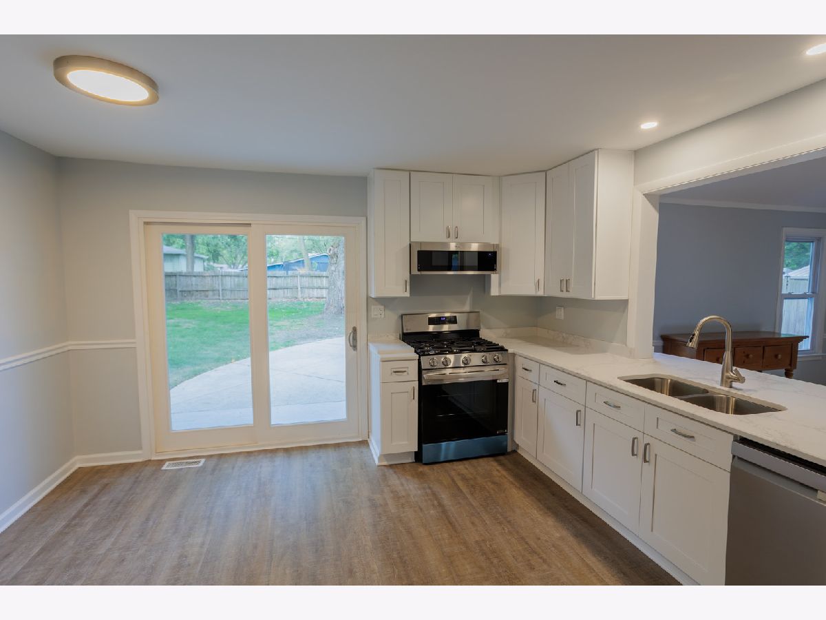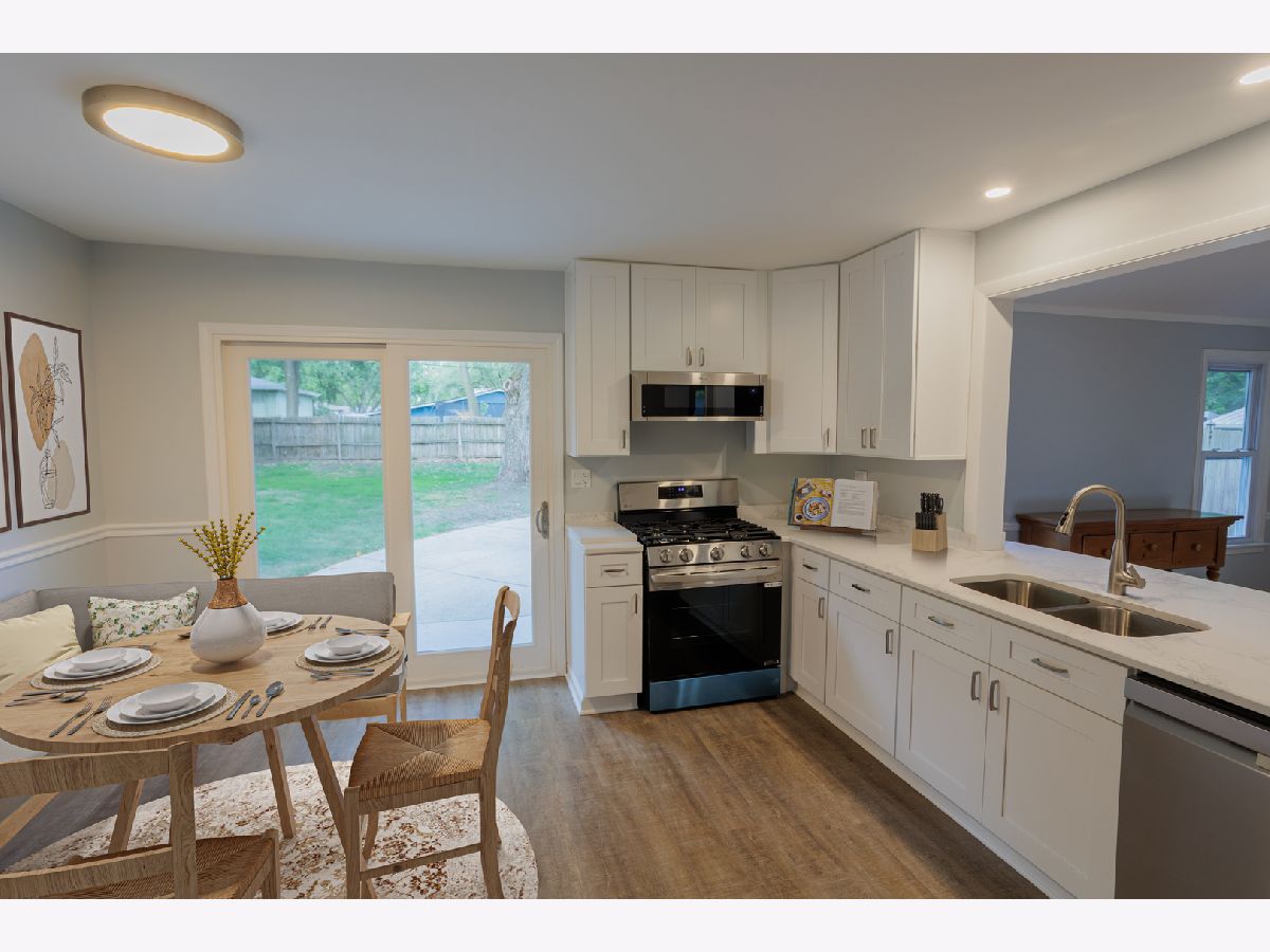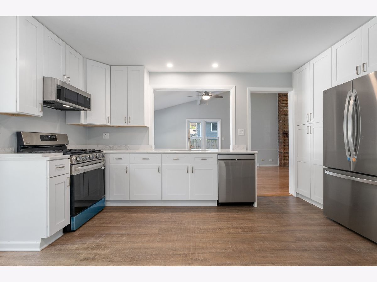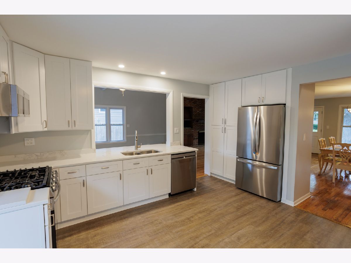 Arboretum Living! Easy walk to Arbor View Elementary School, Glenbard South High School, and Morton Arboretum! Fully renovated this summer (both interior and exterior), this light and bright home features very flexible living areas between the combo living/dining area and full dining room that could be used as an additional family room, den, etc. All-new upgraded stainless kitchen appliances, quartz countertops, and counter bar with room for bar stools. The kitchen faces a spacious Great Room with vaulted ceilings and a fireplace. Newly refinished hardwood floors are throughout the home. The finished basement includes a large carpeted family room, bathroom, and laundry room with a window that could be used as a playroom, home office, or exercise room. Relax on the inviting covered front porch, or enjoy your private fenced backyard oasis, perfect for hosting family and friends! 2 1/2 car garage. Move in ready!