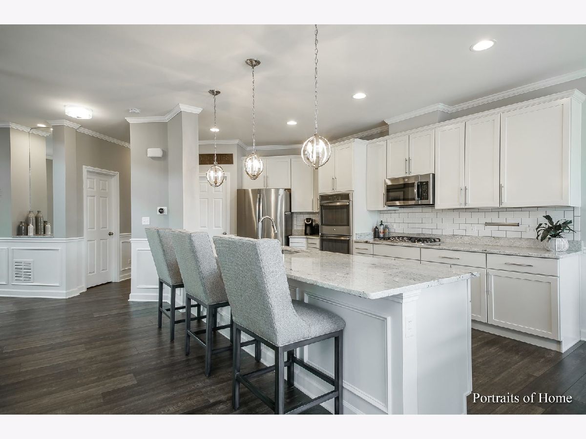 SHOWS LIKE A MODEL!!! ABSOLUTELY STUNNING OPEN CONCEPT LUXURY TOWNHOME IN HERRICK WOODS. This sun drenched home decorated in todays grey tones boasts impressive appointments including: wood look floors, 9ft ceilings, custom wainscoting and trending light fixtures. The kitchen displays an oversized island with granite countertops and seating, white subway tile back splash, 42'' soft close white maple cabinetry, stainless steel appliances and a walk-in pantry. The spacious living room has a cozy fireplace. The master bedroom offers a tray ceilings, a spacious walk-in closet with built in organizer and a private bathroom with double bowl vanity, lavish glass shower and linen closet. The 2nd bedroom too has a private bath and large walk-in closet. There is a enormous loft area that can be used as an office, play area or made into a 3rd bedroom. The walk-out basement with bathroom rough-in awaits your finishing touches. The 2 car garage is also beautifully finished with an epoxy floor. This is the perfect location only 10 minutes from downtown Naperville & downtown Wheaton, quick access to I-88 and walking distance to the Herrick Lake trails. WELCOME HOME!