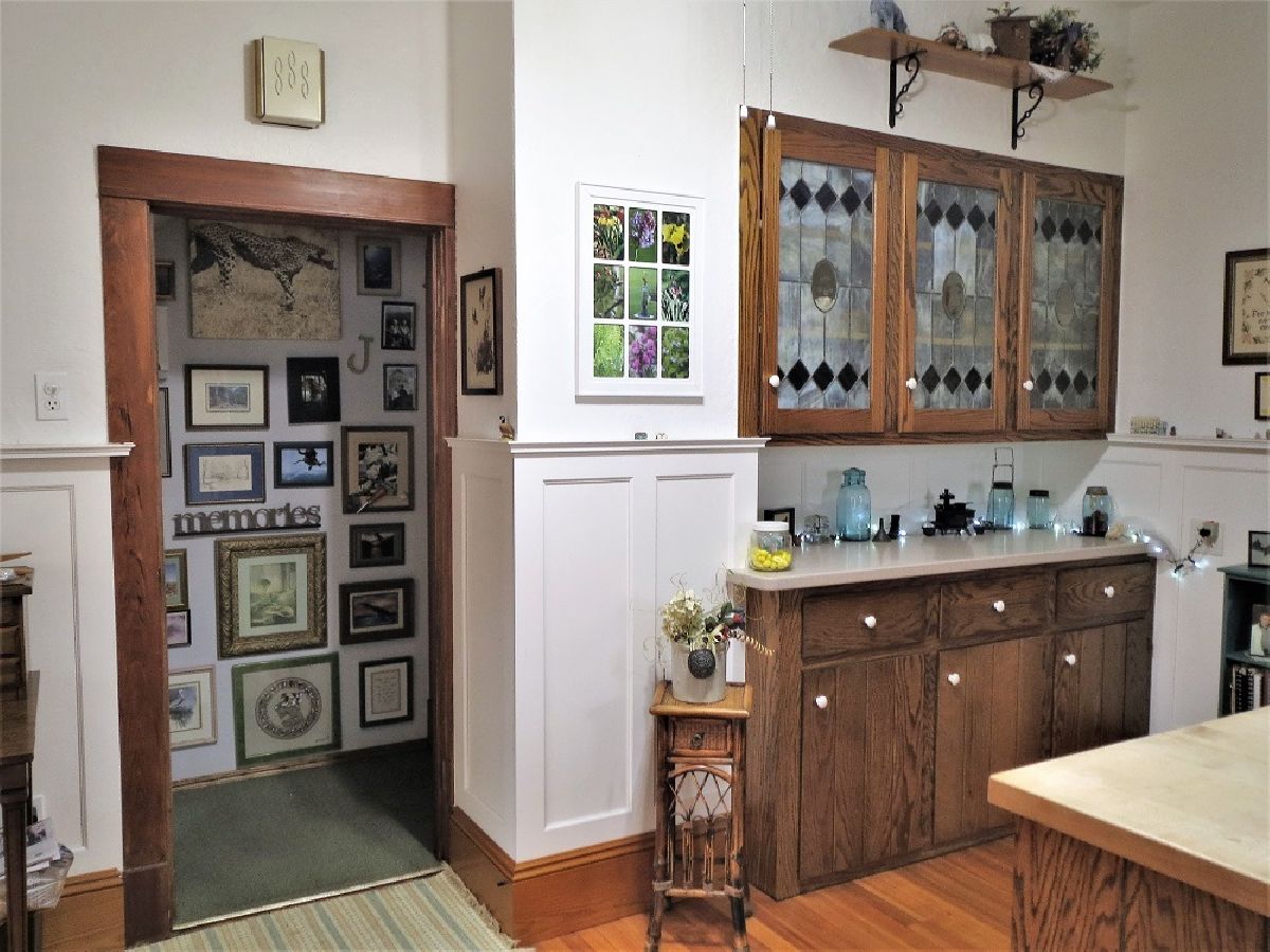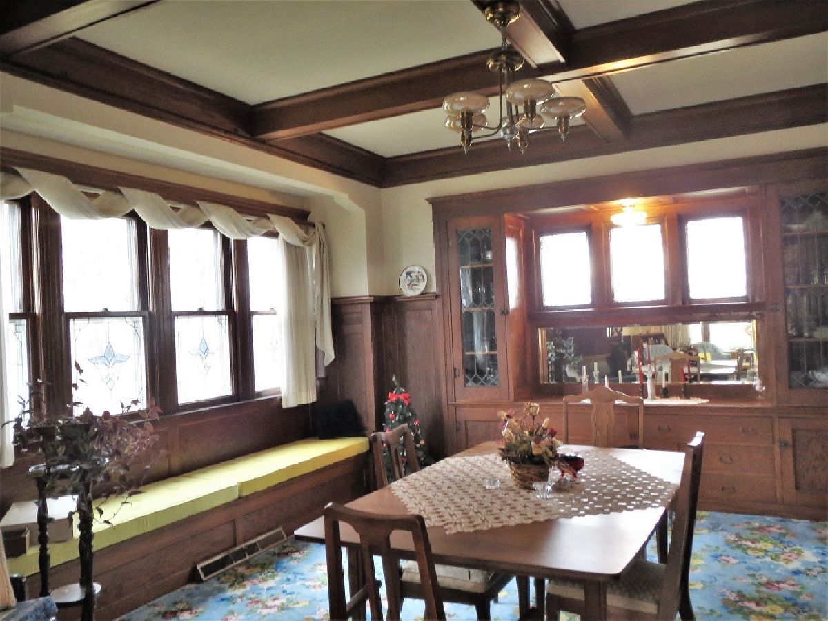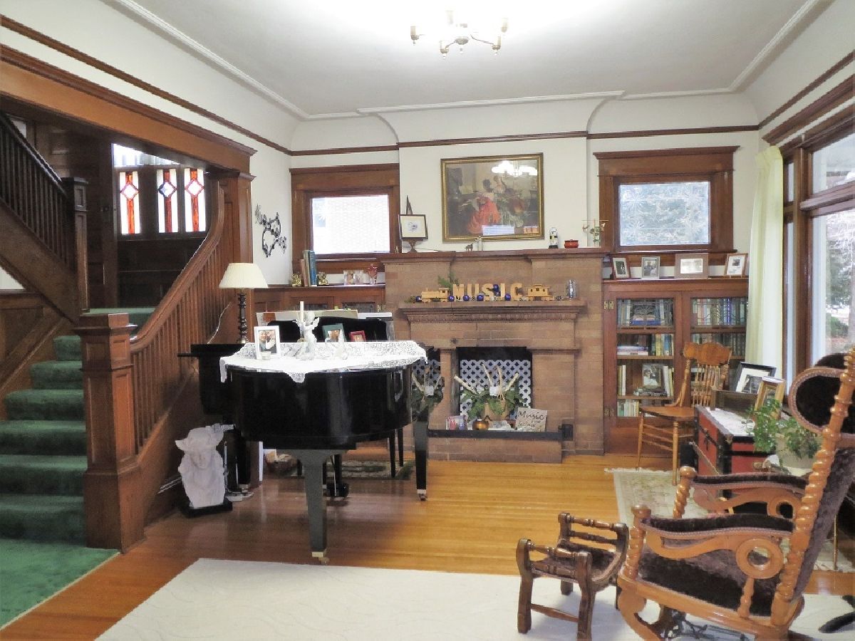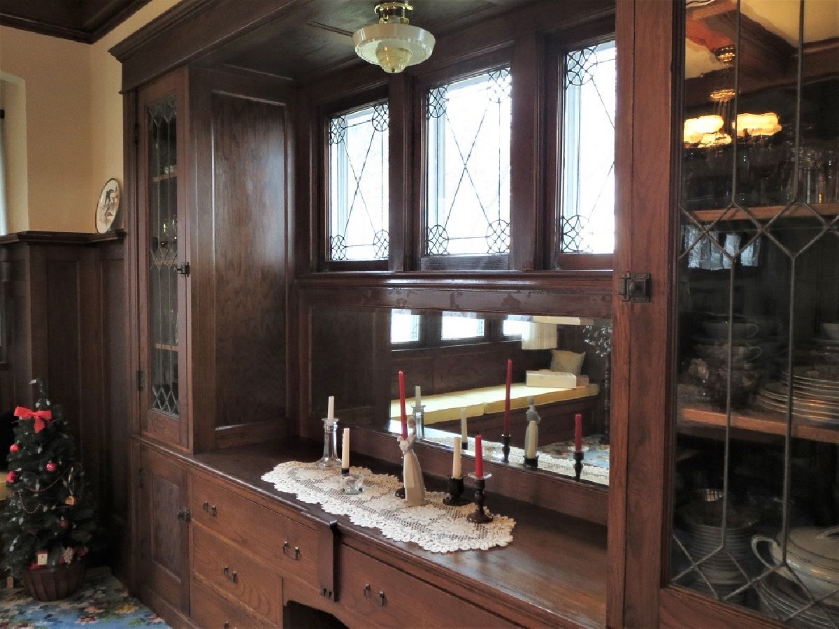 In a class by itself! This stately and beautiful home features preserved staples of the past: gorgeous, ornate woodwork that has never been painted, period hardware that is intact, beautiful hardwood floors, multiple window seats, hand etched and stained glass windows, a fabulous entryway, brick fireplace, and several built-ins. The kitchen has a cozy work area with a double "farmer" sink by Fireclay, as well as custom stained glass in the cupboards. Nice eat-in area with access to back staircase, 3 season room, and 1/2 bath. The stunning dining room can handle large gatherings, with an oak built-in china cabinet w/leaded glass & a beveled mirror. Head up to the second floor on the spectacular staircase, where there are 4 large bedrooms- all with walk in closets. 2 of the bedrooms have an adjoining 7'x8' closet. The full bath is lovely, with double sinks, and a walk in shower. Massive walk up attic offers tons of storage, or could make fabulous living space. The basement is also very nice- with 8' ceilings, an office, laundry, & great storage- unique for an historic home! This is a meticulously maintained home. Outside, you'll find a 2 car detached garage, brick paving for additional parking, historic covered front porch, large deck off of the 3 season room, and even a whole house generator. New roof on house & garage in 2022. Own a piece of history! There are too many features to mention here, make an appointment for your private showing today!