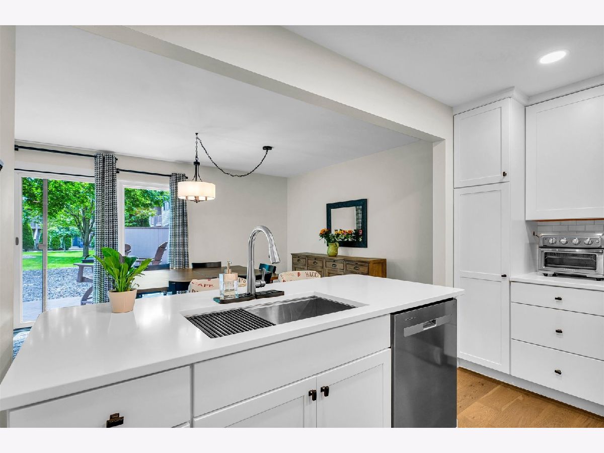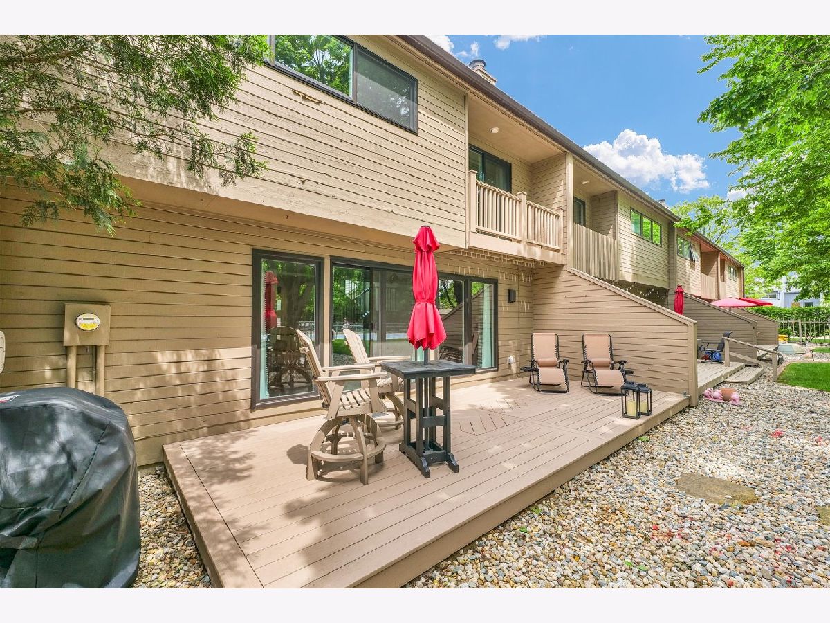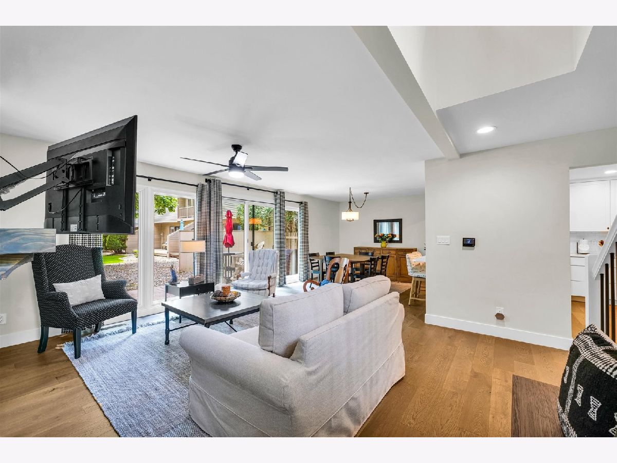 Welcome to this beautifully renovated 2-bedroom, 2.5-bathroom condo offering 1,830 sq. ft. of thoughtfully designed living space. The main level features an open-concept layout with hardwood flooring throughout. The sleek, modern kitchen boasts new white cabinetry, quartz countertops, stainless steel appliances, and a convenient breakfast bar. What was once a laundry room has been cleverly converted into a bright, functional office space, ideal for remote work. Upstairs, you'll find additional living space with direct access to a balcony overlooking the beautifully maintained courtyard. The primary bedroom offers a spacious walk-in closet with custom shelving and an ensuite bathroom. The second bedroom also includes its own ensuite, providing comfort and privacy for guests or family members. The laundry has been relocated to the second floor, featuring a new all-in-one washer and dryer for added convenience. Beyond the interior, this condo extends your living space with a private deck, and residents also enjoy the luxury of a private pool, perfect for cooling off on warm days or unwinding with neighbors.