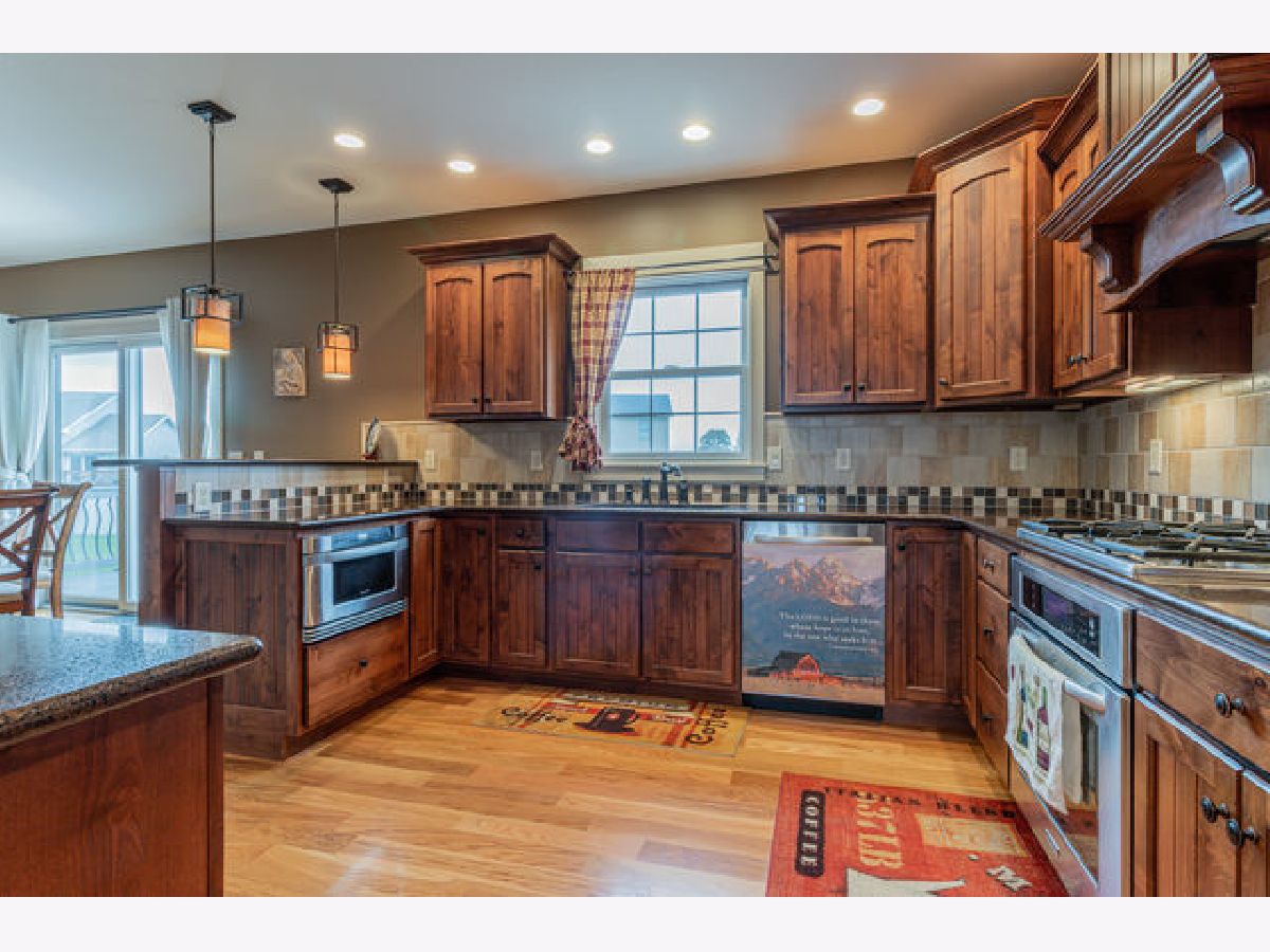 Quality construction Armstrong Home! The "Scottsdale" was featured in the showcase of Homes in 2008. Beautiful mosaic tile entry and open dining room, greet you at the front door. Exceptional kitchen featuring granite countertops, knotty alder doors and cabinets, built-in SS appliances, and tiled backsplash. The kitchen opens into the living room w/ fireplace and lovely oak hardwood floors. Updated with Hunter Douglas Energy efficient blinds. Upstairs you'll find the laundry room, along with 4 of the 5 bedrooms. Master suite includes full bath w/ tiled walk-in shower, whirlpool tub, and dual Silestone countertops. The basement offers additional storage space, a family room, and an additional bedroom. Enjoy the whole house sound! Large, maintenance-free composite deck with patio and fire pit. The backyard opens up to a large common area with two ponds. New roof in 2014, new HVAC in 2016, new carpet on stairs and basement 2019 and professional landscaping in 2018. There is a Mitsubishi AC unit to cool the garage on hot summer days.
