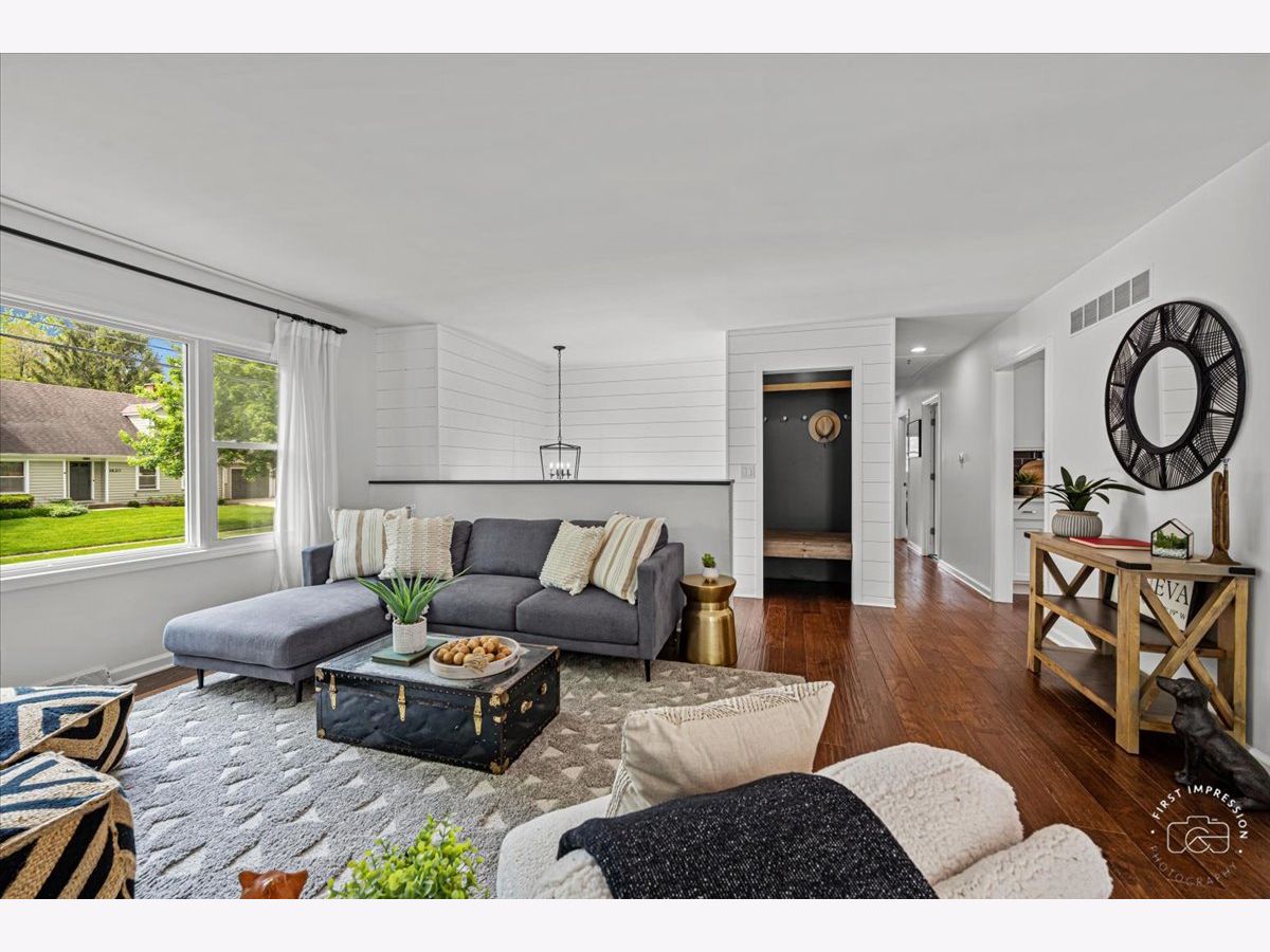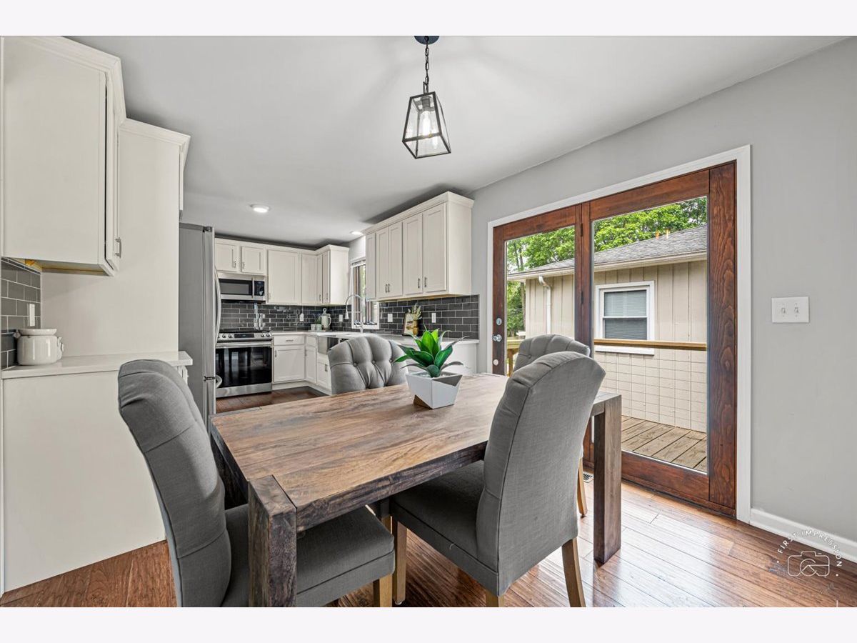 Situated in the Geneva Manor Subdivision, this split level home has been recently remodeled. It's a perfect, and move-in ready, located near downtown Geneva. As you enter the house, you'll be welcomed by beautiful shiplap walls in the foyer and stairway. The lovely living room has a huge window offering natural lighting. The stunning kitchen is fresh, and modern, and boasts Quartz countertops, 42" white soft-close cabinets, a farmhouse sink, subway tile, and stainless-steel appliances and ample eat-in space. The main level also includes a full newer refreshed bath, with attractive tile and glass-block window light. The main floor features updated lighting, manufactured hardwood flooring throughout, except for the primary bedroom and 2nd bedroom. The lower level has a family room/office that could be used as a 4th bedroom, a walk-in closet, and has an additional full bath. The large laundry room comes with built-in shelving and a utility sink. You can relax and enjoy the spacious, new, wrap-around deck that overlooks the mature and professional landscaping with entrances off of the kitchen and living room to the deck.The home is situated on the lot to have two large side yards; room for gardens, play sets, relaxing, and living your best life.