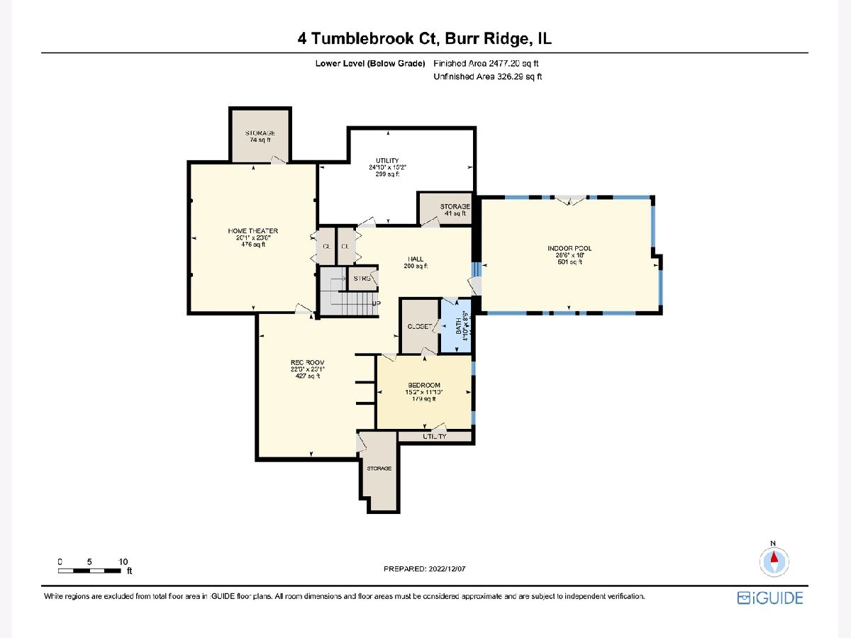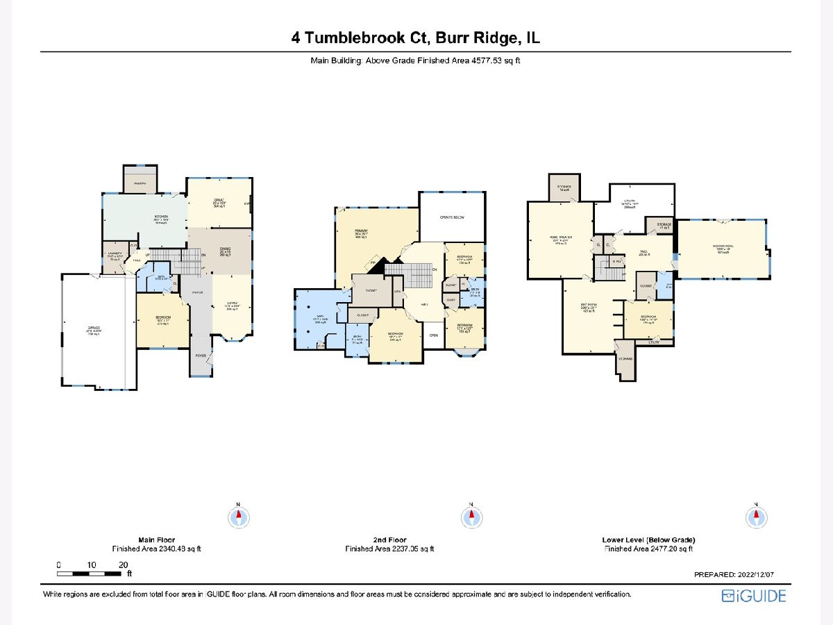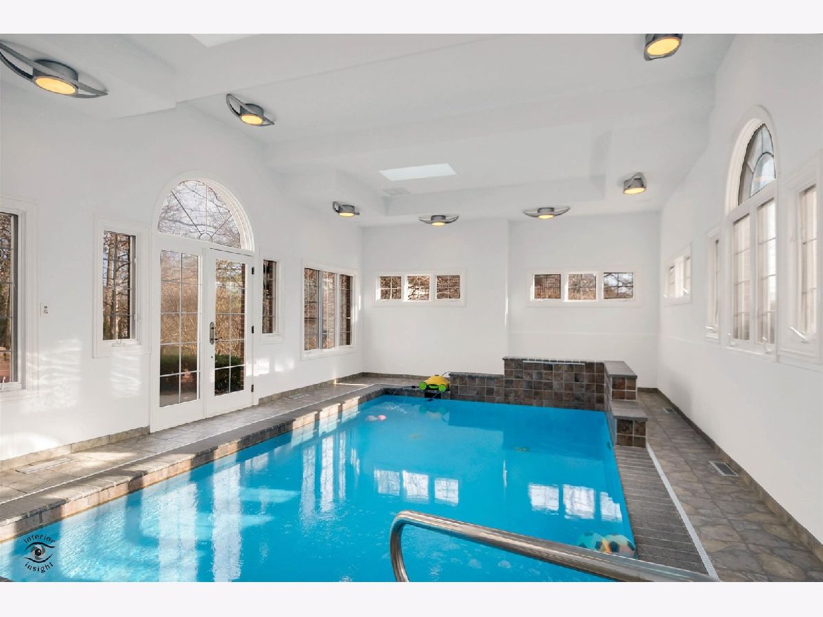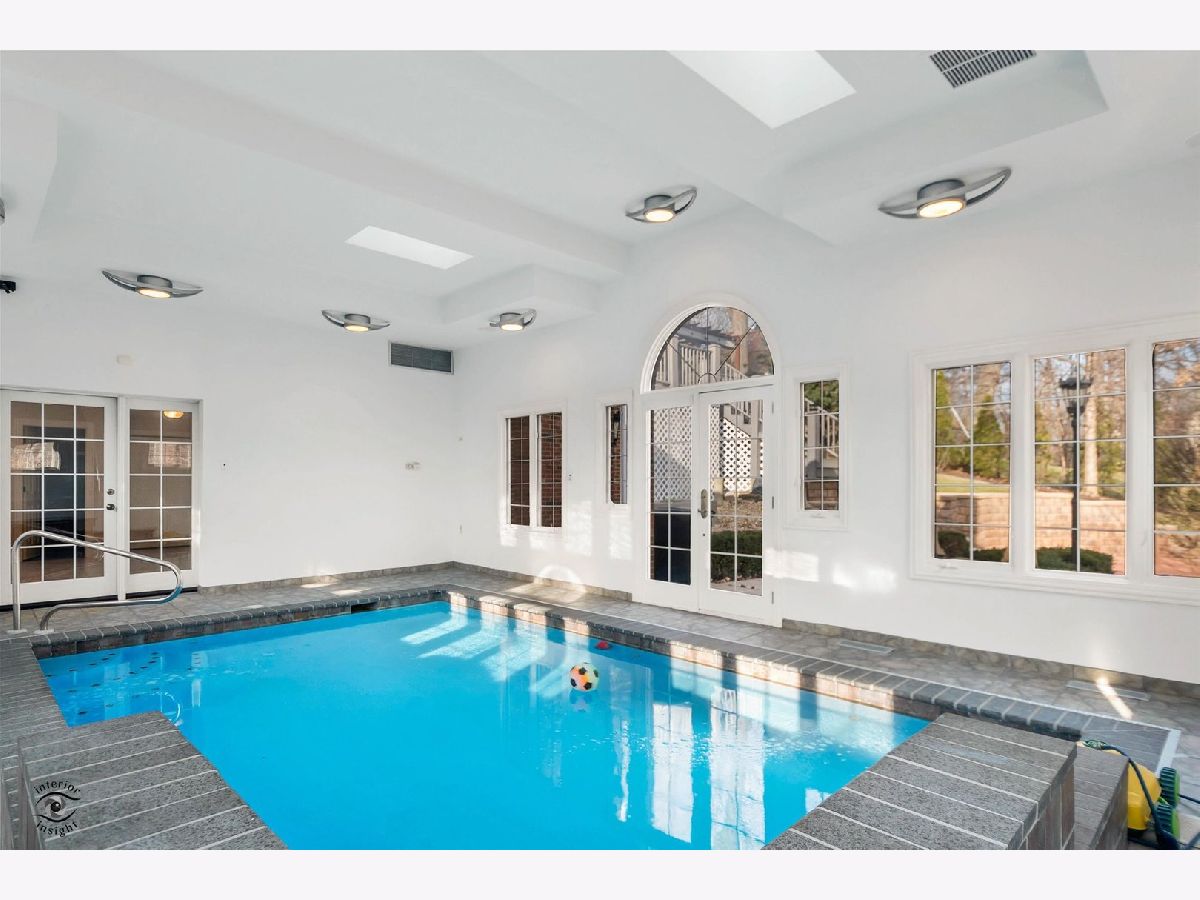 4 Tumblebrook Ct. is a sprawling, newer-construction estate in Burr Ridge's prestigious Falling Water gated community. Built in 2006 by its original owners, this well-maintained and nicely updated home features quality finishes, over 7,000 square feet of living space, a modern aesthetic, and is wired with a 4-zone whole house sound system. There are 6 bedrooms and 5 full bathrooms, including a first-floor bedroom with ensuite full bath. Especially striking is the 2-story family room with coffered ceilings, floor-to-ceiling Palladian windows, and inviting fireplace. The kitchen is a chef's paradise, with Wolf range, a second Wolf wall oven, an in-counter Wolf deep fryer, all stainless appliances, quality granite countertops, cabinets with detailed millwork, an oversized island, table space, and a spacious, walk-in pantry. The main level also has a separate dining room, spacious laundry room with ample counter space and cabinetry, and an elegant, light-soaked foyer. There are four bedrooms upstairs, including the master suite with fireplace, walk-in closet, and private master bath. There's a second bedroom with full ensuite bath, and two more bedrooms with a shared (jack & jill) bathroom. The second floor also hosts the second furnace/water heater and has a pull-down staircase providing access to the attic. The finished basement has a 6th bedroom, full bath, a furnished theater room, recreation room, and heated indoor leisure pool (19x11; 3-4 feet deep). The home also has a 3 car heated garage with epoxy flooring and newer doors, zoned heating/AC, a whole-house power generator, and ample storage. The exterior features professional landscaping and a newer composite deck and enclosed gazebo (2020). Falling Water is a gated and guarded community, providing both a serene, quiet neighborhood and the peace of mind that comes with living in a secure, limited-access community. Located in the quiet, southwest quarter of Burr Ridge, Falling Water is located in close proximity to Waterfall Glen, the Burr Ridge Village Center, Route 83, and I-55 and 294.