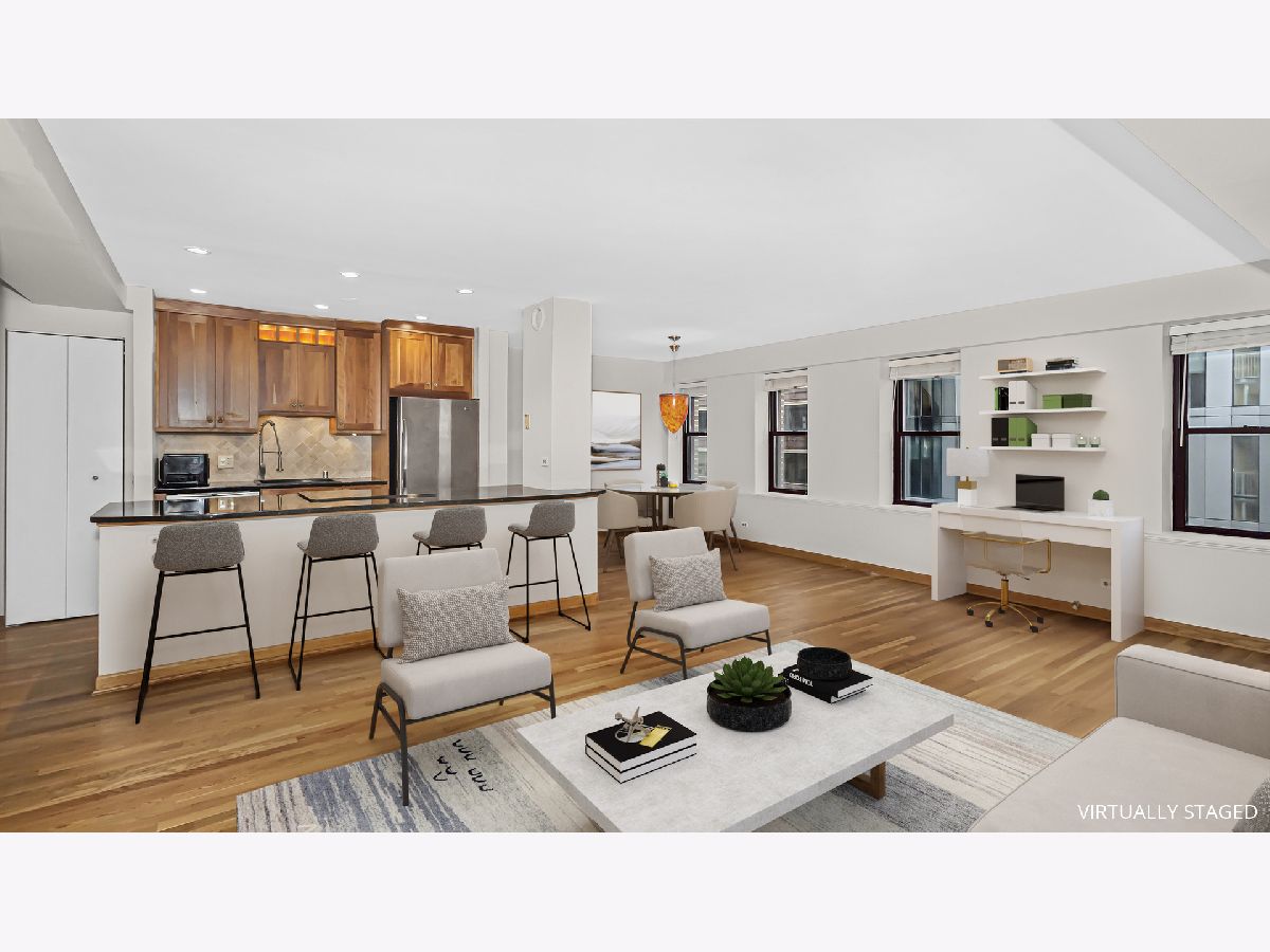 Welcome Home to this 1 Bed/1 bath condominium in a full amenity building in the South Loop neighborhood of Chicago. Burnham Park Plaza was originally a 1000-room YMCA hotel and was a residential foundation in the area. Upon arrival there is a true entry foyer and hallway with gallery walls that leads to the open living space. The exposure to the east and south provide bright sun exposure throughout most of the day. This condo is complete with hardwood floors, plenty of storage, and an open floor plan with an eat-in kitchen counter. There is space for a work from home office area, a formal dining space or even add a wall for a second bedroom. Amenities in the building include 24/7 door staff and maintenance, management on-site, a fitness room, a shared roof deck, package lockers, and a party room. Just 3 blocks from the heart of the South Loop transportation hub at Roosevelt Road, there is also easy commuter access to expressways to Indiana and the suburbs. Enjoy the Lakefront path, Museum Campus, and all of the activities that are hosted in Grant Park and Soldier Field. Make Chicago Home today. Deeded garage parking available for sale at $35,000.