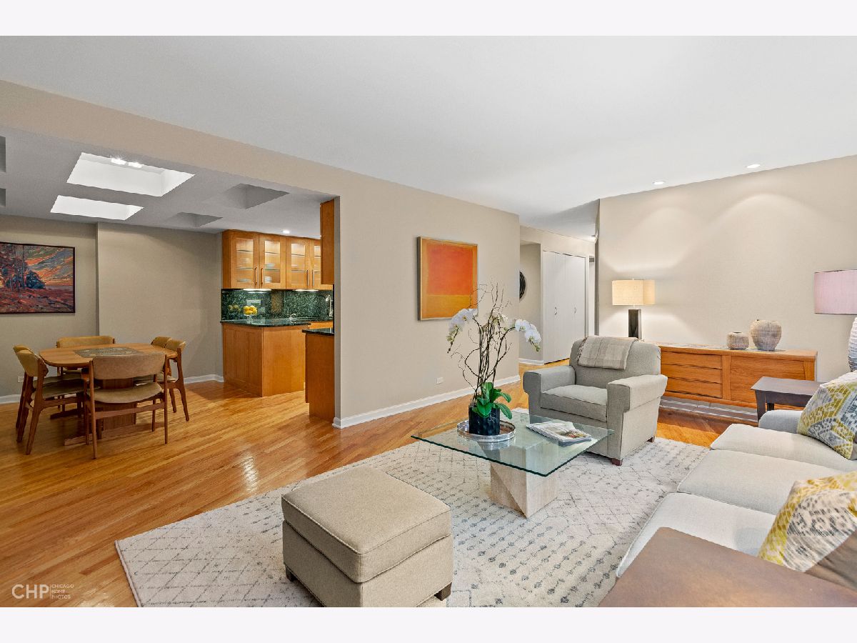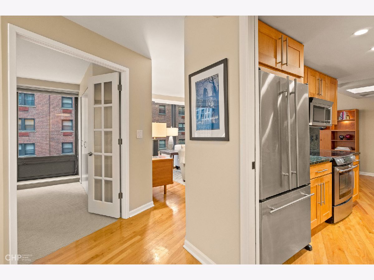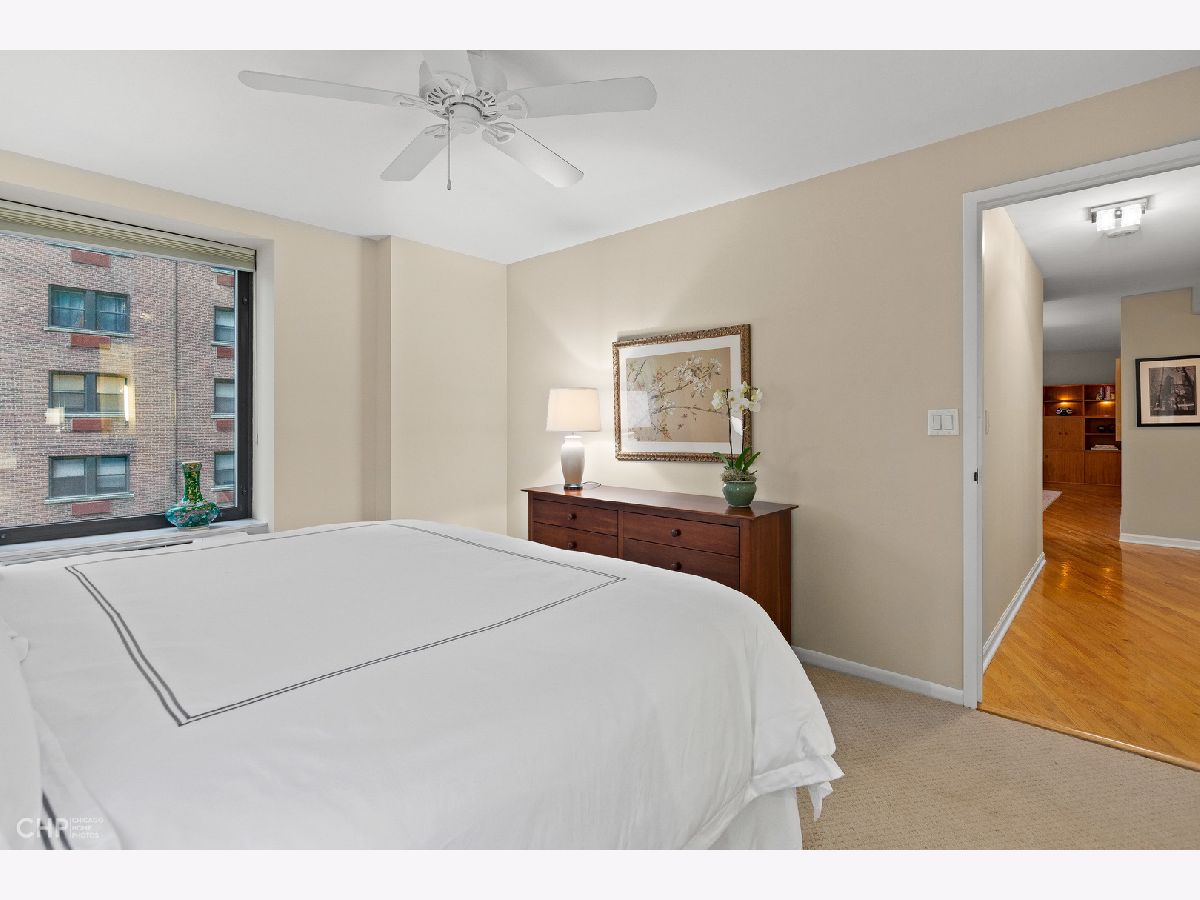***SEE 3D TOUR IN VIRTUAL TOUR LINK. TOUCHLESS AND FACETIME SHOWINGS AVAILABLE AS WELL!*** Gorgeous south facing 2BR/2BA condo in the heart of the Gold Coast! Freshly painted and hardwood floors throughout. Spacious living room with bay window. Kitchen features tons of storage, granite counters, stainless appliances (new dishwasher January 2020!), and opens to a formal dining room. Master suite comfortably fits a king size bed, and features a private full bath. Second bedroom with french doors features two large windows and would make for a great office or den. Both bedrooms just had new carpet installed January 2020. In-unit washer/dryer. Building is efficiently equipped with an exercise room, meeting room, laundry room, and sun deck with grills. Each unit has its own storage locker, and an additional storage locker may be rented for an additional fee (subject to availability). Plenty of garage parking options available around the neighborhood. Amazing location with great walkability to public transit, shopping, Michigan Avenue, restaurants, nightlife, and more!