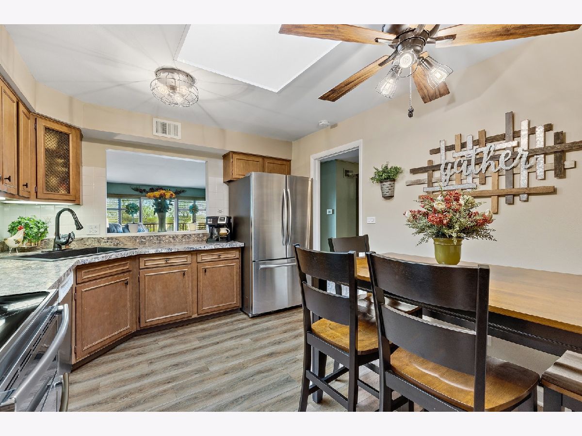 This amazing 1500 square foot PENTHOUSE condo will capture your heart the minute you walk in. Enjoy the natural sunlight from a SKYLIGHT in this stylishly updated eat-in kitchen with newer flooring and stainless appliances. Entertain in the gracious, full- sized DINING ROOM, big enough for the whole family! Your comfortable family room has a spectacular wall with a dramatic sliding glass door outfitted with new plantation shutters! The balcony was recently redone and has GOLF COURSE and GARDEN views that will take your breath away! This is a place you'll be proud to call HOME.There is genuine pride of ownership in this building- the lobby and grounds are meticulously maintained and there is an efficient and well-run self managed HOA. A heated indoor parking space (#19)is included, and a spiffy laundry room is on the 2nd floor, as well as an extra storage unit. Golfers take note: In- district resident rates for for both Village Links and Arrowhead Golf course! Close to shopping, transportation, recreation, and downtown Glen Ellyn and Metra is just a hop, skip, and a jump, and I-355 is only minutes away! Welcome to your new, carefree lifestyle!