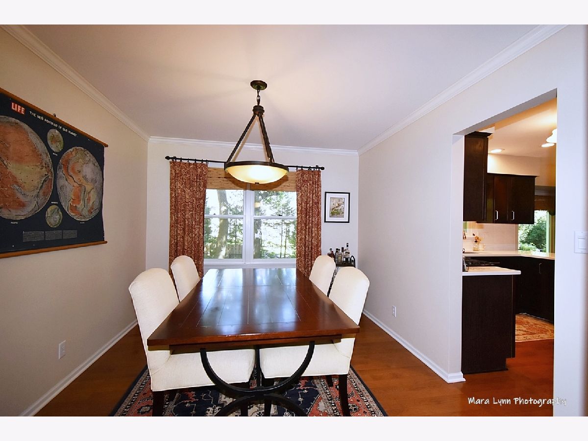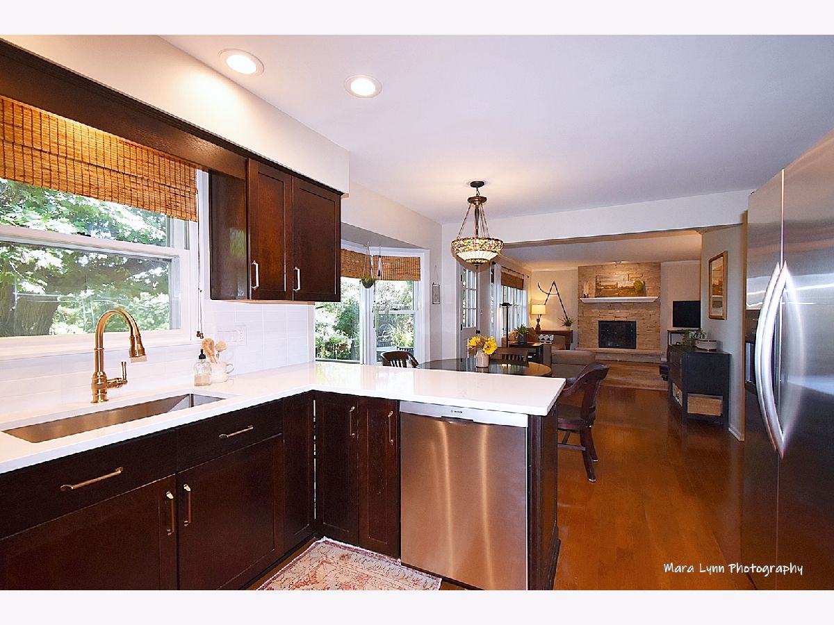 From the moment you pull up to this home on its private wooded cul-de-sac you will know that this is something special!! The wide and extra deep front porch with tongue and groove wood ceiling welcome you... gorgeous hardwood floors can be found throughout the home. The living and dining rooms offer crown molding and tasteful decor. You will love the updated kitchen with espresso-stained cabinets, recessed lighting, quartz c-tops, subway tile backsplash, SS appliances and eating space with big bay window overlooking the scenic yard!! The cozy family room has a floor to ceiling stone fireplace, crown molding and door to a private deck. Primary bedroom suite boasts a custom walk-in closet and stunning bath remodel with 12X24 porcelain tile floor, quartz top vanity and big walk-in shower with custom glass surround. Three generous size secondary bedrooms, 2 with ceiling fan/lights. Full hall bath with white vanity, make-up area and shower/tub combo. The basement is finished with a rec room and room for a home office. The beautiful landscaping includes stone walkways on both sides of the home, paver patio, elevated deck, paver retaining wall and flagstone patio in corner of the yard that would make a great place to put your fire pit! The heavily wooded private lot makes for a cool home in the summer and a very bright home in the winter!!! This exceptional location is centrally located between downtown St. Charles and Geneva so you can take advantage of all of the fine and casual dining... and a short walk to St. Mary's Park, the Fox River, and Bike and Walking Trails... this home has fantastic views from every window and is in perfect move-in condition!!