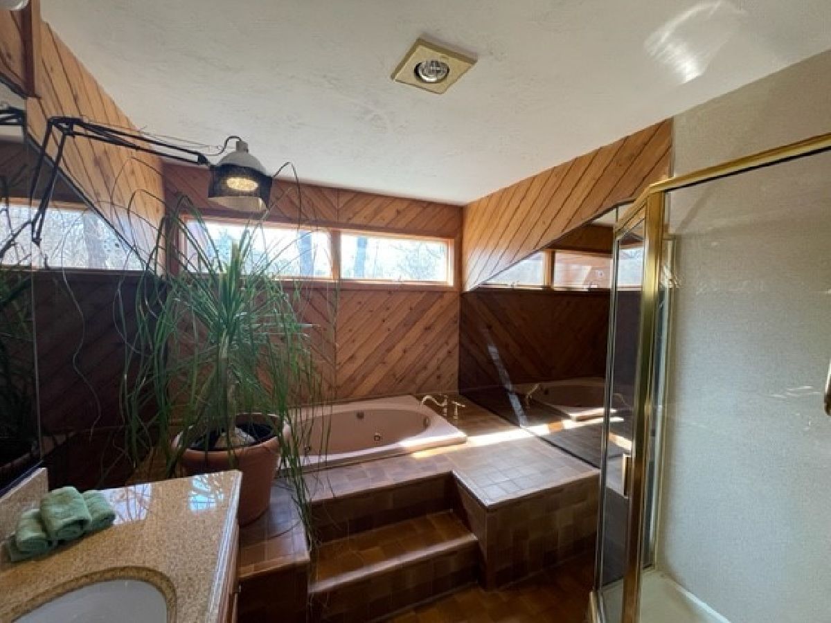 Remarkable space in this 4 bedrooms 4 full bath home located across from Northbrook court and 2 min to I-94. Eat-in kitchen, large living room backs up to a sun filled family room with unique bay windows, dual fireplaces, and sliders to a deck. First floor office, workshop, mud room and huge 2 car garage. No basement. First floor full bath with Jacuzzi tub. All hardwood floors except in 2 bedrooms. Master suite with his and her baths, walk-in closets and amazing River Rock fireplace. 4th bedroom/rec room - 24X16 has option if needed. It has it's own entrance option entrance. 2nd floor laundry and drying closet with vent. Abundant amount of storage. 3 zone HVAC. Great buy! Needs some TLC. Kitchen and dining room chandeliers are excluded.