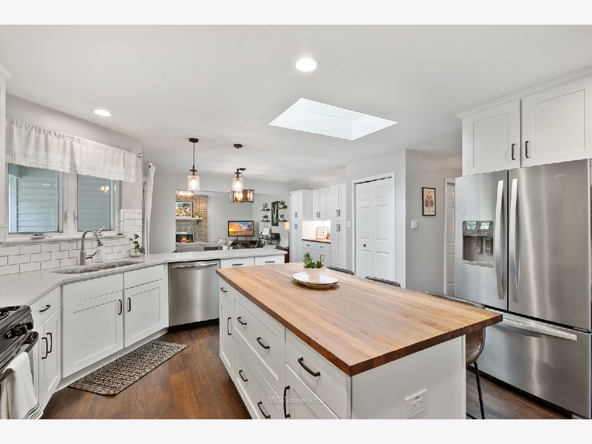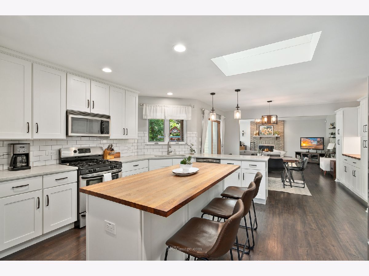 One of a kind - MUST SEE - 3-step ranch home tucked away in a cul-de-sac on a PRIVATE and SERENE lot backing to a wall of wooded nature. Filled with natural light and loaded with upgrades. White trim and 6 panel doors along with high end wood laminate flooring flow thru the entire main level. From the foyer to the living room and large dining space into the beautifully remodeled kitchen featuring custom 42" white cabinetry, quartz countertops, subway tile and an island with butcher block tops plus a spacious eating area with additional built-in cabinetry. Open to the family room with its vaulted ceilings, an oversized picture window and a classic wood burning fireplace. 3 spacious bedrooms including the master suite complete with trey ceilings, dual closets (one is a walk-in) and its own private bathroom. The unique double basement provides an incredible amount of space from a large recreational space to the gaming area leading to a wonderful designated office which could be used as a 4th bedroom. The ample size laundry room is the perfect space to get things done with a laundry sink and plenty of built-in cabinetry while the massive, lower level basement, just 3 steps down provides lots of storage and tons of potential for future finishing. No expense spared on the outside either with a 25x16 Trek deck complete with built-in perimeter lighting, aluminum railings, and an amazing private view of the colonnade of trees lining the border. So many thoughtful touches thru-out including the upgraded lighting and fixtures, a remodeled half bath and motorized blinds in the family room and living room. Don't forget about the 3 car attached garage! All of this plus so much more. Truly a wonderful home inside and out! Come take a look today!
