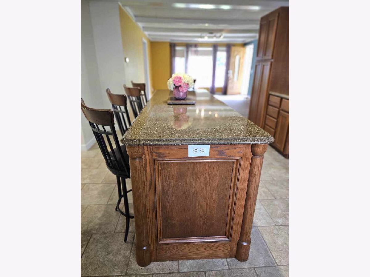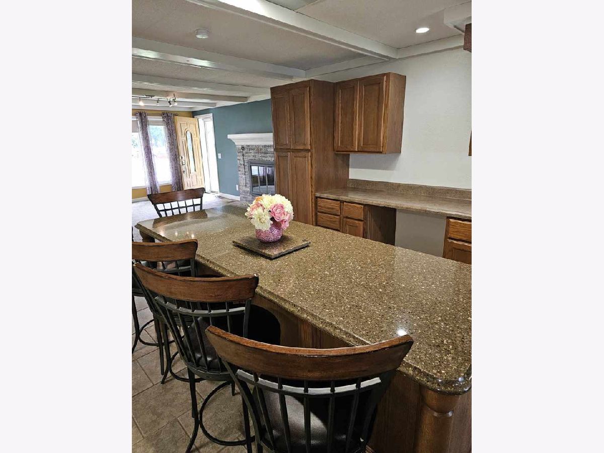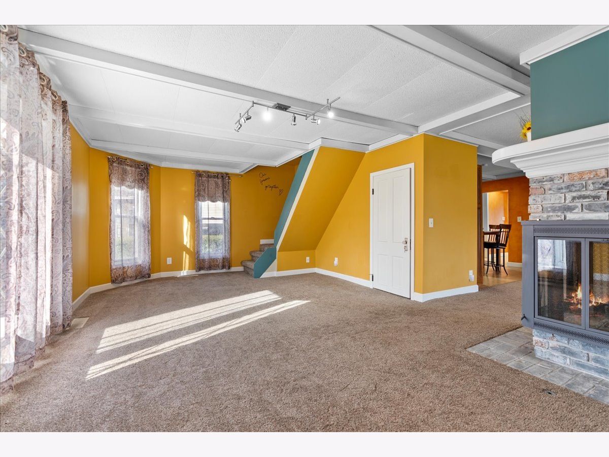 Do you miss small town living? This beautifully updated home is just minutes to Clinton, Bloomington, Lincoln, Caterpillar, ADM and Rivian. Pride of ownership shows from top to bottom! The wrap around porch gives you 2 front entrances and once inside, you'll be welcomed by a custom 3-sided wood burning fireplace and gorgeous mantle. The formal dining room is open to the large eat-in kitchen with plenty of cabinetry, an extra long quartz island, updated slate appliances and 2 pantries. The counter space and numerous cabinets in this freshly painted kitchen makes it fit for a culinary chef! The main floor bedroom is a flex room which can also be used as a sunny office space, playroom, craft nook, or hobby area. It boasts a large closet with organizers galore! The main floor updated full bath offers a large soaking tub/shower combo, newer modern floating vanity and sink, beautiful mosaic tile backsplash and a heat lamp to keep you toasty warm on those cold winter days. A stunning, updated and spacious main floor laundry room offers tons of beautiful updated cabinetry and plenty of counter space for folding and ironing clothes as well as a utility sink. The entrance from the attached, over-sized one car garage leads to a 2nd updated family room adjacent to the laundry room (TV and mount stay!) There are 3 large bedrooms upstairs with huge closets and a full bath with a walk-in shower. Enjoy warm summer evenings on the private back patio surrounded by beautiful flowers and perennials. There is also a separate, oversized 2 car garage which has a furnace, workbench and fully functioning 1/2 bath. The updated 200 amp service includes newer wiring. Rubber Porch Roof (21), newer vinyl replacement window, newer fiberglass front doors with glass panel, main floor shower (2024). Just 5 miles from Clinton, IL! Welcome home!