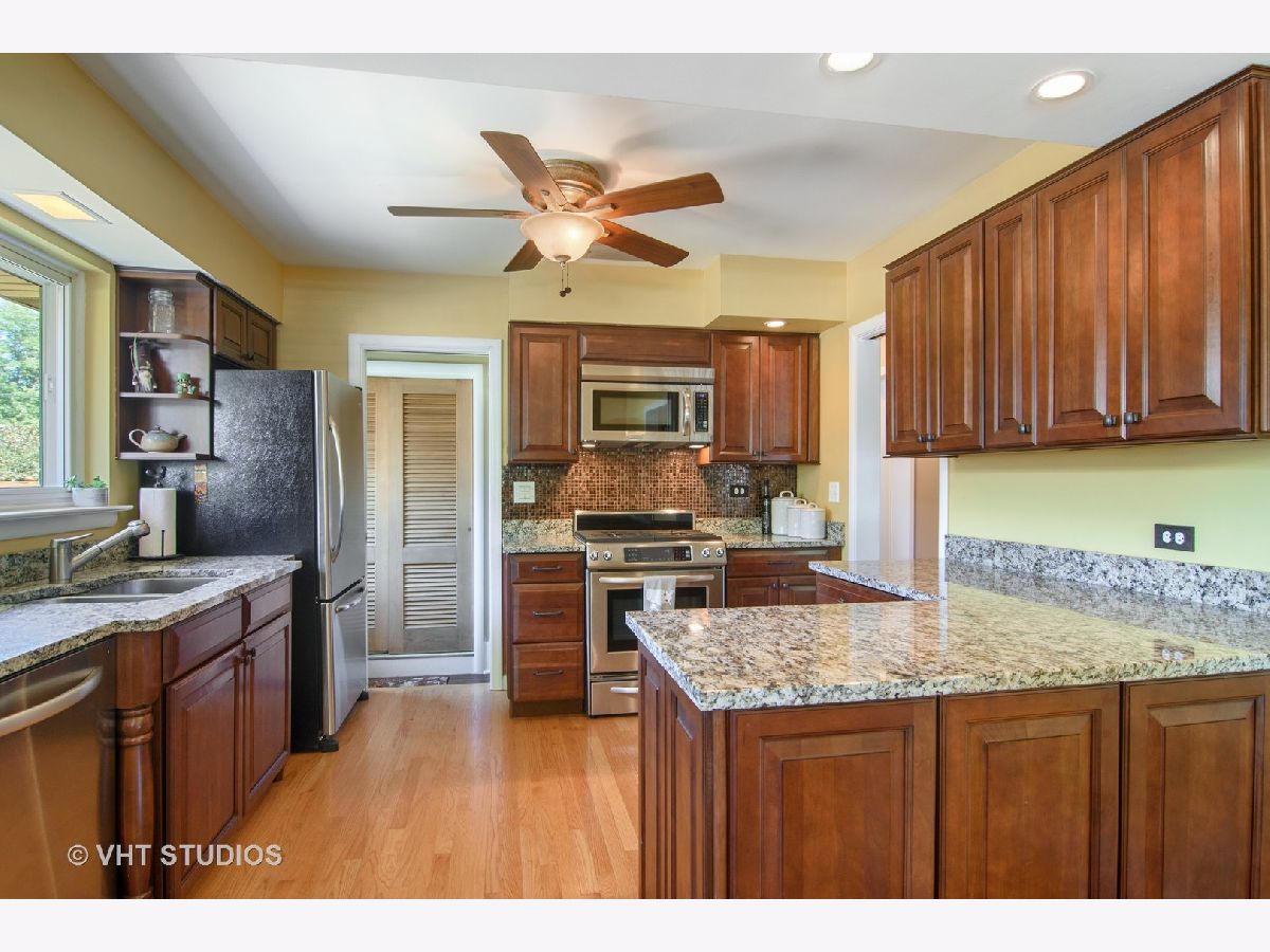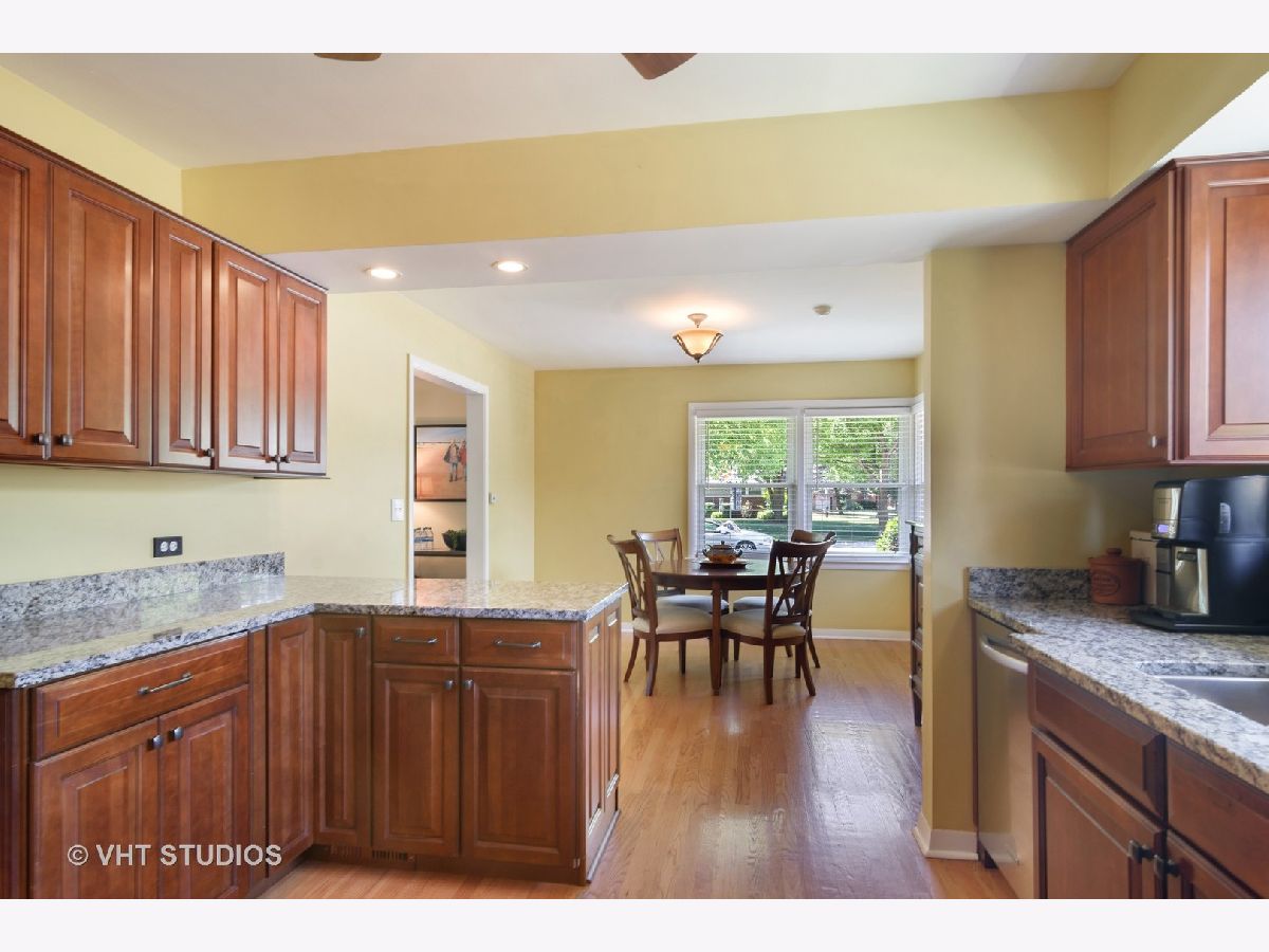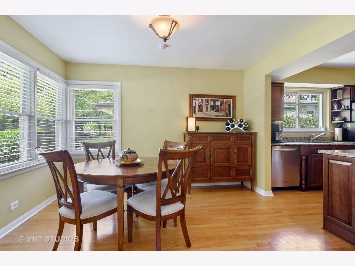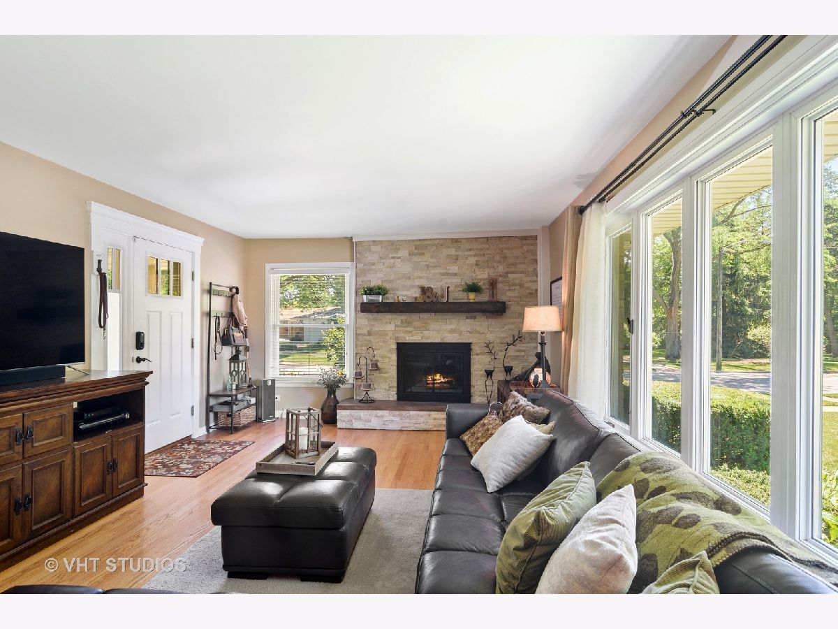 Picture perfect ranch with a fabulous Lions Park location!! So many updates to this solid all brick home with gorgeous curb appeal. Bright & airy living room has chic refaced fireplace and windows galore. Cheerful separate dining room. Kitchen remodeled in 2008 has cherry cabinets, granite counter tops & all stainless steel appliances. Gleaming hardwood floors throughout entire main level. Four bedrooms & two beautifully renovated full baths "up". Main bedroom has lovely built-ins and en suite bath. Unique & super charming 3 season room. Full finished basement has large recreation room with built-in, a fully outfitted office, an extra special laundry/workout room and a TON of storage. Enjoy private fenced back yard with large concrete stamped patio complete with canopy! Lovely plantings too!! Roof (2015); furnace/AC/humidifier (2011); electrical box (2008); stamped patio & privacy fence (2008). Just a short jaunt to excellent schools, restaurants and Mariano's!