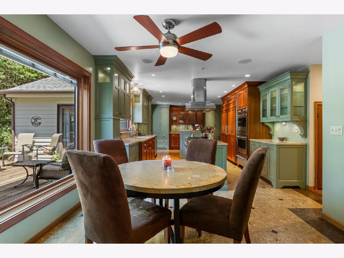 If you're looking for the privacy of country living with the convenience of city amenities, this beautifully updated home in the desirable Woodfield West subdivision of Mahomet, IL is a must-see! Set on a beautifully landscaped lot, this home welcomes you with a well-crafted wraparound front porch featuring rich IPE and stone accents. Stone walkways wind through the front yard, adding charm and curb appeal to the lush, irrigated landscaping. In the back, enjoy a spacious IPE deck and stone patio-ideal for outdoor gatherings or quiet mornings. Inside, the home is full of character and thoughtful design. Brick floors in the entryway and warm cork flooring throughout create a rich, inviting feel. The formal dining room at the front of the home includes a custom wet bar and flows seamlessly into the kitchen, where green and natural wood cabinetry, high-end appliances, quartz countertops, a speaker system, and breakfast bar seating combine functionality with style. Just off the kitchen, the family room features vaulted ceilings and a beautiful stone fireplace-perfect for cozy evenings. For a quiet escape, head to the library/flex room, which boasts its own woodburning fireplace and offers the perfect setting for reading, working, or relaxing. With four spacious bedrooms, each with large closets, and a primary suite featuring a functional en-suite bath adorned with stunning Italian blue tile, there's room for everyone to spread out. A generously sized recreation room off the back of the home connects to the oversized 2-car garage for added flexibility and space. Located in one of Mahomet's rare neighborhoods offering a pool, tennis courts, and community commons, this home blends timeless craftsmanship, modern updates, and unbeatable amenities. Schedule your private showing today and experience everything this exceptional home has to offer!