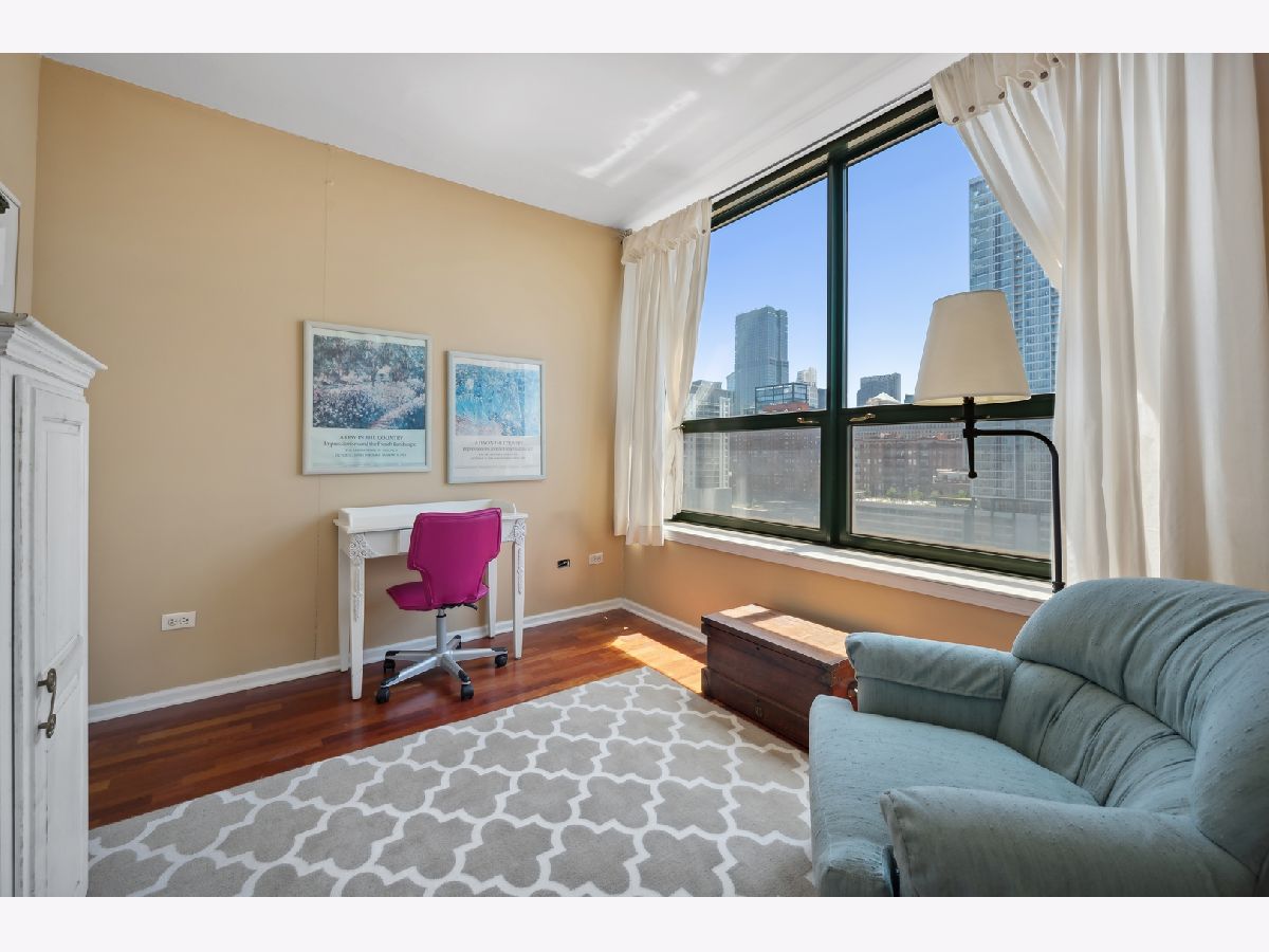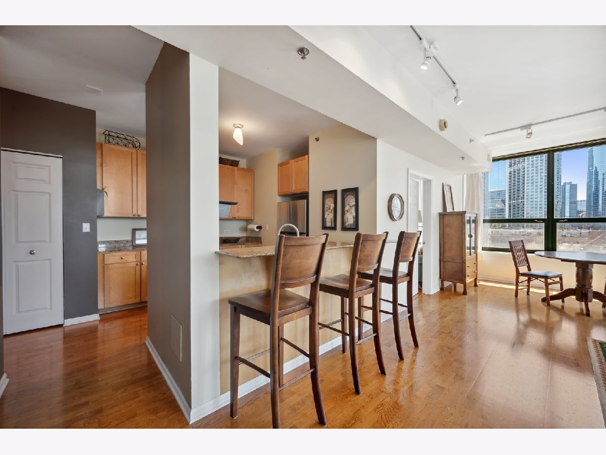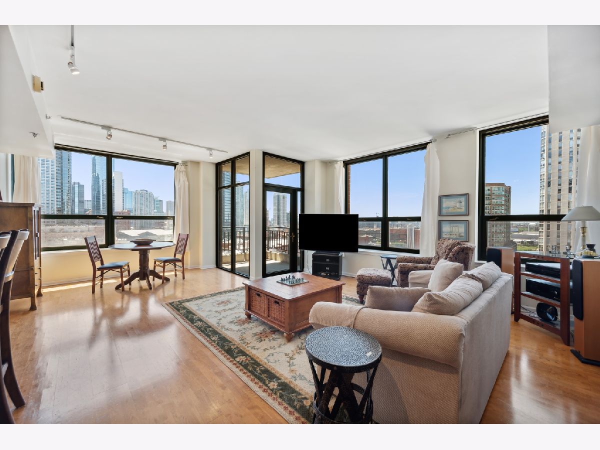 Enjoy the River North lifestyle at Gallery 400! Stunning 2 bed/2 bath corner unit with tons of natural light and jaw-dropping southwest Chicago skyline views! This unit boasts a large open floor plan perfect for entertaining featuring a living/dining combo and updated kitchen with new 2022 stainless steel appliances, granite countertops, breakfast bar. Freshly painted and new hardwood floors in the living/dining area. Beautiful neutral wood flooring flows throughout the living areas. Private balcony, in-unit washer/dryer , and brand new 2021 heat and AC unit. Storage locker #33. (deeded parking space #409) is only $27,000 additional (most paid $40K). The primary bedroom is a dream with a massive walk-in closet and en suite bathroom complete with a dual vanity and spa-like shower/tub combo. Barely lived in the past 14 years because owner used it as an in town apartment. Taxes do not include a homeowers exemption. Building amenities offer 24 hour door staff as well as an exercise room, very well managed building. The perfect prime location-walking distance to tons of dining and shopping, Starbucks, East Bank Club, Ohio Place Dog Park, Chicago's Riverwalk, Montgomery Ward Park, CTA, and much more! NO rental cap.