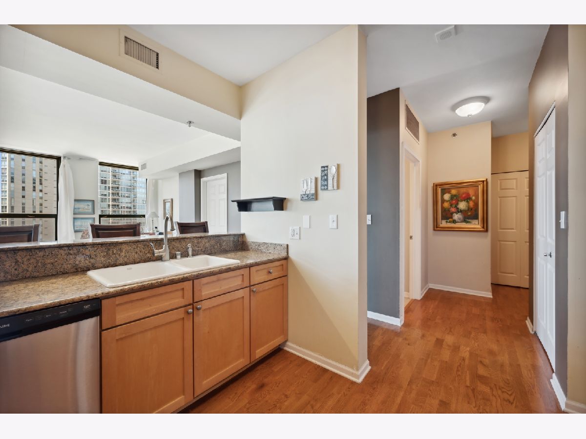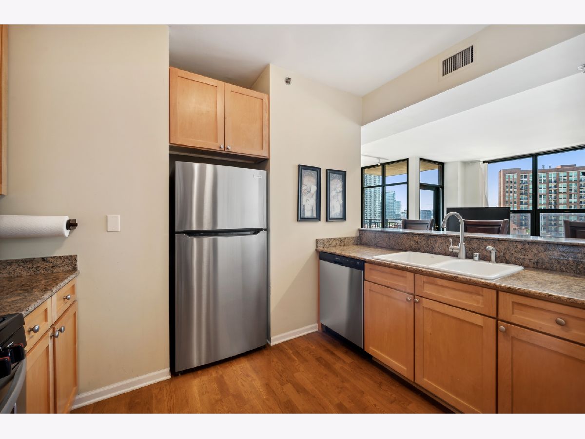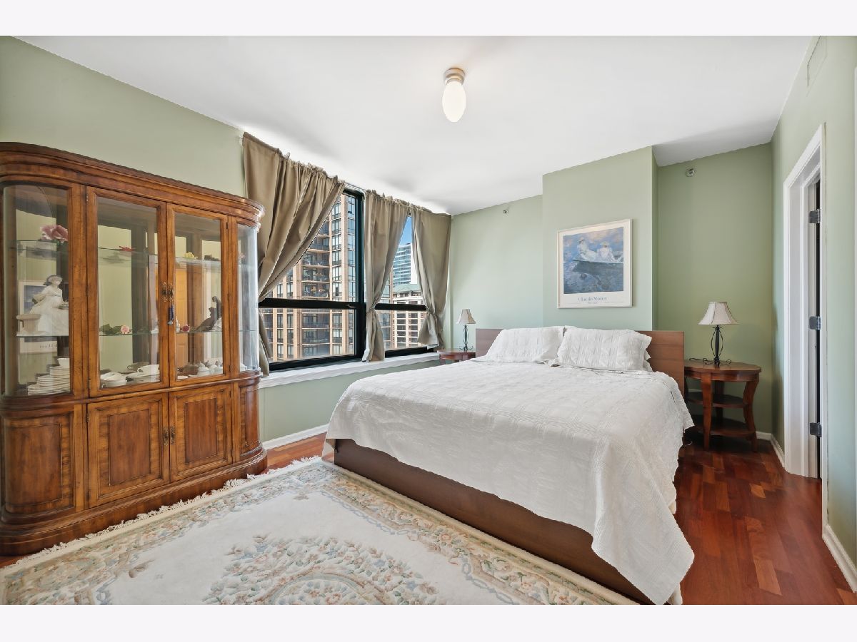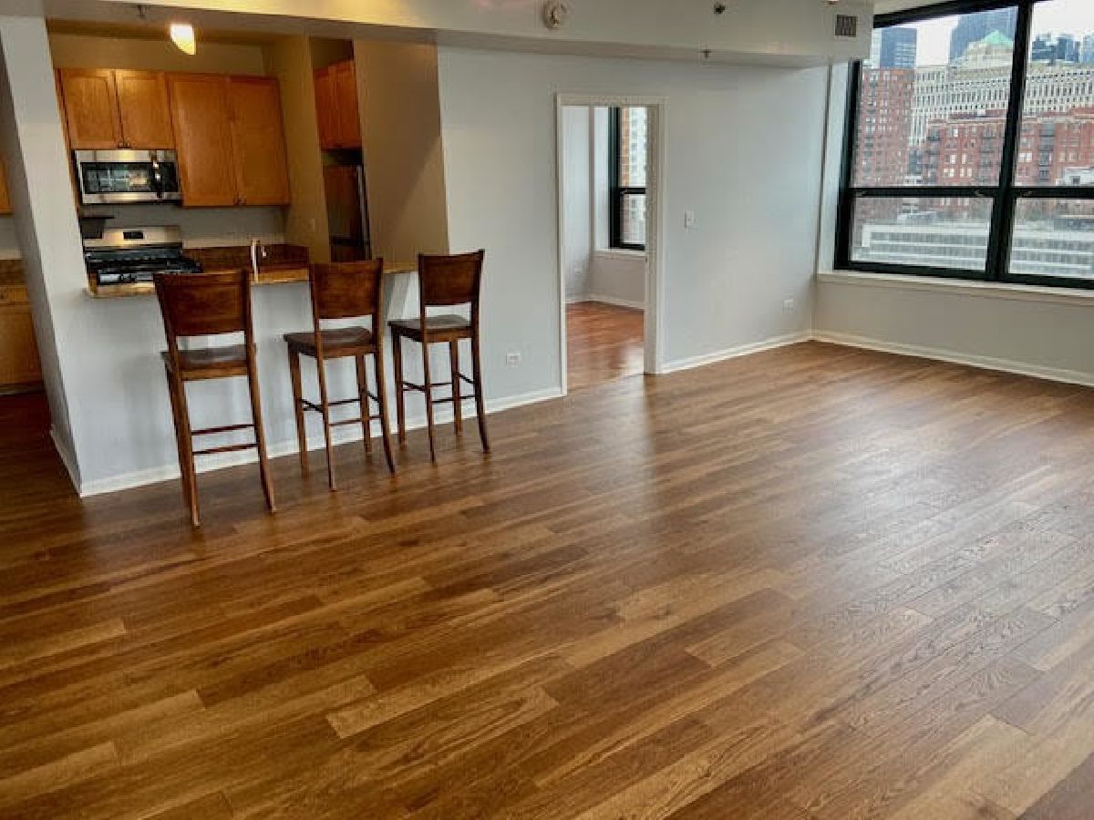 Enjoy the River North lifestyle at Gallery 400! Stunning 2 bed/2 bath corner unit with tons of natural light and jaw-dropping southwest Chicago skyline views! This unit boasts a large open floor plan perfect for entertaining featuring a living/dining combo and updated kitchen with new 2022 stainless steel appliances, granite countertops, breakfast bar. Freshly painted and new hardwood floors in the living/dining area. Beautiful neutral wood flooring flows throughout the living areas. Private balcony, in-unit washer/dryer , and brand new 2021 heat and AC unit. Storage locker #33. (deeded parking space #409) is only $27,000 additional (most paid $40K). The primary bedroom is a dream with a massive walk-in closet and en suite bathroom complete with a dual vanity and spa-like shower/tub combo. Barely lived in the past 14 years because owner used it as an in town apartment. Taxes do not include a homeowers exemption. Building amenities offer 24 hour door staff as well as an exercise room, very well managed building. The perfect prime location-walking distance to tons of dining and shopping, Starbucks, East Bank Club, Ohio Place Dog Park, Chicago's Riverwalk, Montgomery Ward Park, CTA, and much more! NO rental cap.