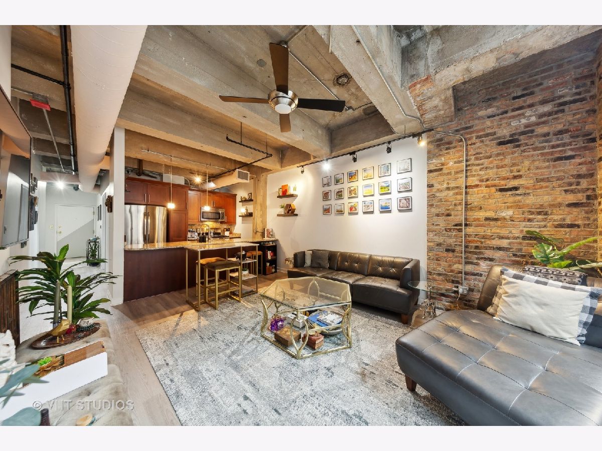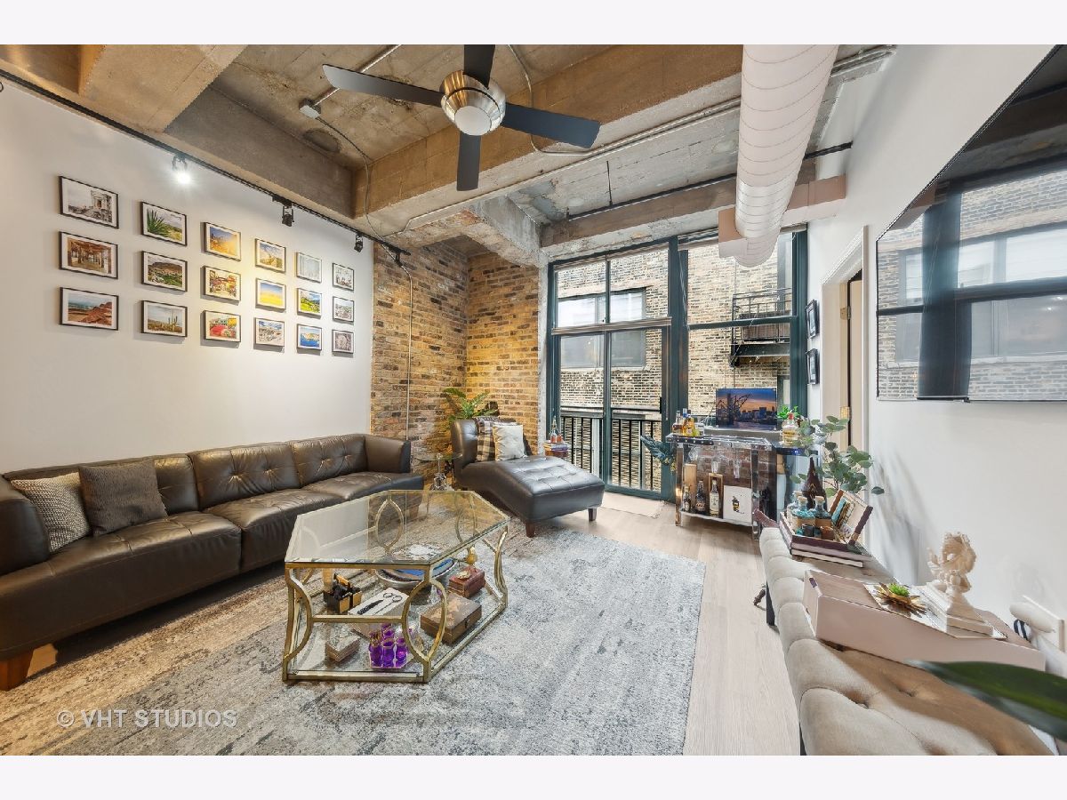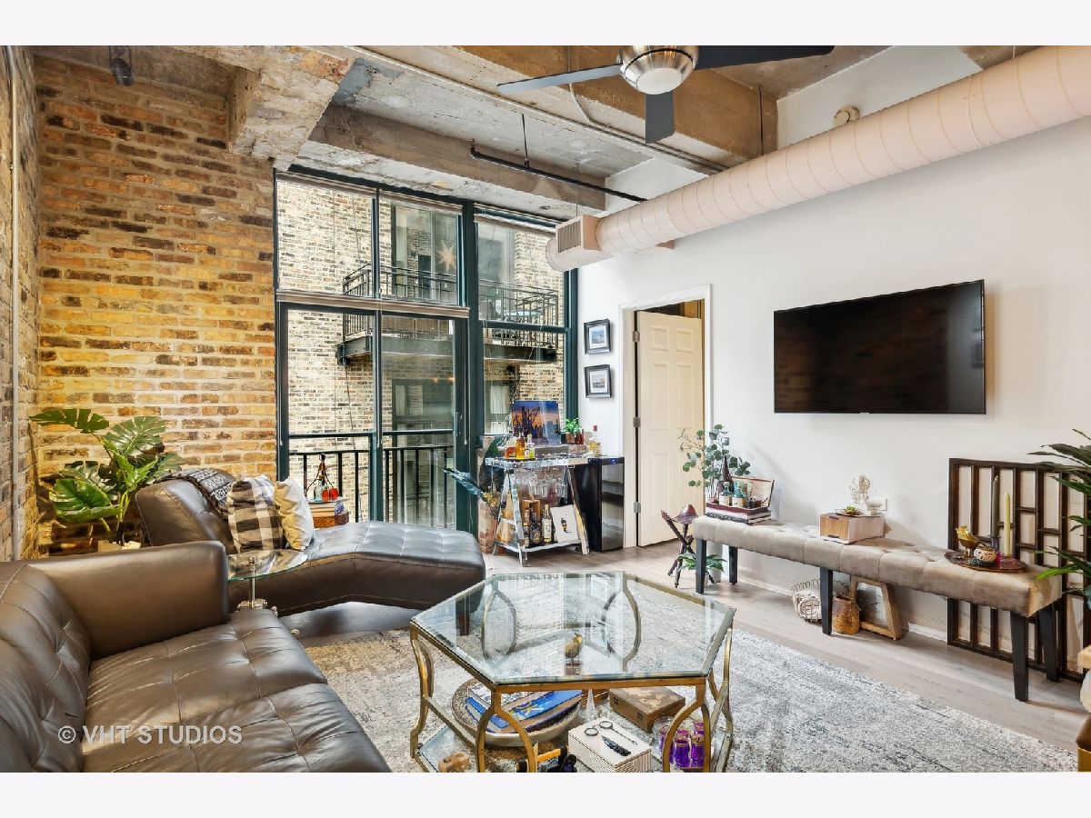 This exceptional 2-bedroom, 2-bathroom condo loft with split floorplan is located in the highly sought-after River North neighborhood. Upon entering you pass the 2nd bedroom and enter a spacious open plan living area with floor-to-ceiling windows. The brick accent walls and high beamed ceilings add to the loft's charm, creating a warm and inviting atmosphere. This well-equipped kitchen features Cherry cabinets and stunning granite countertops that glisten under the light. The kitchen also boasts all stainless steel appliances, including a convenient wine fridge, and a breakfast bar. The primary suite offers ample space and plenty of natural light, while the ensuite bathroom is well-appointed and features a whirlpool shower/tub combo and double sink vanity. Enjoy plenty of storage space with the walk-in closet and California Closet organization. Large 2nd bedroom. This condo loft also includes an in-unit washer and dryer, a Juliette balcony providing a perfect spot watch the sunrise or sunset and 1-garage space for 25k.