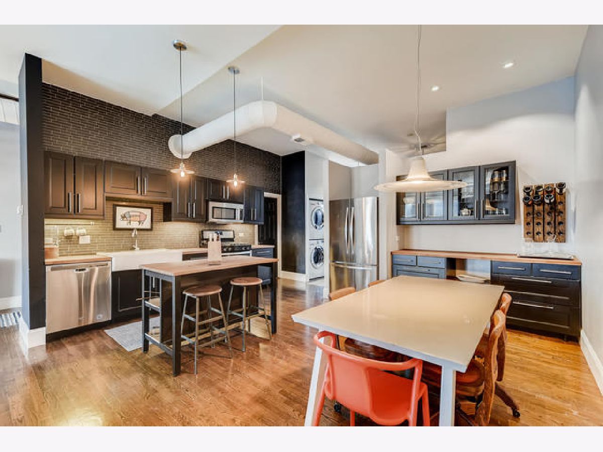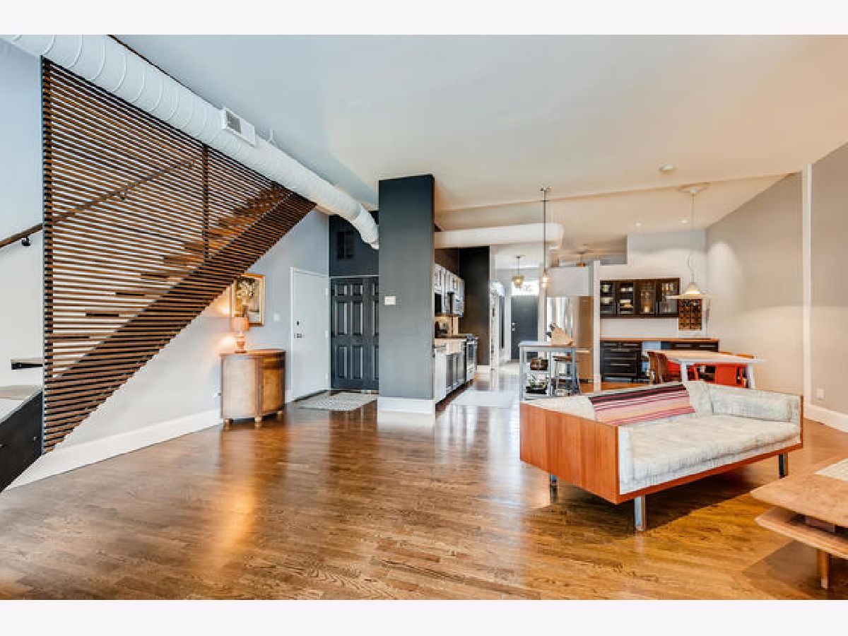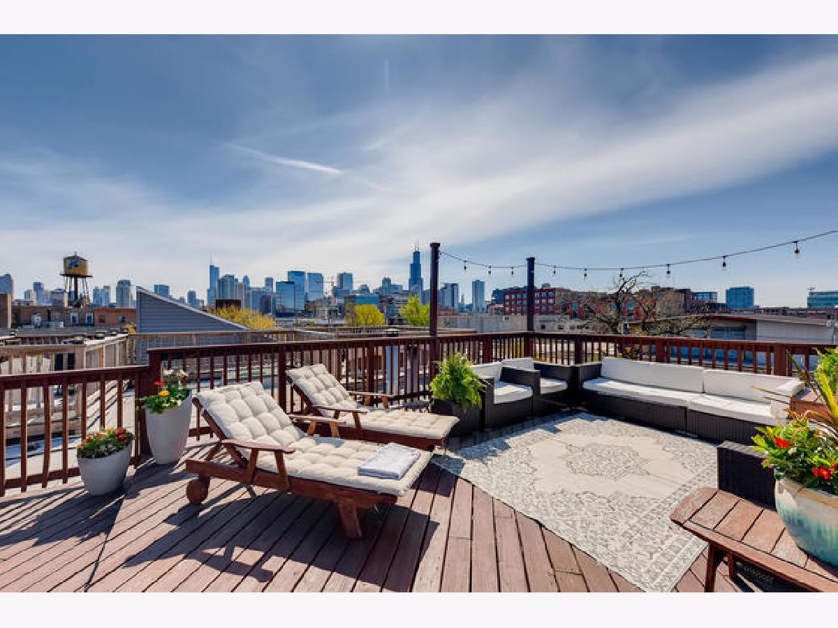 Huge loft unit steps away from Fulton Market and the West Loop. 1350 square feet with soaring ceilings and in an excellent building. Entrance from living room to a large, private 600 sq ft roof deck with new decking and unbelievable skyline views. Hardwood floors throughout the unit. Kitchen and bathroom renovation thoughtfully designed from 2015. Additional appliances upgraded in 2019. New paint throughout. Multiple living spaces with fireplace to enjoy. Washer and dryer in the unit. Gated parking with easy access to the unit. Close to restaurants, shopping and public transit.