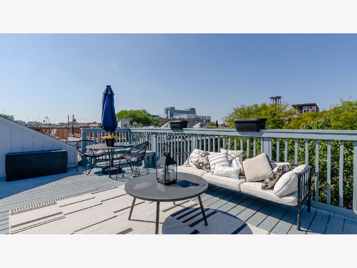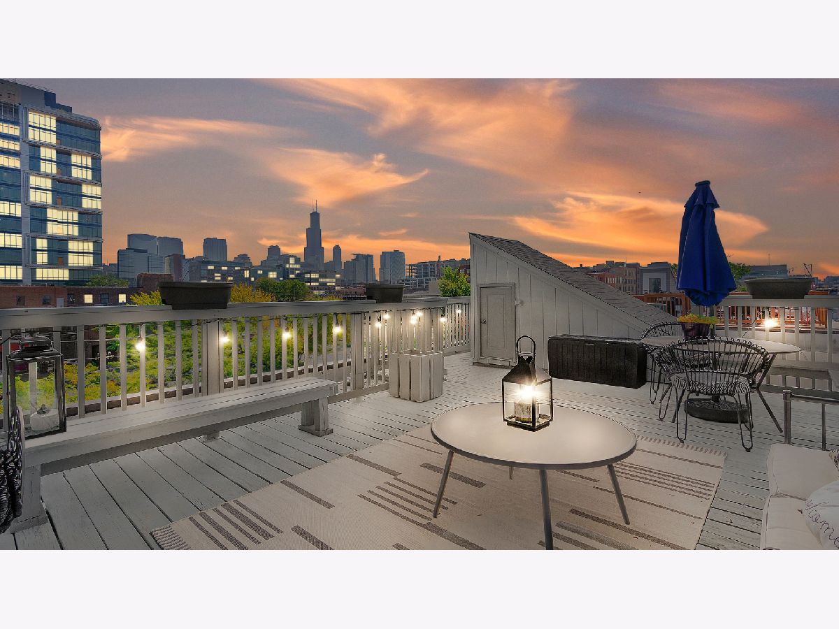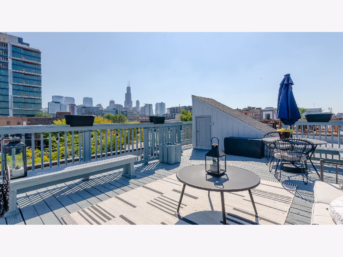IMMACULATE and EXTREMELY RARE 1 bed / 2 full bath condo with MASSIVE 30 x 19 private rooftop deck featuring breathtaking panoramic city views in the heart of the BOOMING West Loop! Situated in an intimate gated complex steps from the Fulton Market District and Randolph Street, this condo combines the style and grace of true West Loop living with a live/work feel that one can only dream of! The expansive floor plan features an ENORMOUS 23 x 20 living room with lavish marble flooring throughout, custom design finishes, 10.5 ft ceilings with East and West exposures, plentiful windows and TONS of natural sunlight. The gorgeous chef's kitchen boasts a custom European design with Italian wood cabinetry and Miele appliances. The spacious, fully enclosed 20 x 12 bedroom features a large custom walk-in closet and en-suite bathroom with luxurious marble tile from floor to ceiling, dual vanity sinks, walk-in shower and deep soaking tub - an urban spa oasis right at home! This end unit also features your own private, secured entrance + stairway off of the street as well as an interior staircase to access your private rooftop deck from right inside the unit! The rooftop deck can be expanded even further if desired! The 2nd full bathroom is all marble with a walk-in shower. Adjacent to the kitchen is an added bonus office nook perfect for a work-from-home space. With no one living above or below you, this unit is an entertainer's paradise while also ensuring the peace, quiet, and privacy that every homeowner desires. Additional highlights include fresh paint throughout, in-unit laundry, central heat + AC, recessed lighting throughout, plentiful closet/storage space and 1 assigned gated parking space included. Healthy Association that's pet friendly and investors welcome.