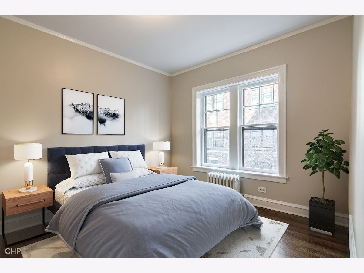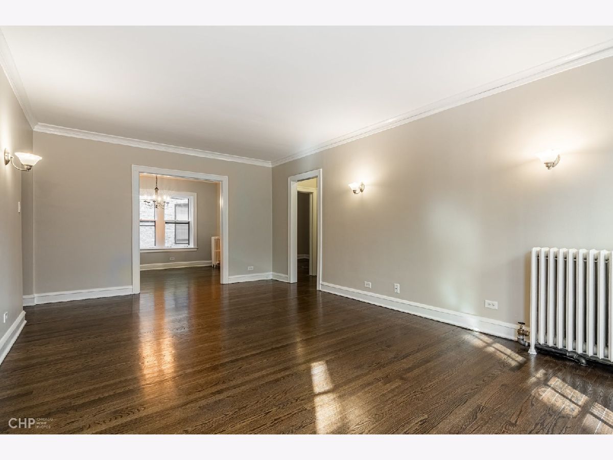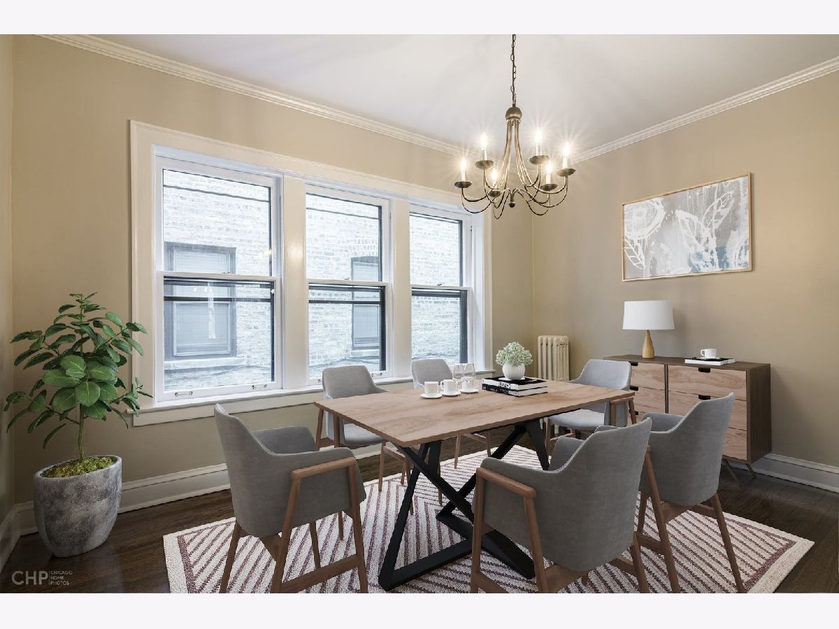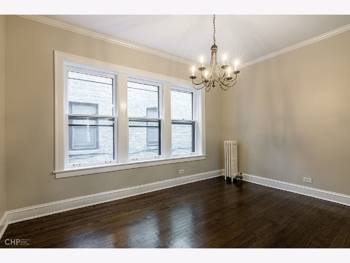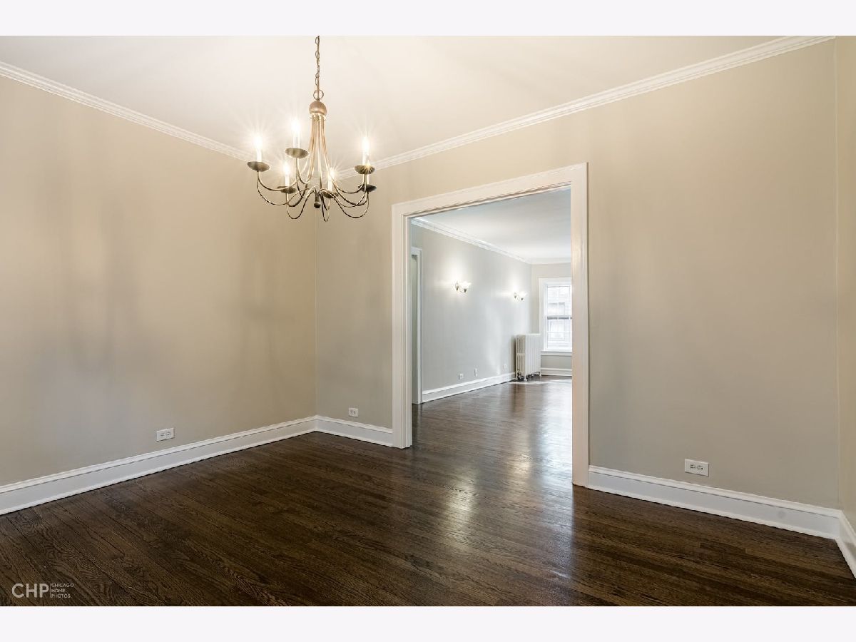 You are going to love this beautifully renovated, freshly painted condo with newly refinished hardwood floors, new kitchen and appliances and updated bathroom. Long gallery foyer leads to large living room with bay window. Formal dining room and 2 bedrooms result in a very spacious vintage condo in well managed St. Francis Court. Convenient to CTA train, grade school and park. This charming first floor unit is just a few steps to laundry room. Solid reserves with no specials on the horizon many building updates have been completed in the last 5 years including, roof, gutters and downspouts, boiler and gas piping, new plumbing risers to bathroom and kitchen. Common area pavers were replaced a few years ago creating a nice outdoor gathering space. A pleasure to show.