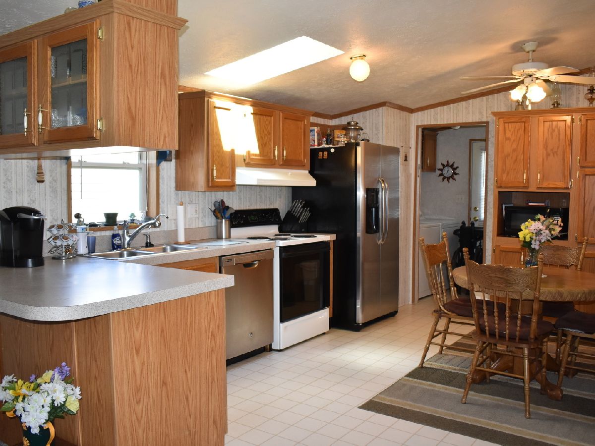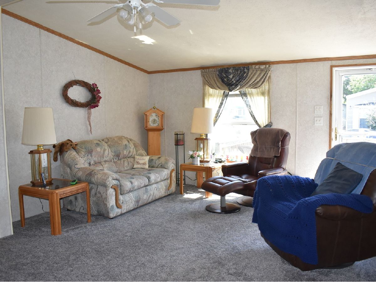 Large, double wide mobile home in great condition! Boasts skylights for lots of natural light! Newer carpet in the living room/main area. Furnace/AC & roof, refrigerator & dishwasher all newer in the last 6 years! Spacious floor plan, 3 bedrooms, 2 full baths. Eat-in kitchen, master bedroom has it's own private full bath. Front porch great for sitting outside AND side/back porch for even more outdoor space! Corner lot, well taken care of and very clean - nothing to do but move right in! 3 parking spots for this unit PLUS overflow parking at the front of the area too for guests! Upon successful closing, owner will reimburse new buyers the application fee!