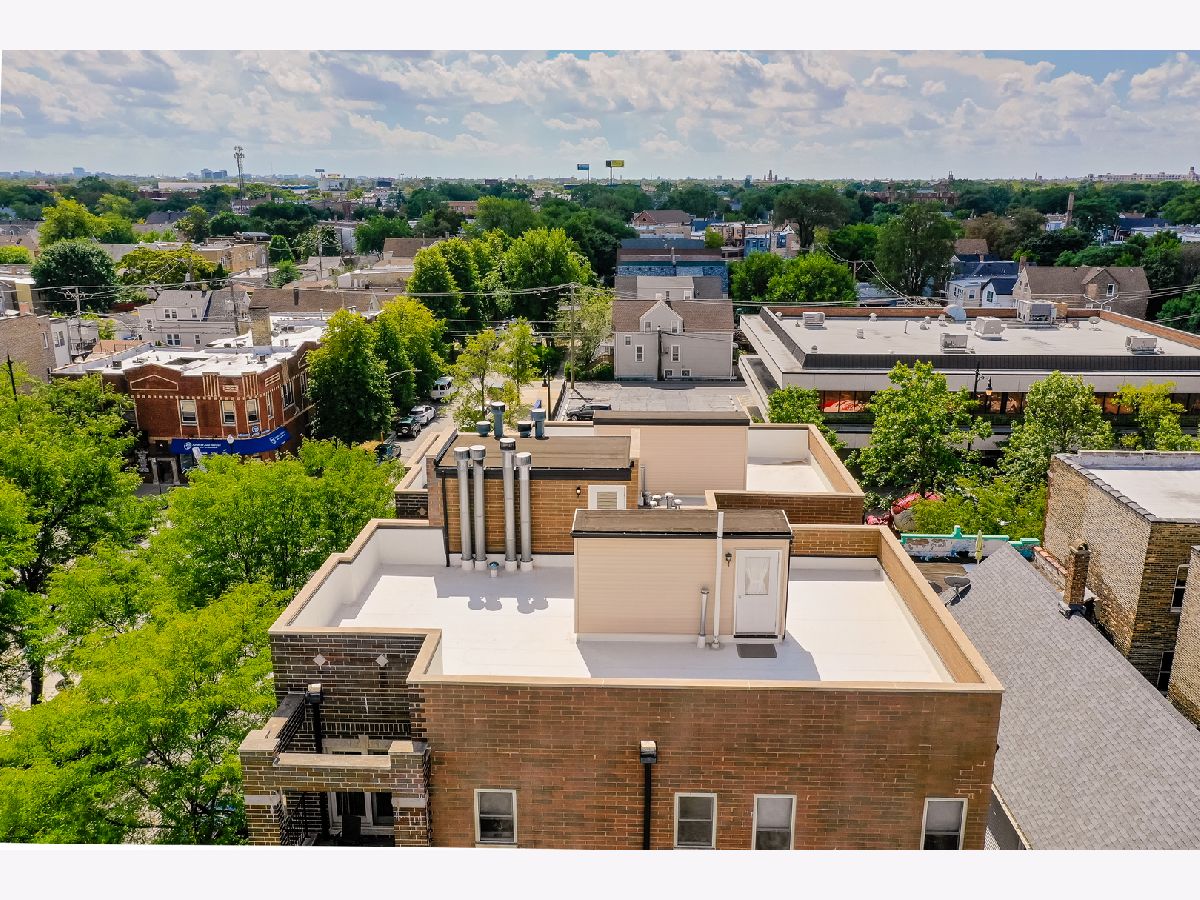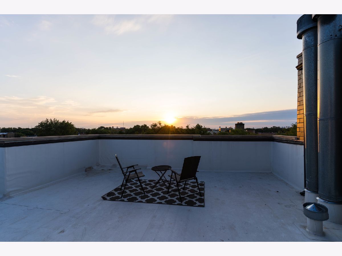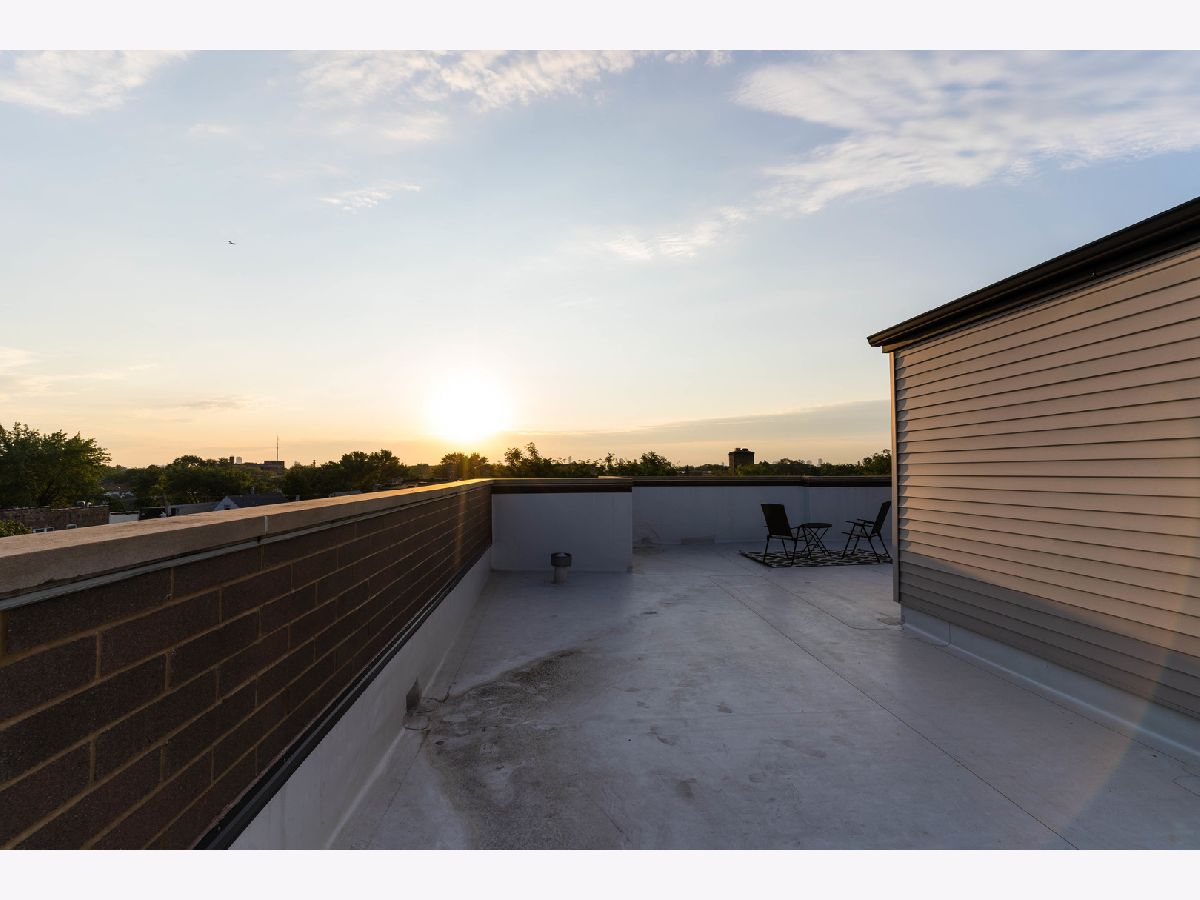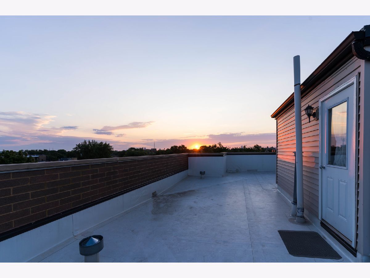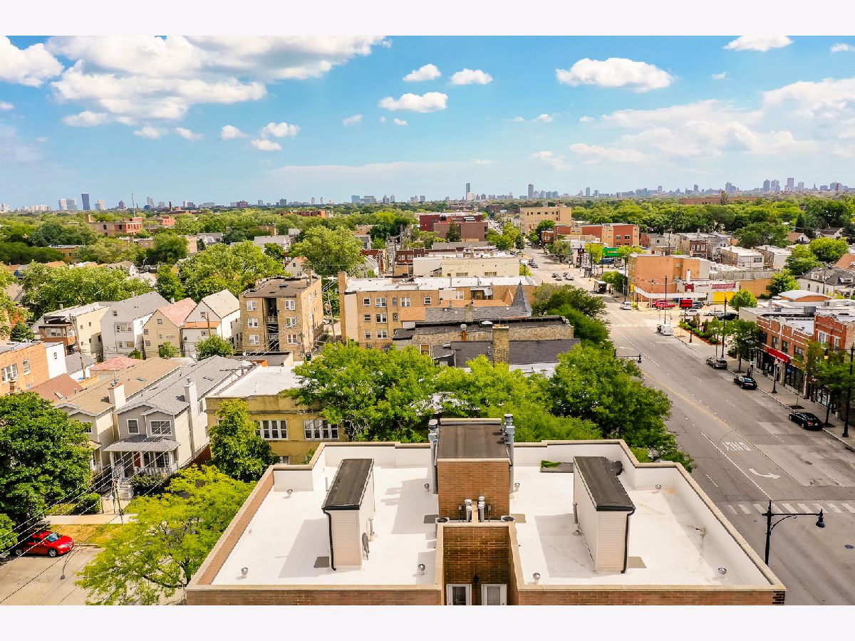 Stunning 2 Bed/2 Ba Penthouse condo in Irving Park Neighborhood- Incredible private rooftop space w/tons of open air & city views. Open floor plan w/10 ft ceilings; Living/Dining/Kitchen-Loads of natural light & private balcony overlooking residential neighborhood. Kitchen offers custom maple cabinetry/granite/& new SS appliances. Primary bedroom has custom closets, newly remodeled bathroom w/Jacuzzi tub & separate (opened up) shower w/glass doors & dbl vanity. 2nd bedroom-built in custom closet. Entire home freshly painted. Hardwood floors. Wood burning fireplace w/gas starter. In unit full size stackable washer/dryer, new water heater, new lighting-all LED. Lower level storage room & 2 car/tandem/assigned parking spaces included. Very well maintained building. Excellent transportation options; CTA stations (Addison & Irving Pk) and Irving Pk Metra walking distance, bus stop on corner and easy access to expressway and Horner Park. Exciting city living w/a skyline view - Great Location!