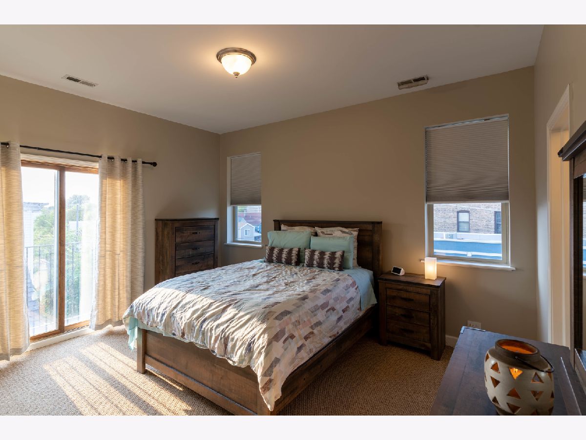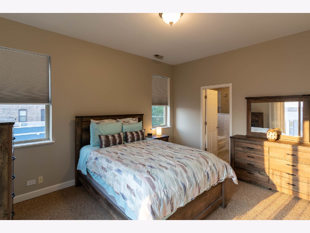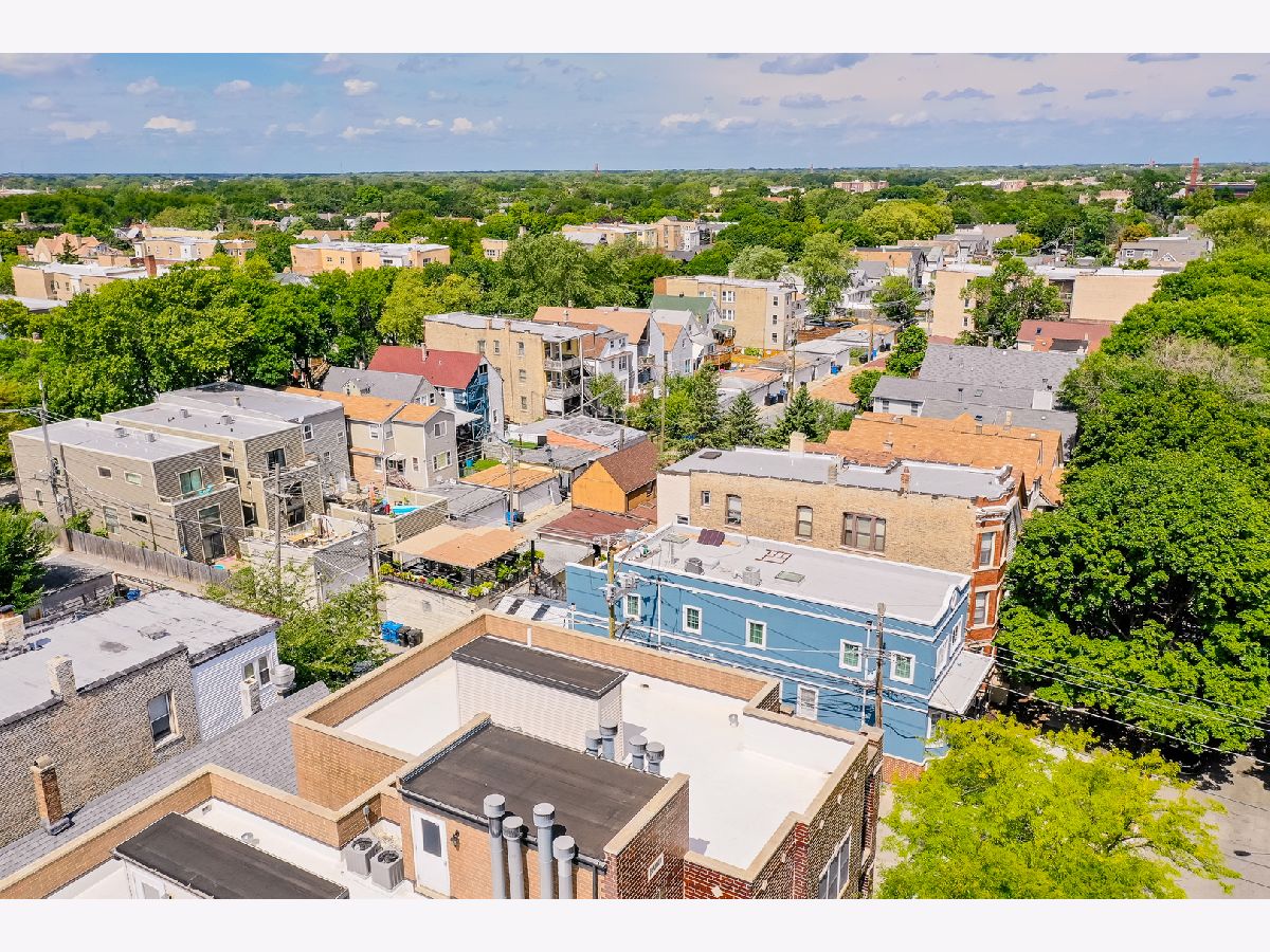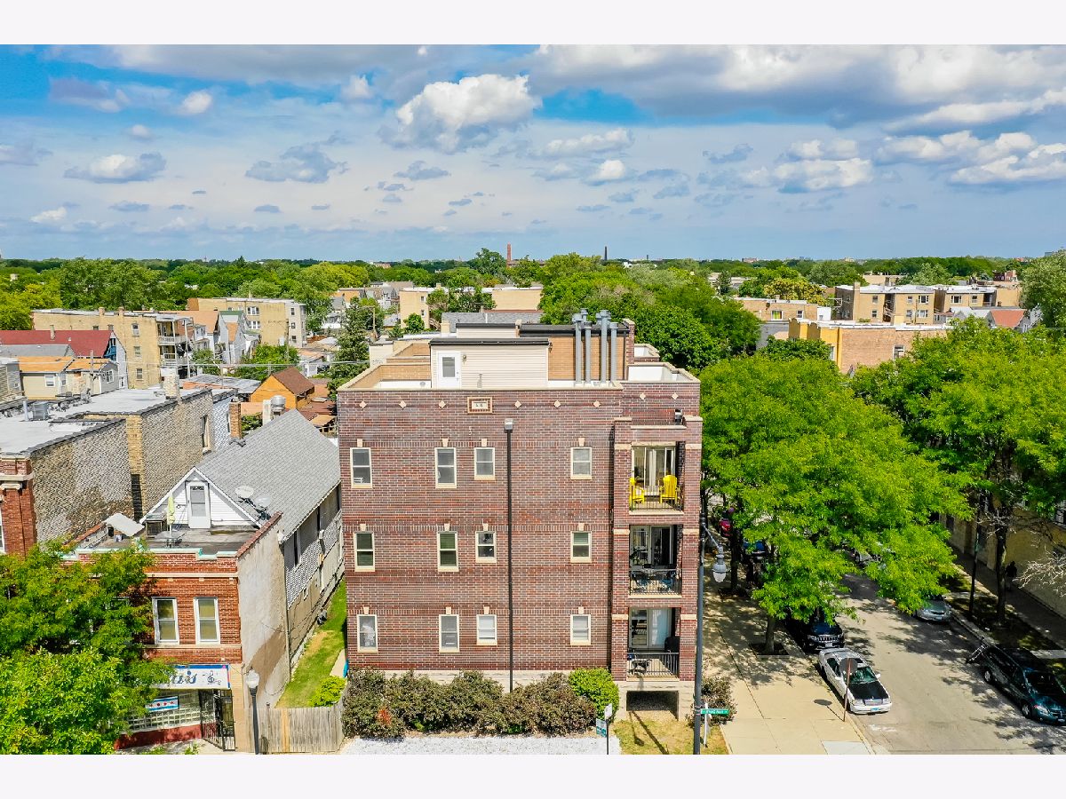 Stunning 2 Bed/2 Ba Penthouse condo in Irving Park Neighborhood- Incredible private rooftop space w/tons of open air & city views. Open floor plan w/10 ft ceilings; Living/Dining/Kitchen-Loads of natural light & private balcony overlooking residential neighborhood. Kitchen offers custom maple cabinetry/granite/& new SS appliances. Primary bedroom has custom closets, newly remodeled bathroom w/Jacuzzi tub & separate (opened up) shower w/glass doors & dbl vanity. 2nd bedroom-built in custom closet. Entire home freshly painted. Hardwood floors. Wood burning fireplace w/gas starter. In unit full size stackable washer/dryer, new water heater, new lighting-all LED. Lower level storage room & 2 car/tandem/assigned parking spaces included. Very well maintained building. Excellent transportation options; CTA stations (Addison & Irving Pk) and Irving Pk Metra walking distance, bus stop on corner and easy access to expressway and Horner Park. Exciting city living w/a skyline view - Great Location!