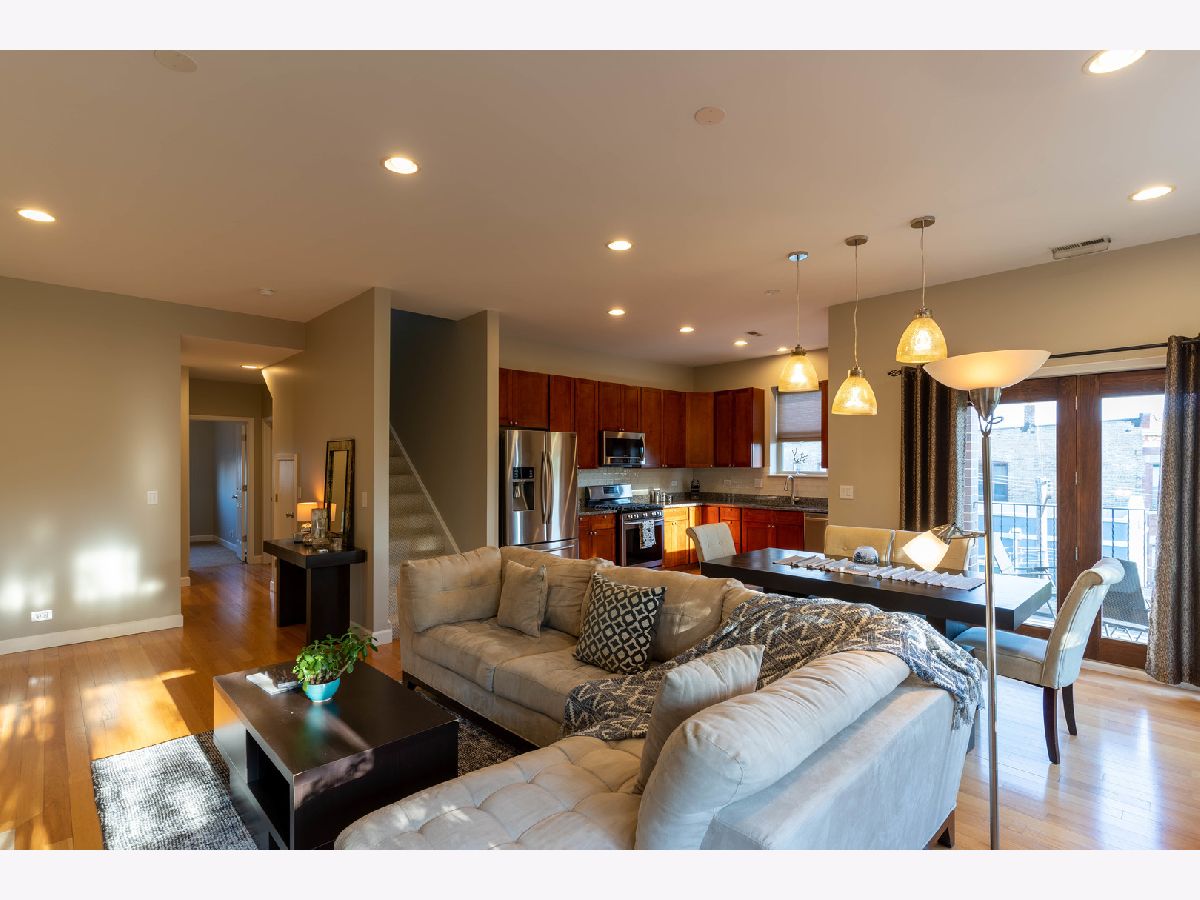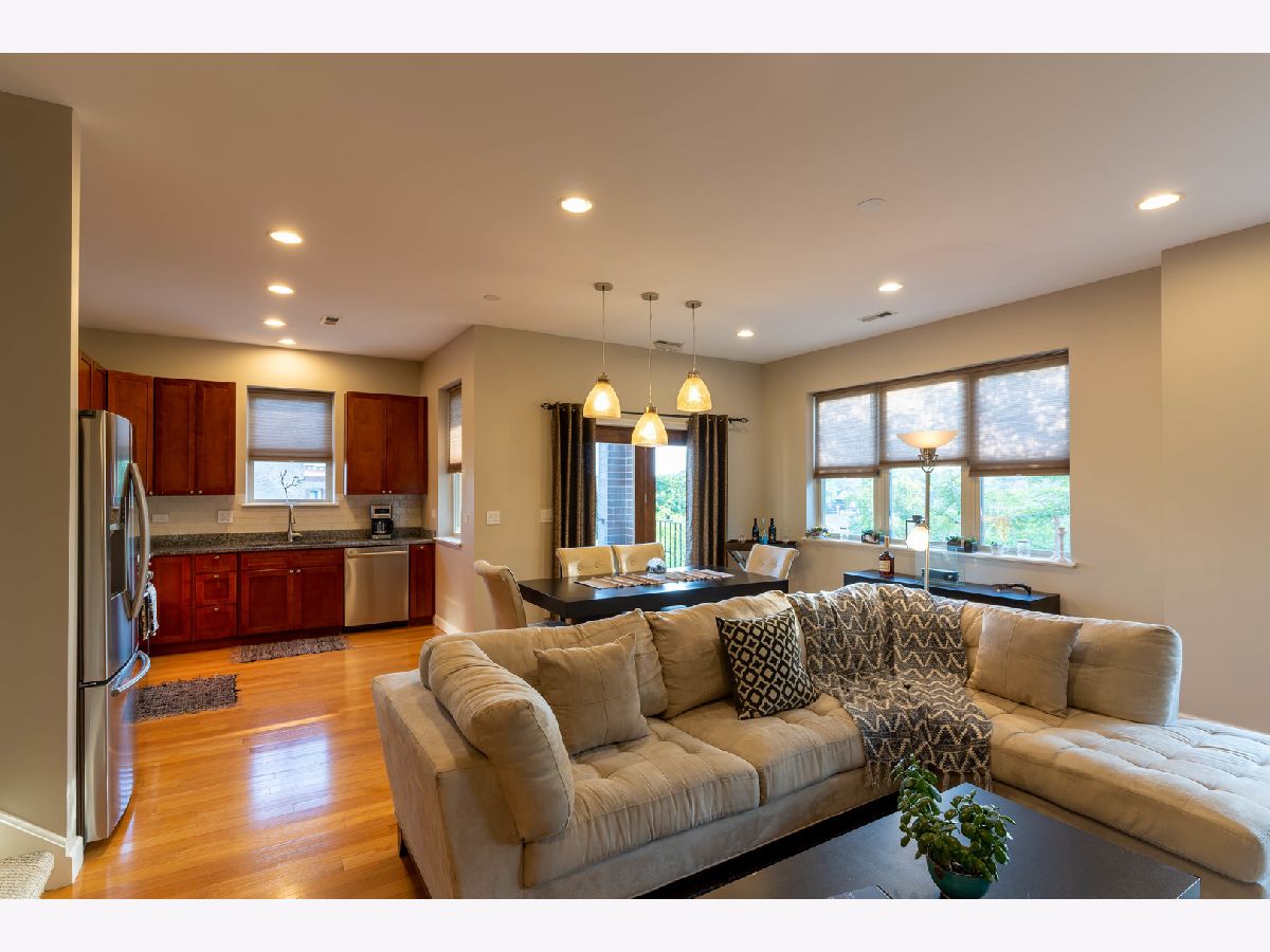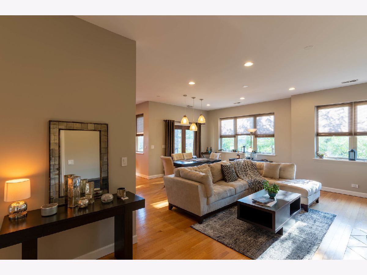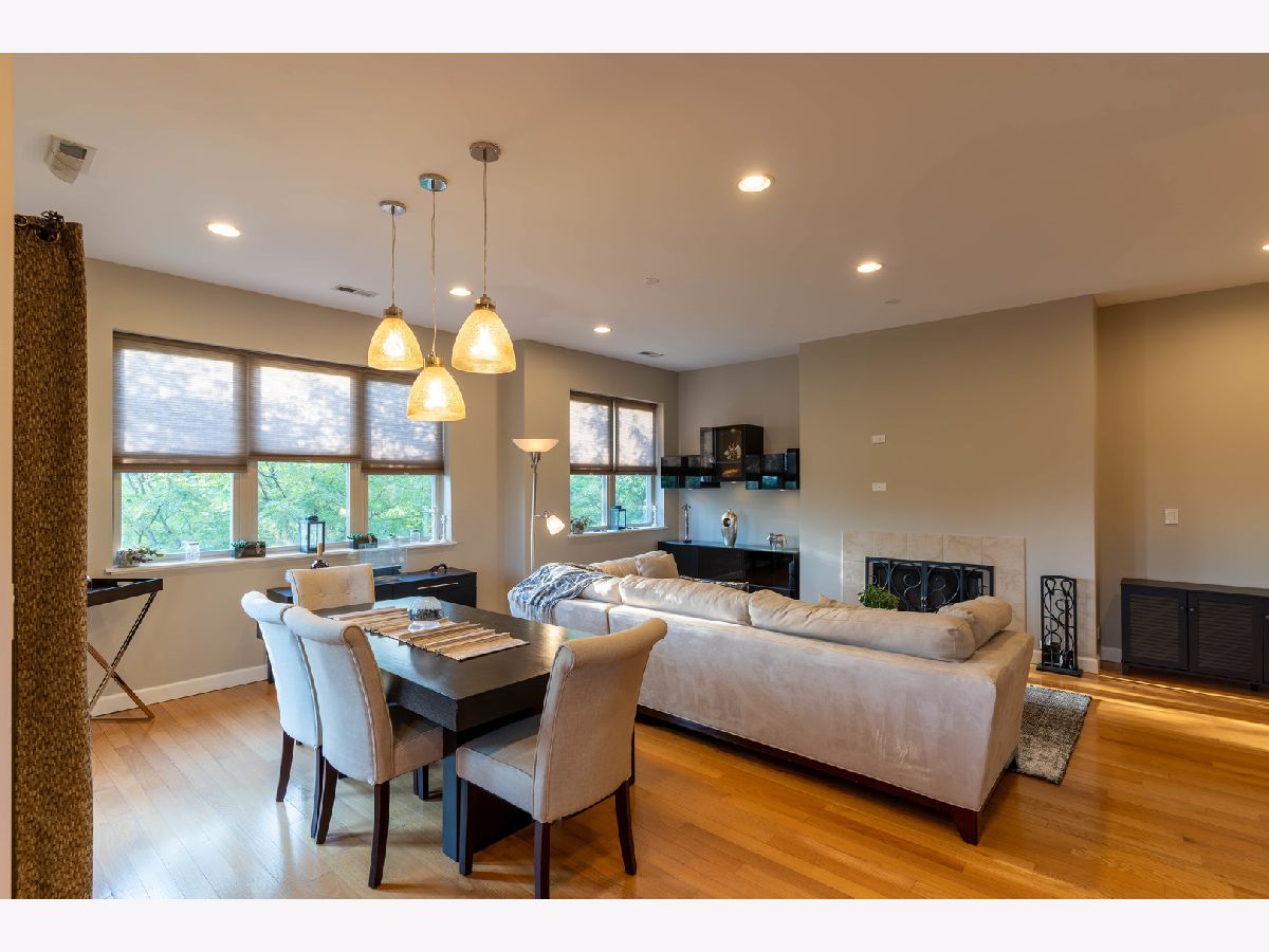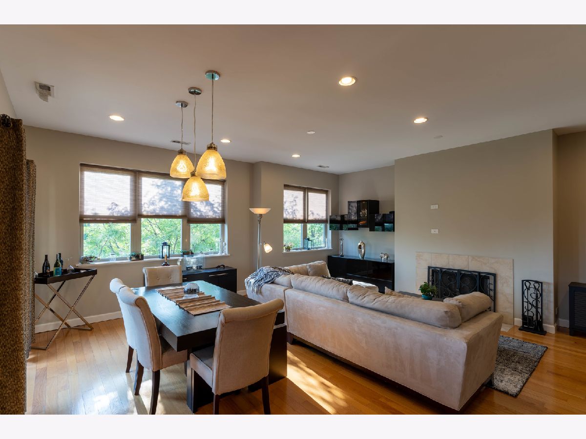 Stunning 2 Bed/2 Ba Penthouse condo in Irving Park Neighborhood- Incredible private rooftop space w/tons of open air & city views. Open floor plan w/10 ft ceilings; Living/Dining/Kitchen-Loads of natural light & private balcony overlooking residential neighborhood. Kitchen offers custom maple cabinetry/granite/& new SS appliances. Primary bedroom has custom closets, newly remodeled bathroom w/Jacuzzi tub & separate (opened up) shower w/glass doors & dbl vanity. 2nd bedroom-built in custom closet. Entire home freshly painted. Hardwood floors. Wood burning fireplace w/gas starter. In unit full size stackable washer/dryer, new water heater, new lighting-all LED. Lower level storage room & 2 car/tandem/assigned parking spaces included. Very well maintained building. Excellent transportation options; CTA stations (Addison & Irving Pk) and Irving Pk Metra walking distance, bus stop on corner and easy access to expressway and Horner Park. Exciting city living w/a skyline view - Great Location!