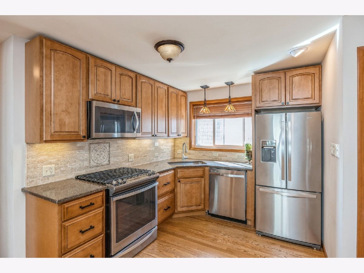 Great curb appeal as you pull up to this wonderfully cared for brick ranch. As you walk into the living room, you will appreciate a floorplan that is flooded with natural light and has hardwood floors throughout. Kitchen with quartz countertops & stainless steel appliances opens up to spacious dining room with lots of cabinet space. Two main level bedrooms share a nicely updated full bath. Full finished basement with additional living/dining area is perfect for entertaining - especially with dry bar that provides ample storage. Fully fenced in deep backyard and 2.5 car garage round out the practicality of this home. AC 2023, Furnace 2018, Roof 2018, newer replacement vinyl windows. Awesome location is walking distance to train station and so many shops, restaurants & bars.