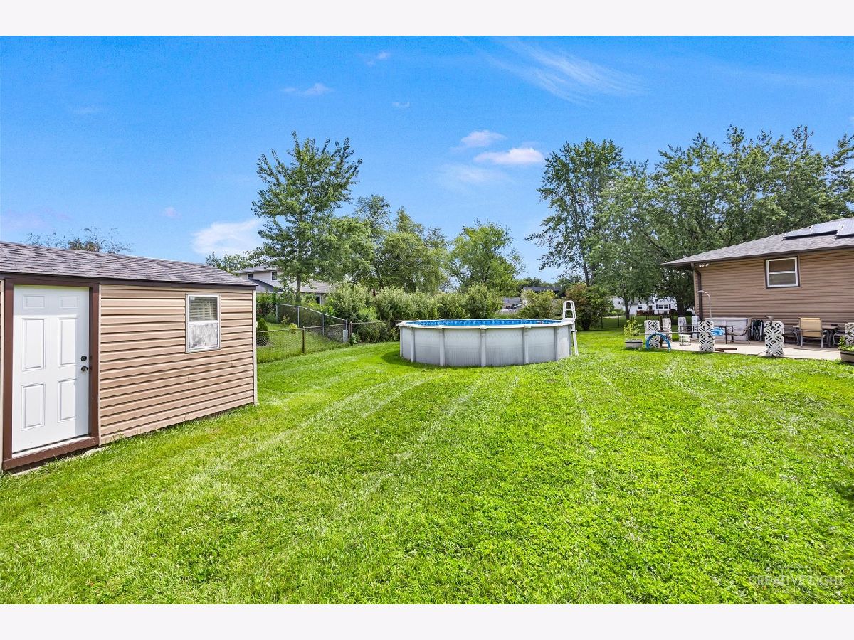 Hurry! Homes in this neighborhood do not become available very often! Nestled on a quiet cul-de-sac, on an oversized fully fenced lot! The entire interior just freshly painted! New luxury vinyl flooring throughout! Partial brick front! Covered front porch! Spacious foyer area with sliding glass door leads to the large patio, fenced yard with 21' pool with new liner and shed! Large living room with plenty of natural light flows into a separate dining area great for entertaining! Very functional eat-in kitchen with newer sink, countertops and plenty of cabinets! Spacious master bedroom with huge walk-in closet (safe in closet stays) and private bath with walk-in shower! Gracious size secondary bedrooms! Huge finished lower level with family room with cozy brick gas log fireplace, side walk-in closet great for pantry, full bathroom, spacious private 4th bedroom and storage/utility room with workbench! New oversized driveway '23! Roof '22! Furnace and dryer '24! Exterior and interior doors replaced! Solar panels at approx $80/month, 13 year lease but electric bills have been $0 giving you tons of savings! Close to schools and shopping! Excuse our clutter/boxes as seller is packing!