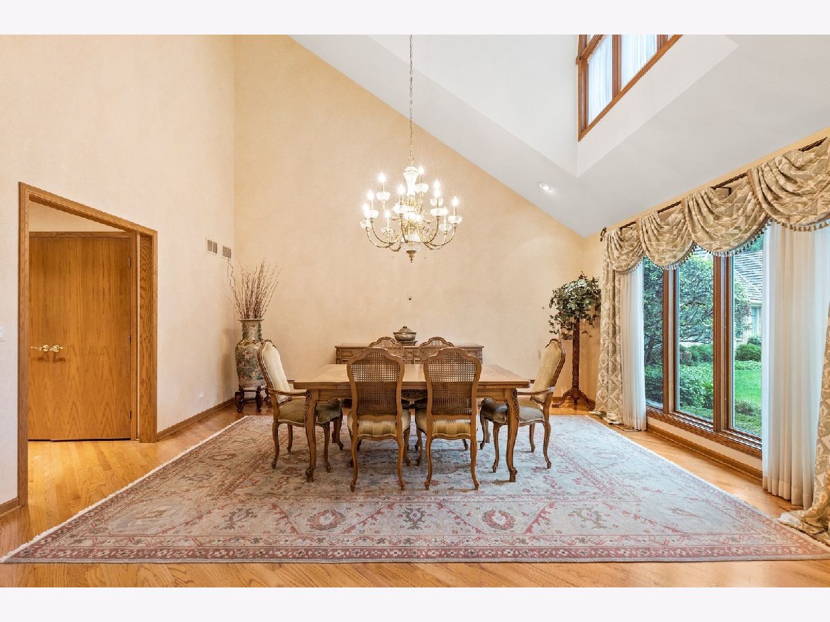 So much house for the money! The property is located at the back of a quiet cul-de-sac in a private, yet extremely convenient location. Built in 1992, the home has so many features that today's buyer will love. Enter into a dramatic two-story foyer with views of the living and dining rooms, the second floor landing and the family room. Every room is of a massive scale and full of endless possibilities. The dining room can seat 12 easily and is already wired for lighting your beautiful artwork. The handy butler's pantry connects the kitchen and dining room. The open-concept kitchen has all-wood custom cabinets and island seating for several people. It flows into a roomy eating/breakfast area where you can seat 8 or use the space for another family area. The kitchen and eating area open onto an enormous deck complete with gas grill hook-up for easy outdoor entertaining. Adjoining the kitchen is the family room with a raised hearth wood-burning brick fireplace. The main floor living areas have a wonderful circular flow with either hardwood flooring or ceramic tile flooring. Adjacent to the family room is a two-room first-floor master suite complete with its own full bath and walk-in closet. Because there is also a second master upstairs, this home offers so many possibilities including multi-generational living, au-pair quarters, or office at home. You name it! The doorways of the first floor are handicap accessible as is the attached 3-car garage with a built-in ramp to the first-floor laundry room. The second floor has 3 bedrooms and two bathrooms. The giant second-floor master has his-and-hers sink areas and closets, and a large whirlpool tub and shower. The other two bedrooms share a jack-and-jill bath. One of the two bedrooms has an office area which adds even more flexibility for a study area or work-at-home. The dry basement is unfinished and shares the same footprint as the upstairs. The possibilities here are endless once again. The home is 5 minutes from Wood Oaks Green Park with baseball diamonds, fishing, pickleball, tennis courts, trails, pathways and a pond. It's also very near the schools (1.7 mi to Hickory Point, 1.3 miles to Wood Oaks Junior High and 4.1 miles to Glenbrook North). The location is very convenient to O'Hare airport as well as excellent shopping and restaurant options. You really will love living here!