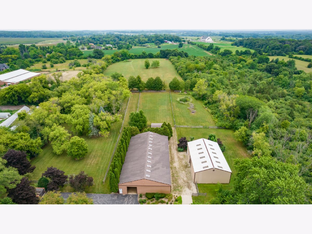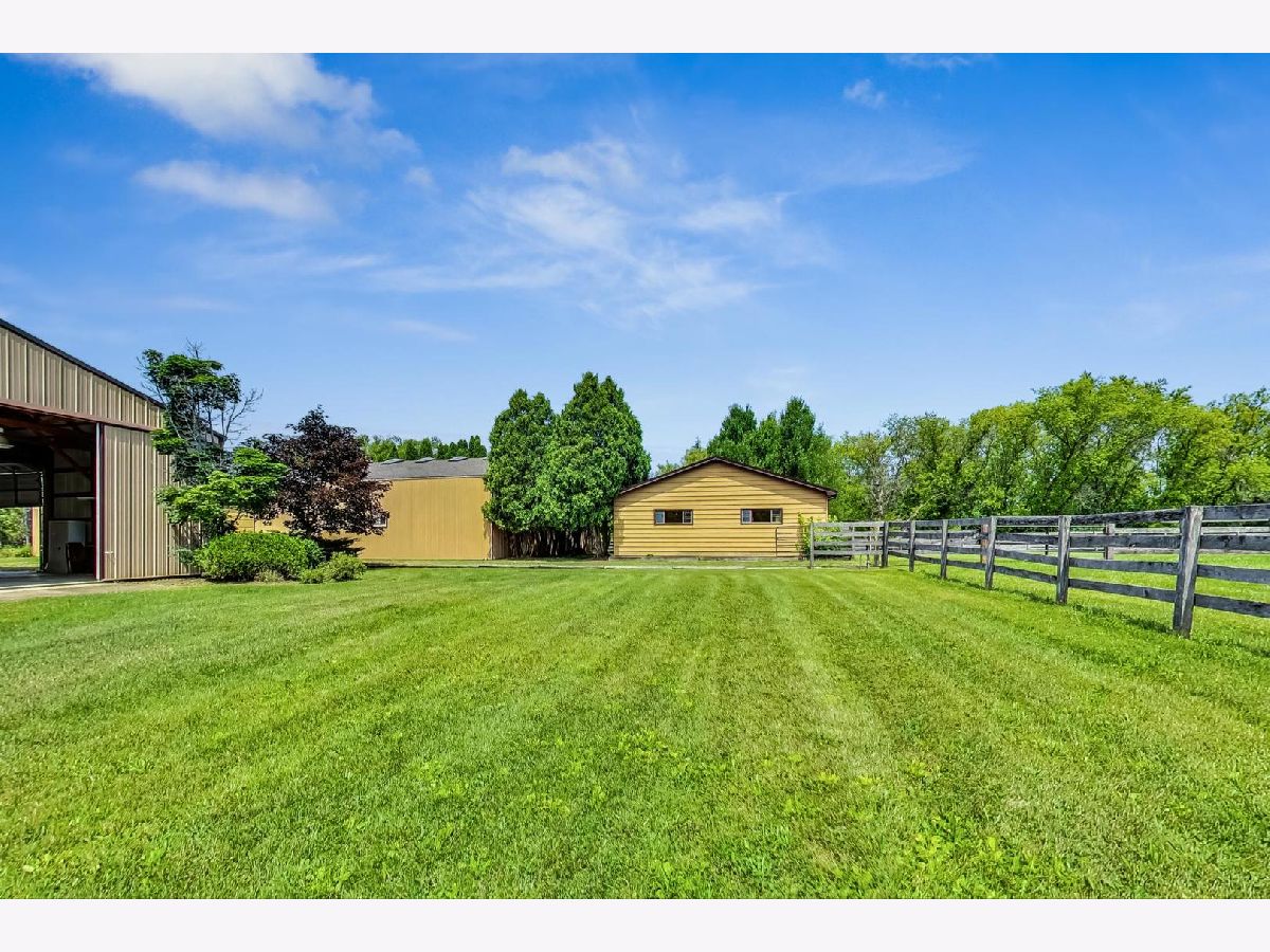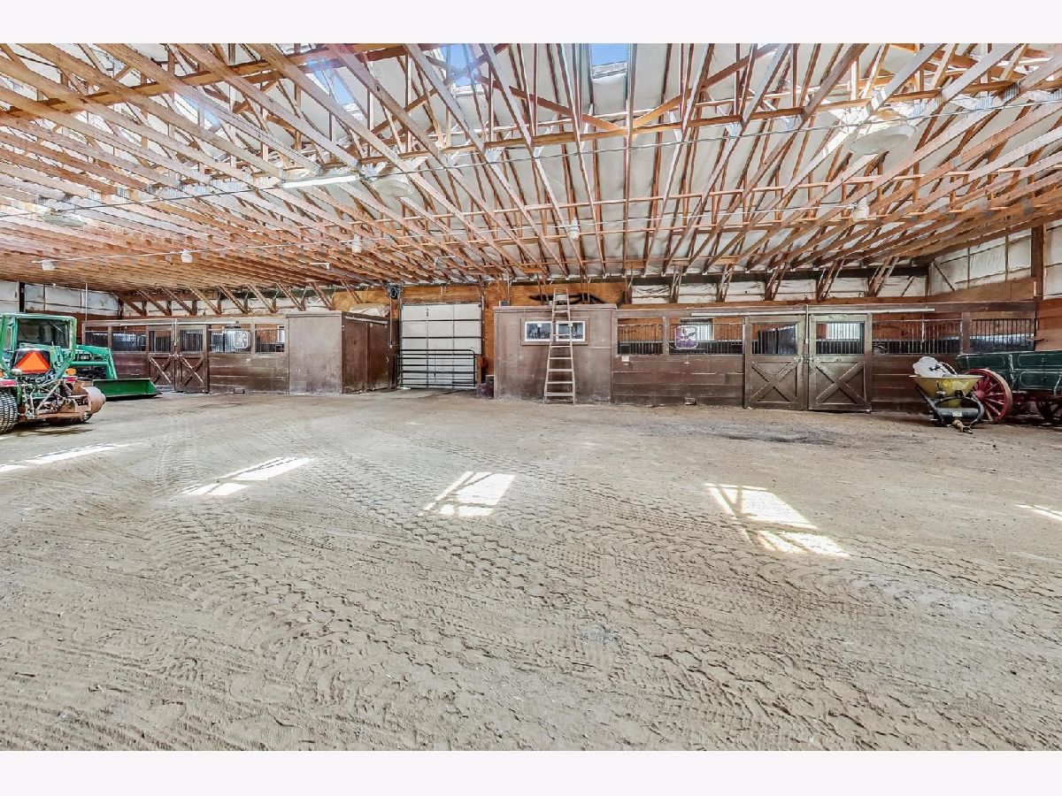 As soon as you step onto this breathtaking property, you will feel how special this estate is. This very unique 12 acre horse property has so much to offer! There are 5 different buildings on the property. As you head up the driveway, you will find mature trees and beautiful landscaping throughout. On the right, is a charming home offering 4 bedrooms (main level primary suite) and two full bathrooms. There is a large porch to enjoy your morning cup of coffee while taking in the scenic views. The kitchen features newer hardwood flooring and custom made kitchen cabinets from the previous owner. There is a large family room with a vaulted wood ceiling and stone wood burning fireplace. The concrete patio off the family room offers quiet scenic views of the backyard. If you head up the driveway further, there is a 1,200 square foot recreational garage that has a full kitchen, bar, half bath, brick flooring, indoor/outdoor dog kennels, built-in shelving and two garage doors. This is a great space to entertain family and friends! At the top of the driveway is the main pole barn. This large horse barn is 53X101 and has 4 horse stalls, an indoor arena, 3 oversized garage doors, skylights, tack room, and supply room with water hook up. Next to the horse barn, is the second pole barn which is 63X40 with concrete flooring, propane hook up, Two 20 foot garage doors (manual) and a 2nd level loft for hay. This pole barn could also be used to add more horse stalls or storage. Beyond the pole barns is a 2.5 car garage that is currently used as a workshop. The first 5 acres of the parcel are fully fenced in and have multiple grazing pastures for horses. You can also ride your horse just down the street to Raven Glen Forest Preserve trail. The back 5 acres of the parcel is beautiful wide open land with trees surrounding the property line and is also fully fenced in. The second two acre parcel located at the back northeast corner of the property provides access to Miller Road. You could build onto the property with multiple homes and invest, build more horse stables or create a family compound to build lasting memories. There are so many possibilities for the land! Property being sold AS-IS. No trespassing. Listing agent must accompany all showings.