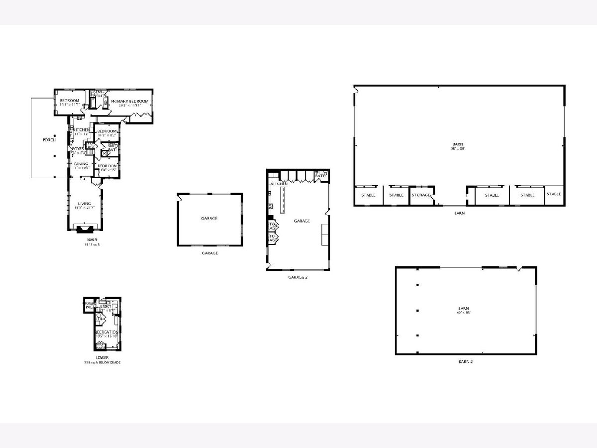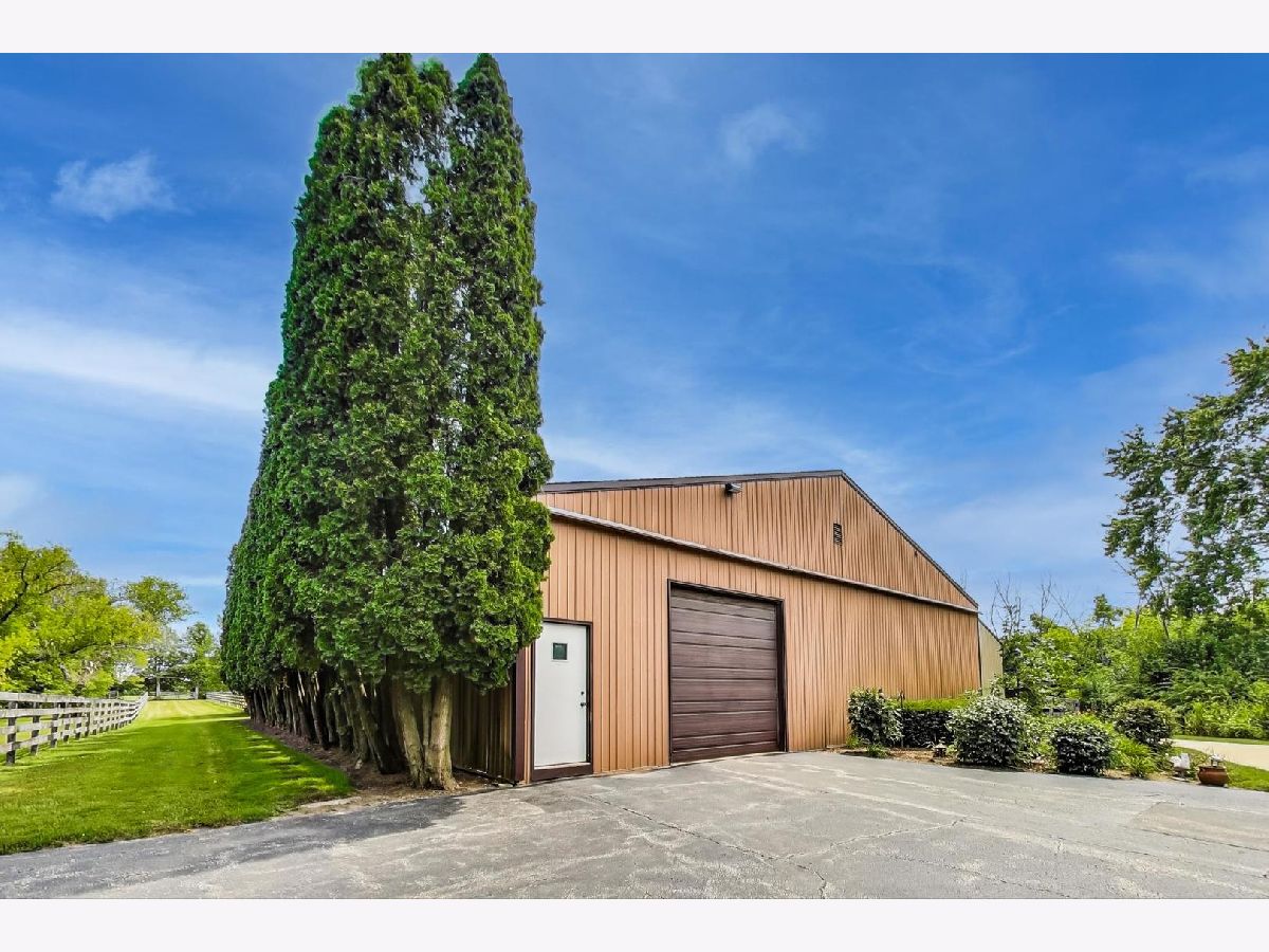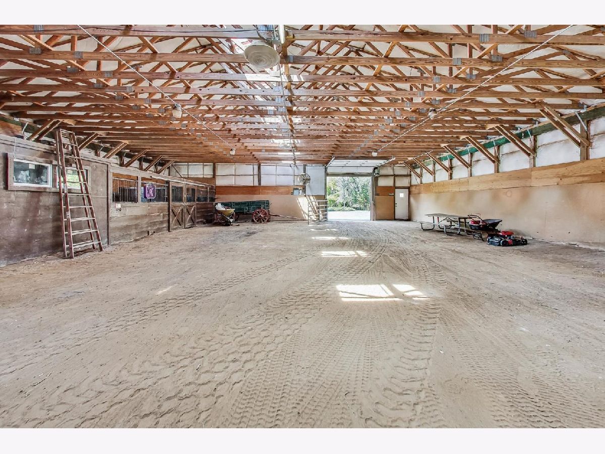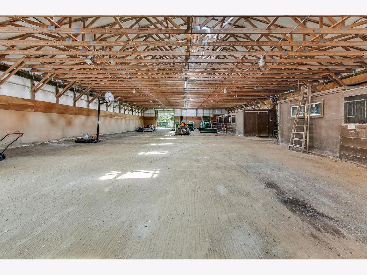 As soon as you step onto this breathtaking property, you will feel how special this estate is. This very unique 12 acre horse property has so much to offer! There are 5 different buildings on the property. As you head up the driveway, you will find mature trees and beautiful landscaping throughout. On the right, is a charming home offering 4 bedrooms (main level primary suite) and two full bathrooms. There is a large porch to enjoy your morning cup of coffee while taking in the scenic views. The kitchen features newer hardwood flooring and custom made kitchen cabinets from the previous owner. There is a large family room with a vaulted wood ceiling and stone wood burning fireplace. The concrete patio off the family room offers quiet scenic views of the backyard. If you head up the driveway further, there is a 1,200 square foot recreational garage that has a full kitchen, bar, half bath, brick flooring, indoor/outdoor dog kennels, built-in shelving and two garage doors. This is a great space to entertain family and friends! At the top of the driveway is the main pole barn. This large horse barn is 53X101 and has 4 horse stalls, an indoor arena, 3 oversized garage doors, skylights, tack room, and supply room with water hook up. Next to the horse barn, is the second pole barn which is 63X40 with concrete flooring, propane hook up, Two 20 foot garage doors (manual) and a 2nd level loft for hay. This pole barn could also be used to add more horse stalls or storage. Beyond the pole barns is a 2.5 car garage that is currently used as a workshop. The first 5 acres of the parcel are fully fenced in and have multiple grazing pastures for horses. You can also ride your horse just down the street to Raven Glen Forest Preserve trail. The back 5 acres of the parcel is beautiful wide open land with trees surrounding the property line and is also fully fenced in. The second two acre parcel located at the back northeast corner of the property provides access to Miller Road. You could build onto the property with multiple homes and invest, build more horse stables or create a family compound to build lasting memories. There are so many possibilities for the land! Property being sold AS-IS. No trespassing. Listing agent must accompany all showings.