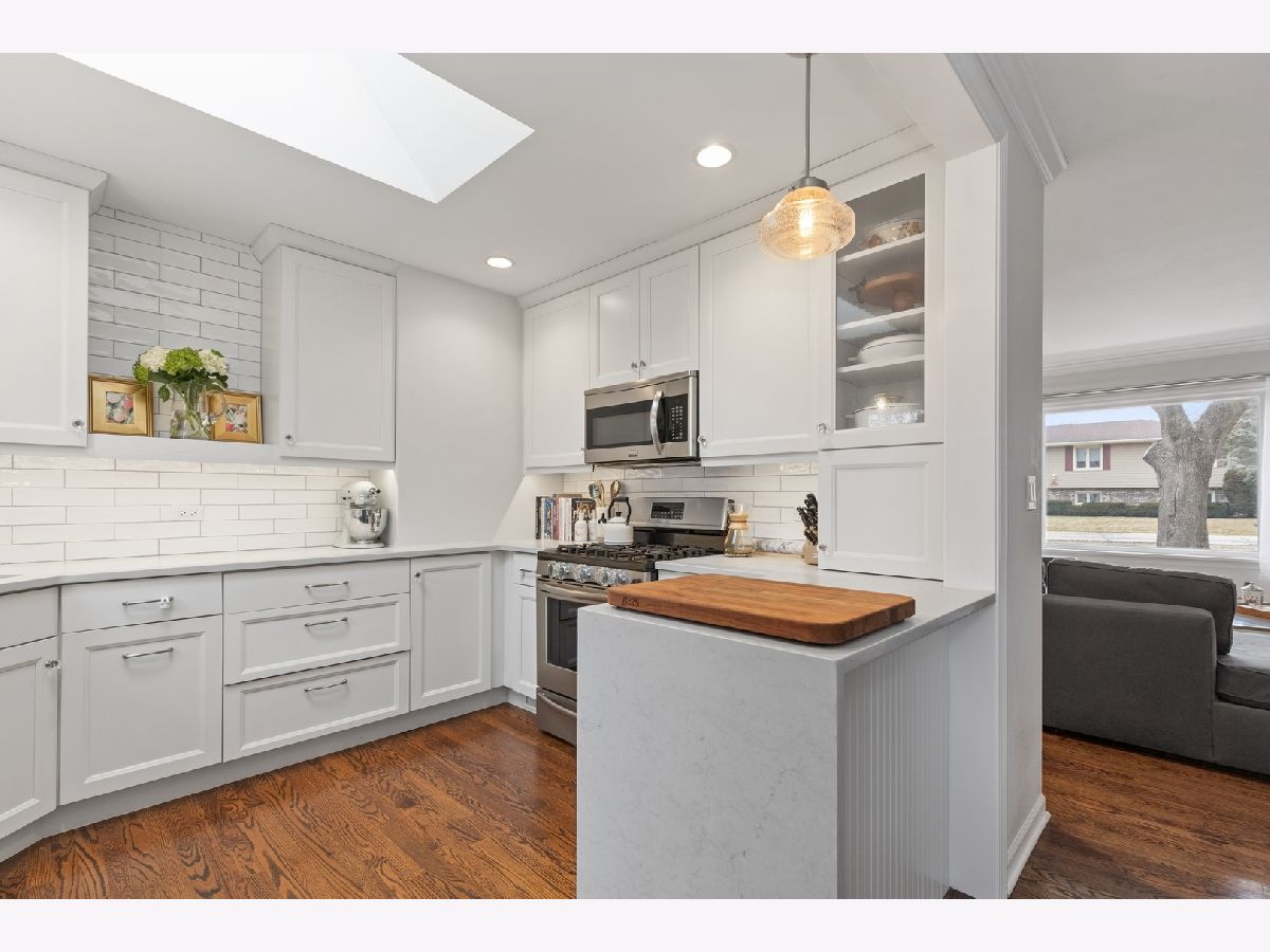 Super cute and beautifully renovated ranch! This move-in ready home greets you with a lovely entry leading to an open floor plan with hardwood floors. The newer kitchen has stainless steel appliances, plenty of white cabinets, and quartz countertops, as well as, a breakfast bar great for extra seating or entertaining. There is plenty of natural light coming through the large windows and skylight. The dining room is open to the spacious living room with a stone fireplace. No details were left out of the new Carrera Marble bath with a large marble walk-in shower. Both bedrooms are generous in size with double closets for plenty of storage. The mudroom/utility room connects directly to the attached garage. The back patio overlooks the large fenced in yard with vegetable/flower boxes. There is an outdoor shed for all your yard toys. Full renovation in 2016. Close to shopping, train, and interstate access. School Districts - Lake Bluff Elementary School and Lake Forest High School! Don't miss this one!