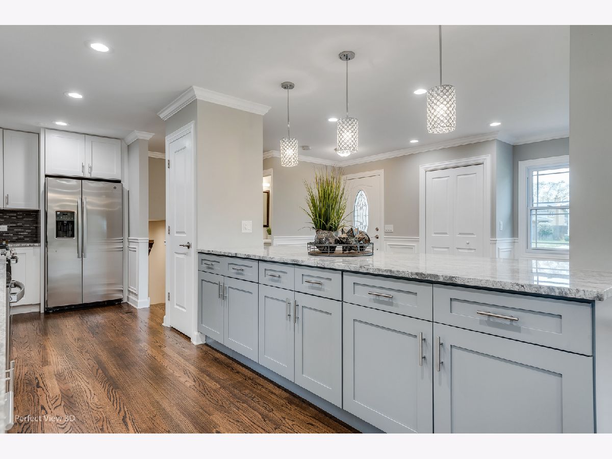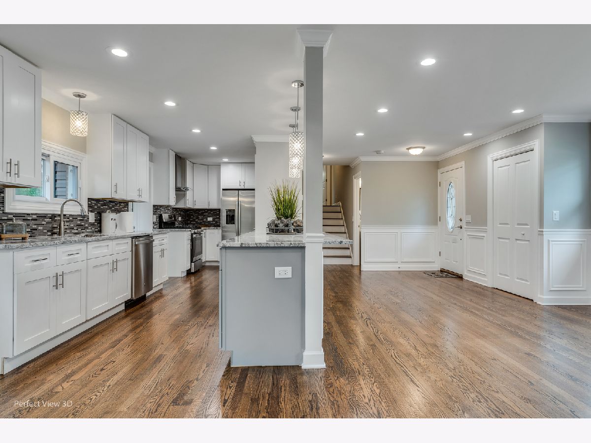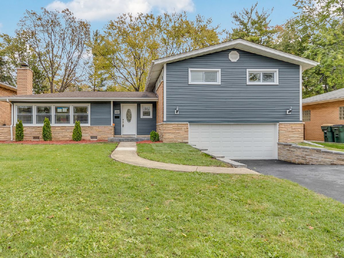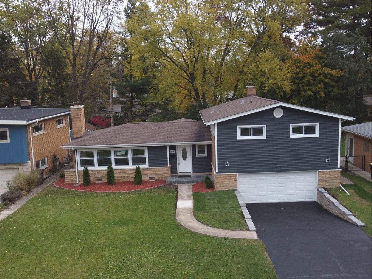Location! Location! Location! Prepare to be wowed by this completely remodeled 4 bedrooms, 1,1 bath split-level in the highly sought-after school district of Windsor, South, & Prospect High school! Brand new epoxy painted floors in oversized 2.5 car garage! Hardwood floors throughout first & second floor with beautiful white/grey 42" cabinets kitchen that boasts center island, granite countertops, beautiful tile backsplash and stainless-steel appliances. Large dining room adjacent to kitchen has enough room to meet all your entertaining needs! Stunning, spacious family/morning room with vaulted ceilings, wood beams overlooking to the nice backyard. Huge living room welcoming custom trimmed fireplace. Main bathroom has jacuzzi, separate shower and double sinks. Basement holds finished living/office space as well as separate laundry room. New (2021): roof, windows, A/C and heating system. New plumbing and electric! Step out back to see professionally landscaped yard. The quality and craftsmanship are present in every room! Minutes to Recreation Park, Downton Arl. Hts, train, Hwys. Don't miss seeing this quiet location!